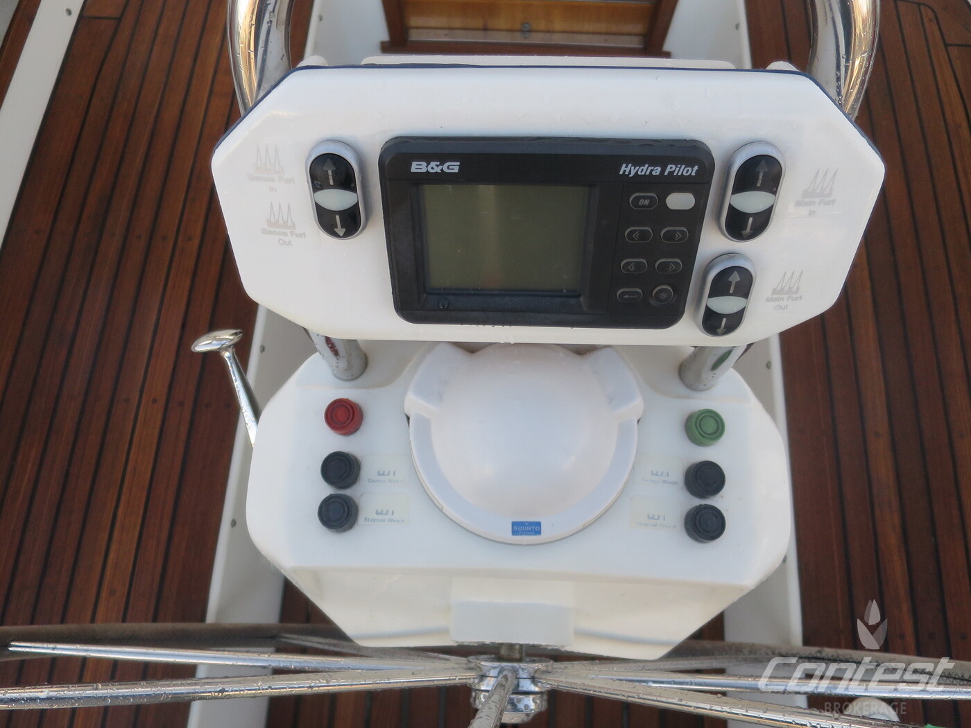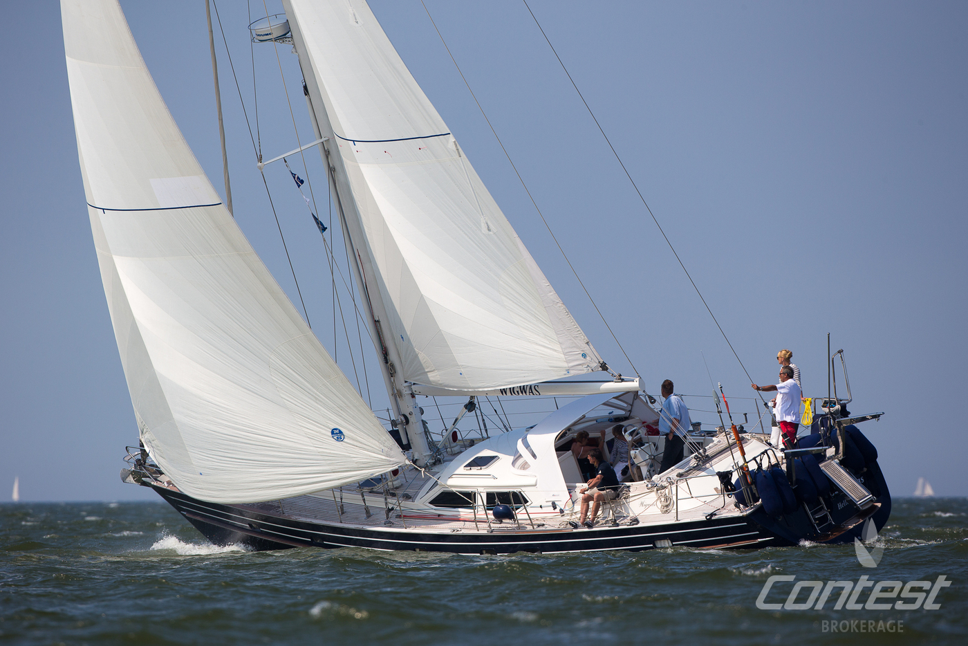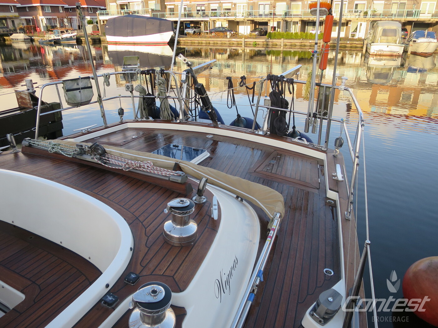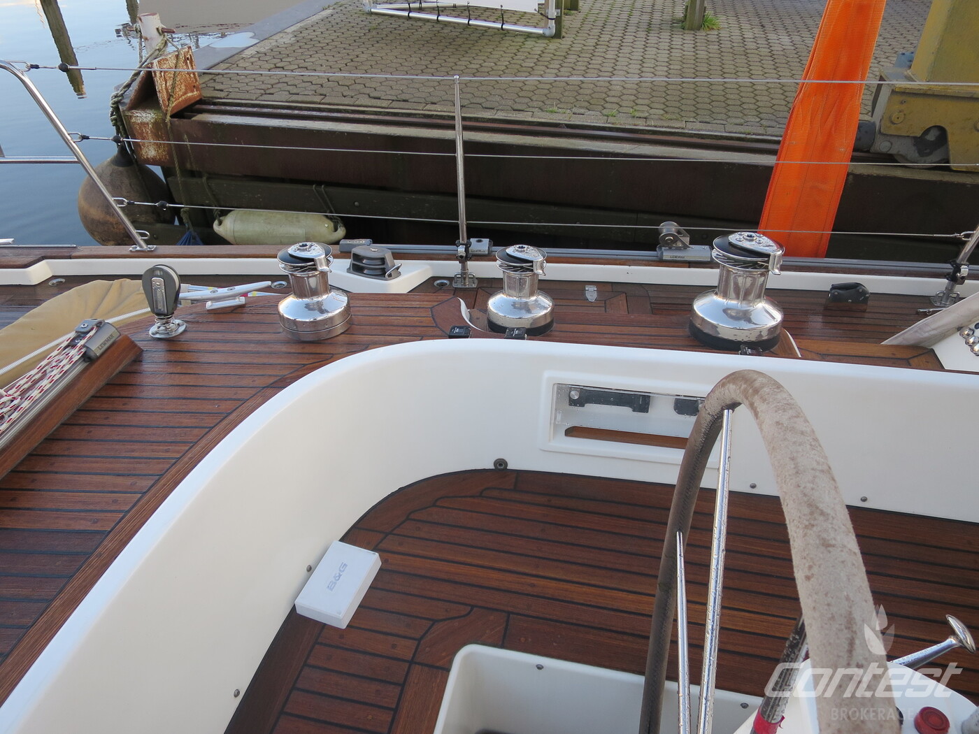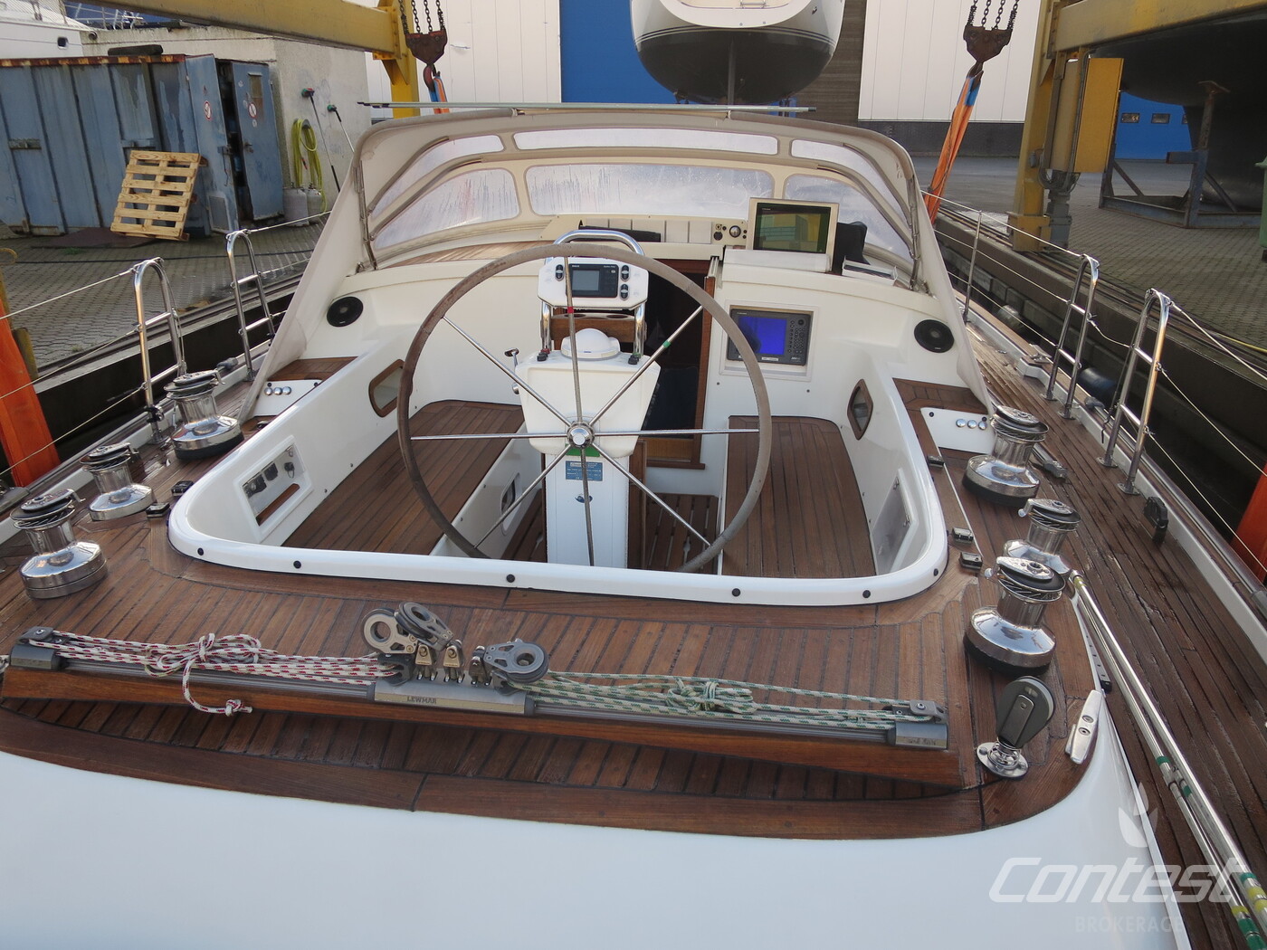 "Wig wax" is a good example of a well built, sturdy, blue water cruiser. She comes with a wing throat, bowthruster, classic teak interior, 3 cabins and saloon with 7 berths, 2 bathrooms, galley with 3 burner stove, oven, fridge, freezer, microwave, aircon, heating, hydraulic inmast mainsail system, hydraulic Genoa furling system, manual cutter system, electric winches, hull sprayed in '15, new North Sails in '11/'12 (only 5 years used), fixed hydraulic gangway, etc, etc, etc. In 2013/2014 she had a complete check/refit at the Contest yard (i.e. new sea cocks, deck refitted, interior partly varnsihed, etc) and after that she is maintained accordinghly. Fresh on the market and ready to impress you!