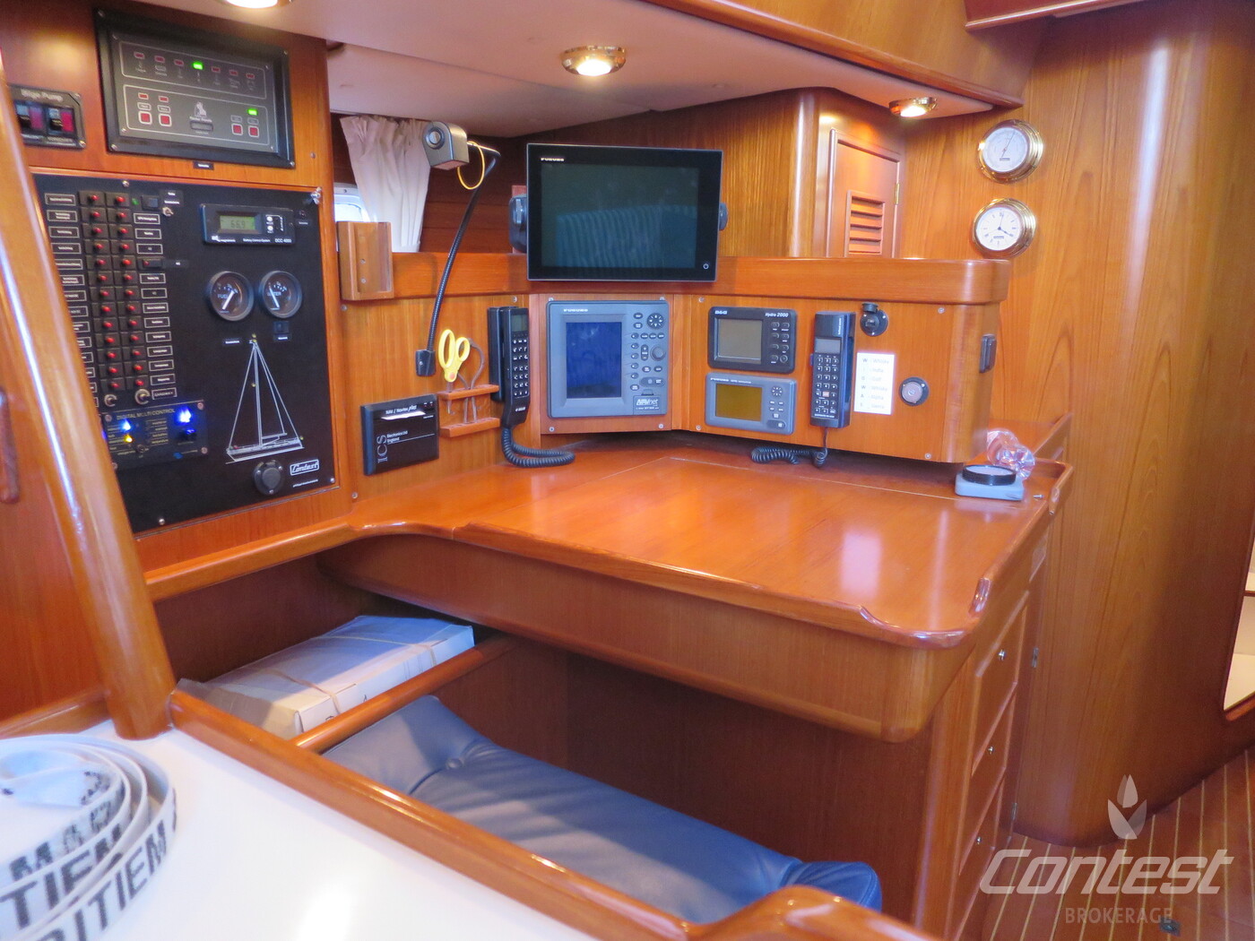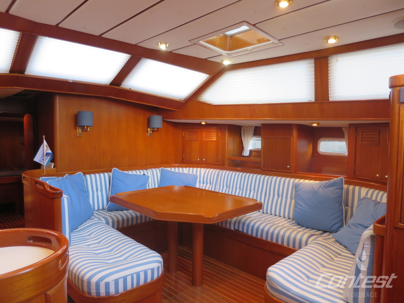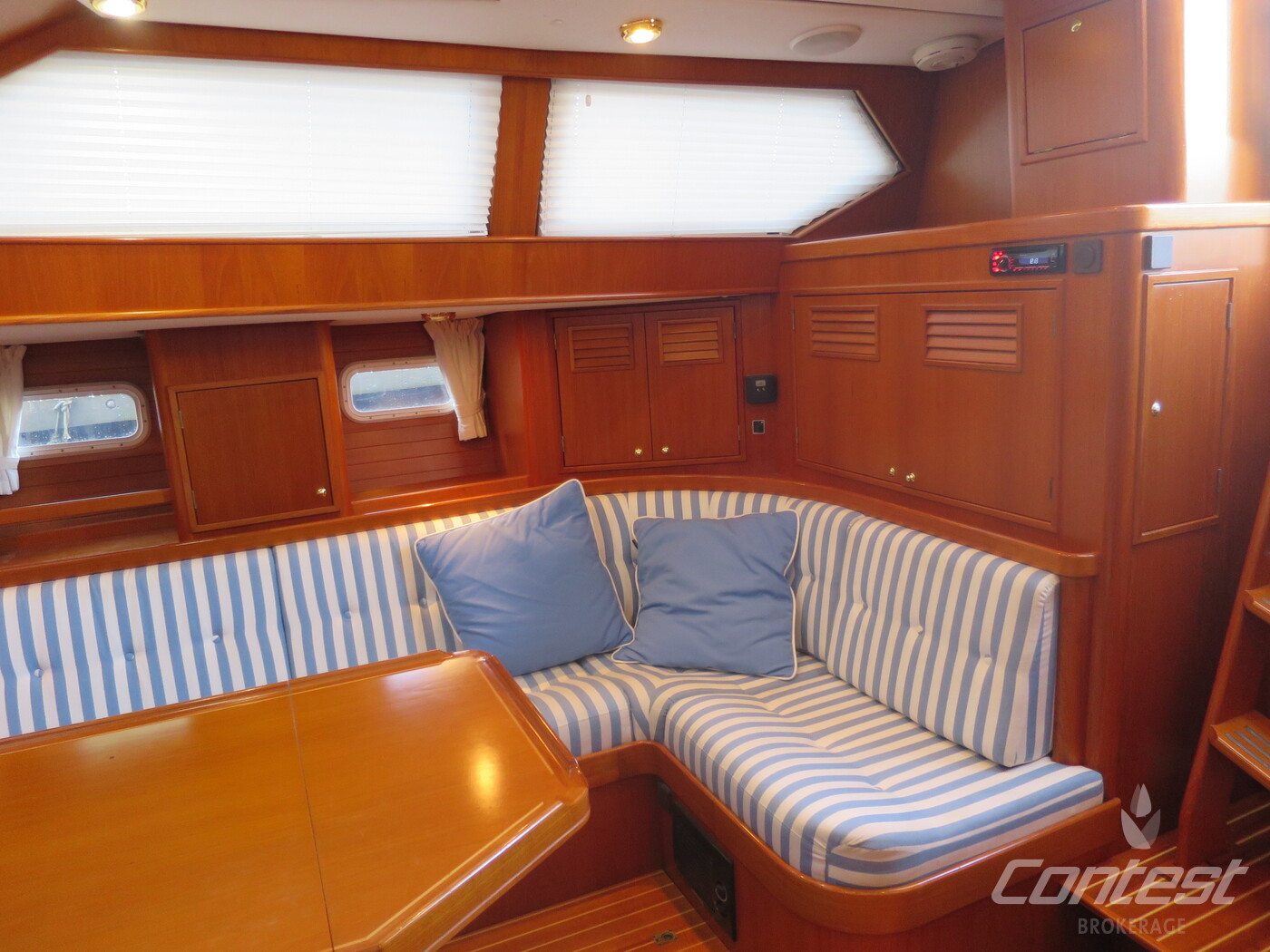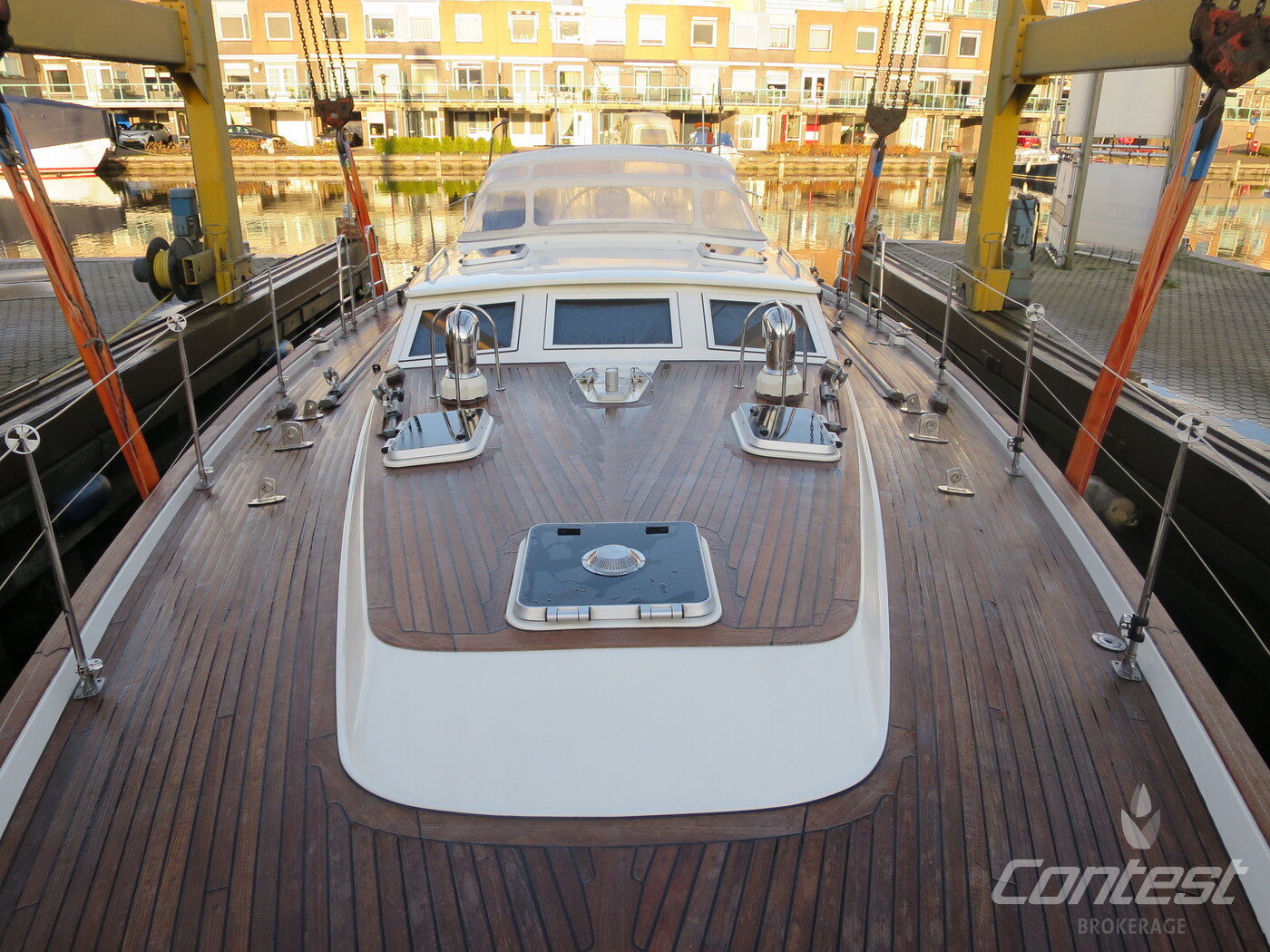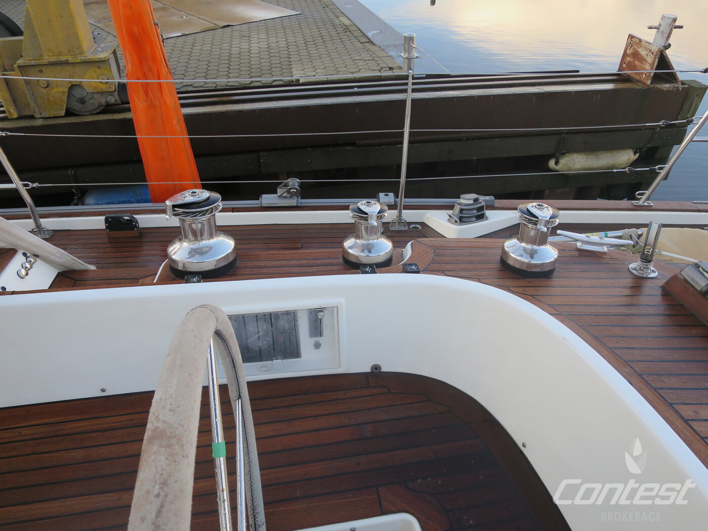 "Wig wax" is a good example of a well built, sturdy, blue water cruiser. She comes with a wing throat, bowthruster, classic teak interior, 3 cabins and saloon with 7 berths, 2 bathrooms, galley with 3 burner stove, oven, fridge, freezer, microwave, aircon, heating, hydraulic inmast mainsail system, hydraulic Genoa furling system, manual cutter system, electric winches, hull sprayed in '15, new North Sails in '11/'12 (only 5 years used), fixed hydraulic gangway, etc, etc, etc. In 2013/2014 she had a complete check/refit at the Contest yard (i.e. new sea cocks, deck refitted, interior partly varnsihed, etc) and after that she is maintained accordinghly. Fresh on the market and ready to impress you!
