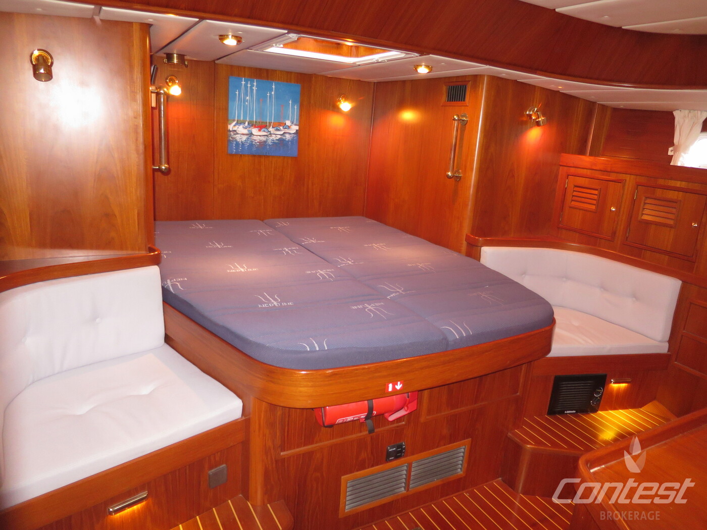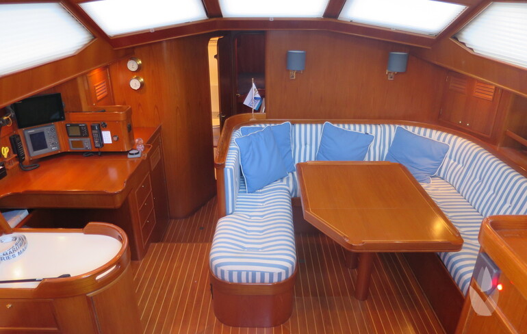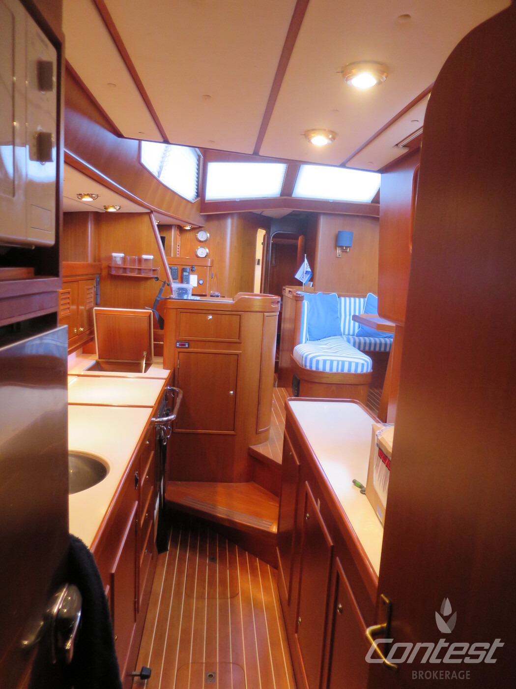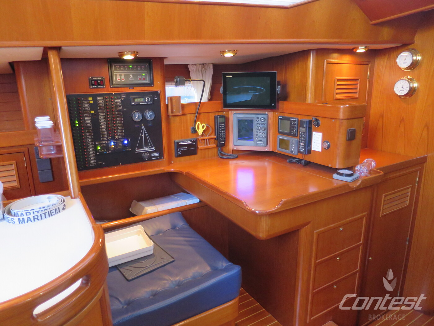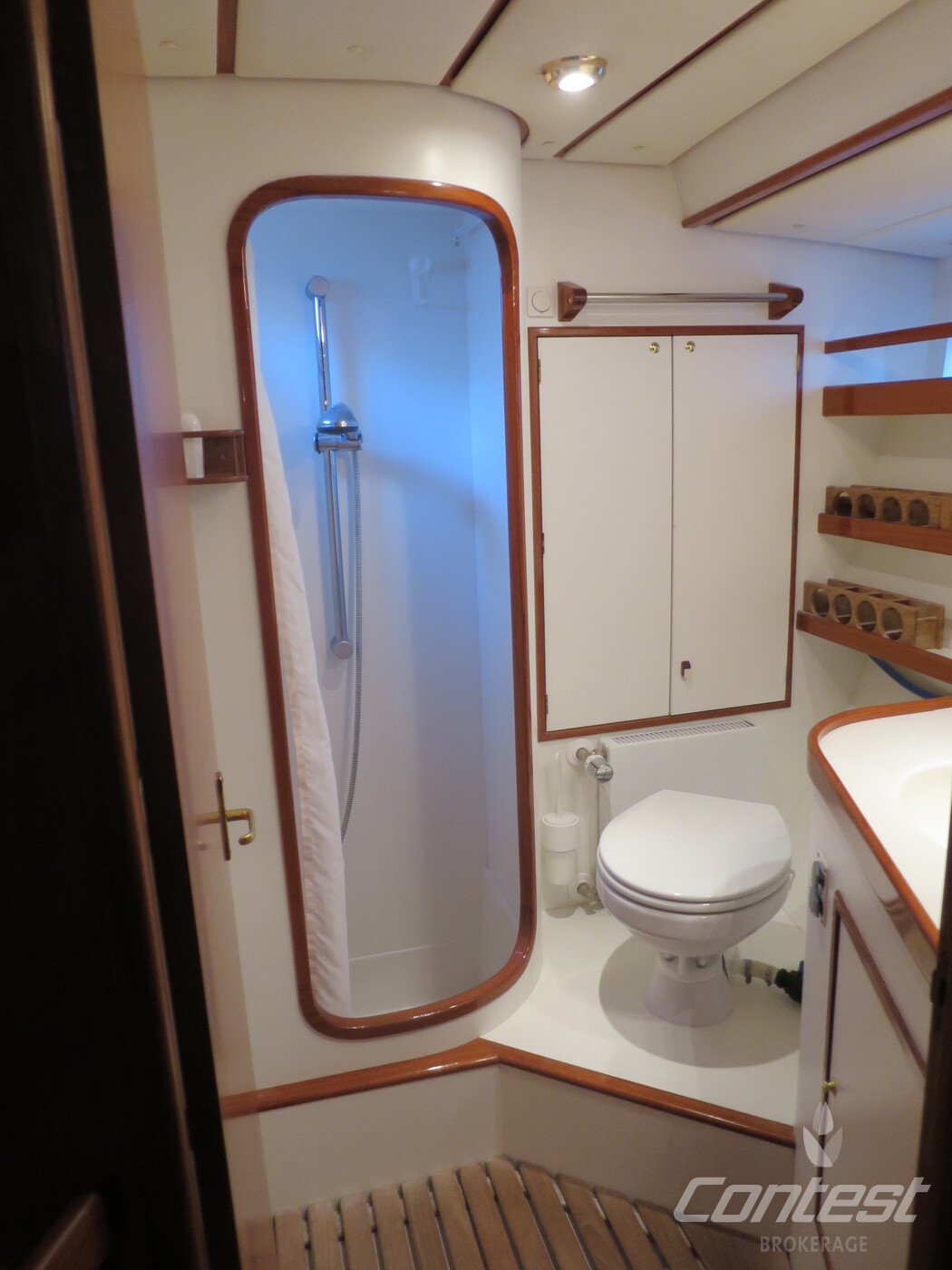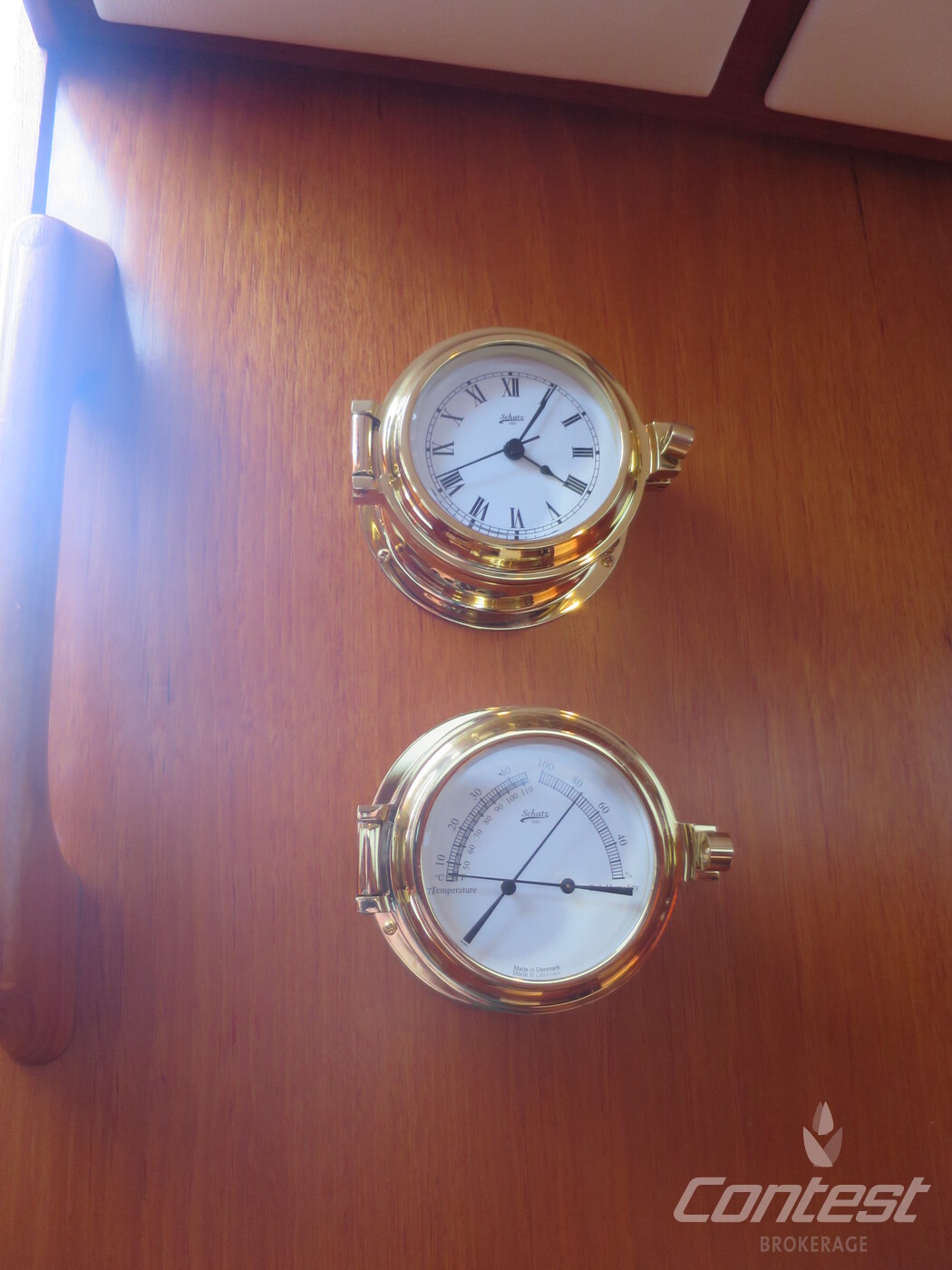 "Wig wax" is a good example of a well built, sturdy, blue water cruiser. She comes with a wing throat, bowthruster, classic teak interior, 3 cabins and saloon with 7 berths, 2 bathrooms, galley with 3 burner stove, oven, fridge, freezer, microwave, aircon, heating, hydraulic inmast mainsail system, hydraulic Genoa furling system, manual cutter system, electric winches, hull sprayed in '15, new North Sails in '11/'12 (only 5 years used), fixed hydraulic gangway, etc, etc, etc. In 2013/2014 she had a complete check/refit at the Contest yard (i.e. new sea cocks, deck refitted, interior partly varnsihed, etc) and after that she is maintained accordinghly. Fresh on the market and ready to impress you!