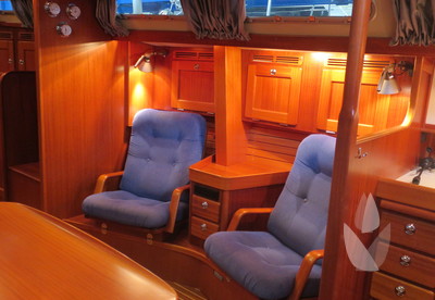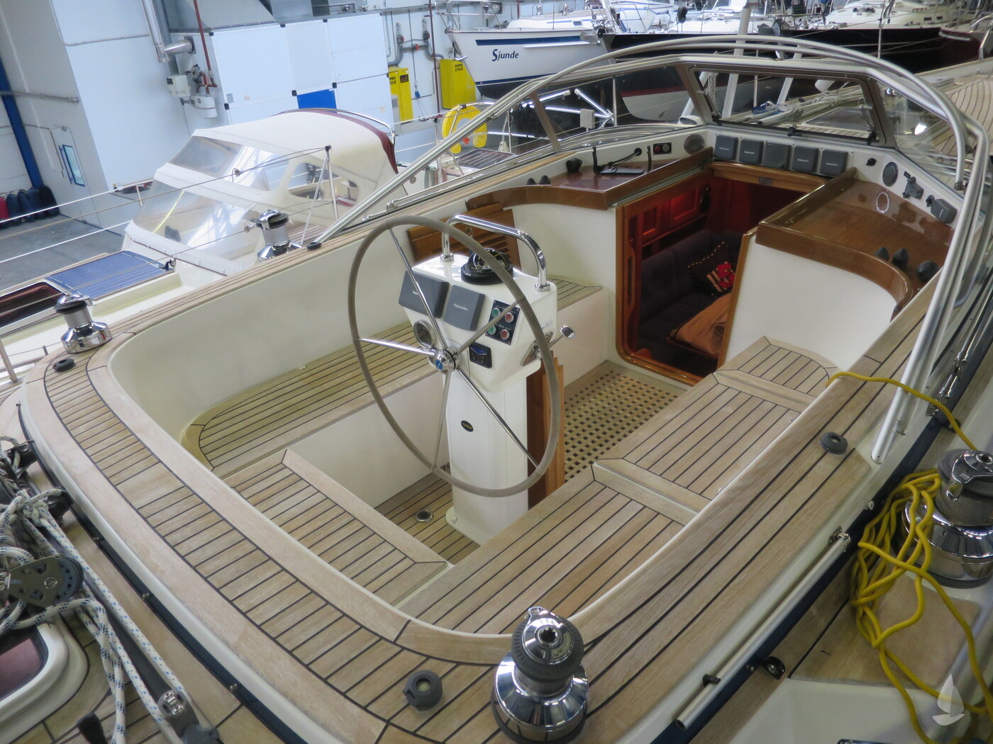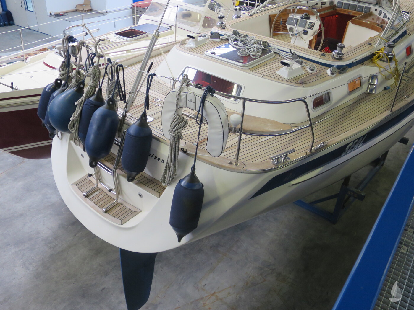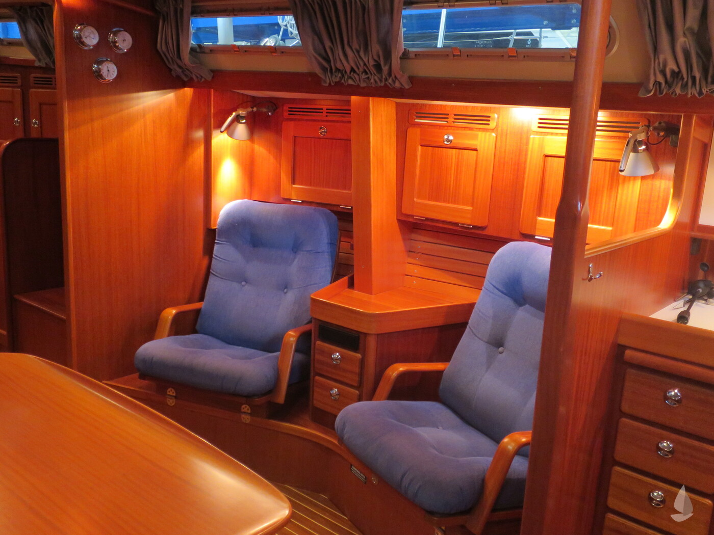 The Hallberg Rassy 43 is probably the perfect example of an easy sailed blue water cruiser. Which is confirmed by winning all sorts of prices like the Yacht of the Year award in Germany, Best Midsize Cruiser & best overall Cruising Boat in the USA as well as top 10 Import Boat of the Year in Australia 2006. She is equipped with all the comforts you need to make your stay on board a great experience. Her hydraulic furling sails and electric winches makes it easy to sail her with a short crew. She can be visited in our heated showroom and is ready to sail out again. A must see if you are browsing the market for well kept, mid range yacht!