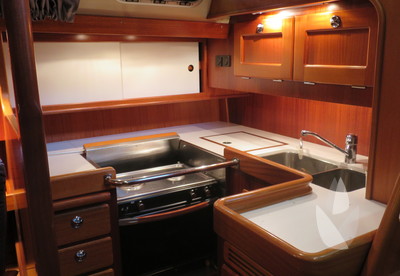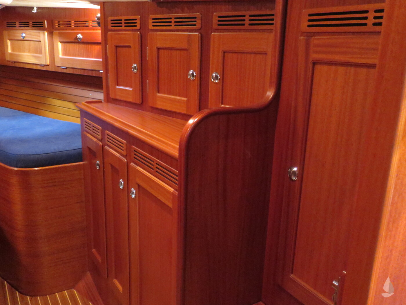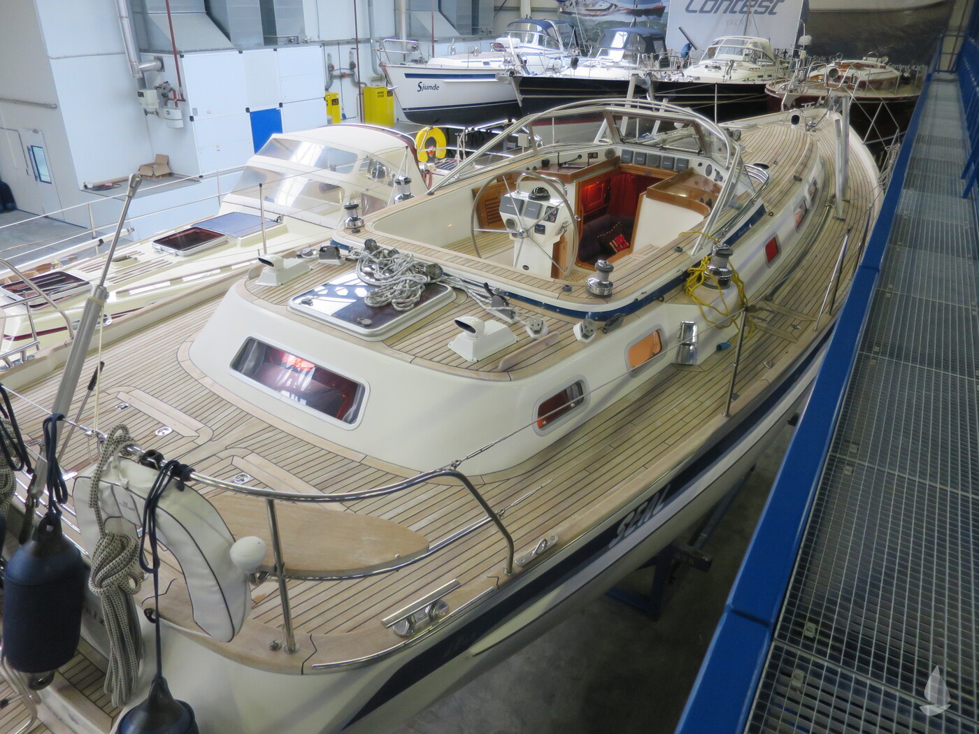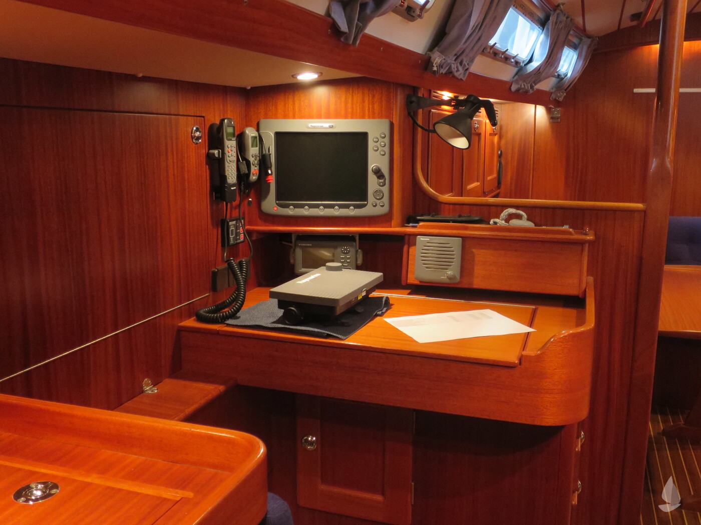 The Hallberg Rassy 43 is probably the perfect example of an easy sailed blue water cruiser. Which is confirmed by winning all sorts of prices like the Yacht of the Year award in Germany, Best Midsize Cruiser & best overall Cruising Boat in the USA as well as top 10 Import Boat of the Year in Australia 2006. She is equipped with all the comforts you need to make your stay on board a great experience. Her hydraulic furling sails and electric winches makes it easy to sail her with a short crew. She can be visited in our heated showroom and is ready to sail out again. A must see if you are browsing the market for well kept, mid range yacht!