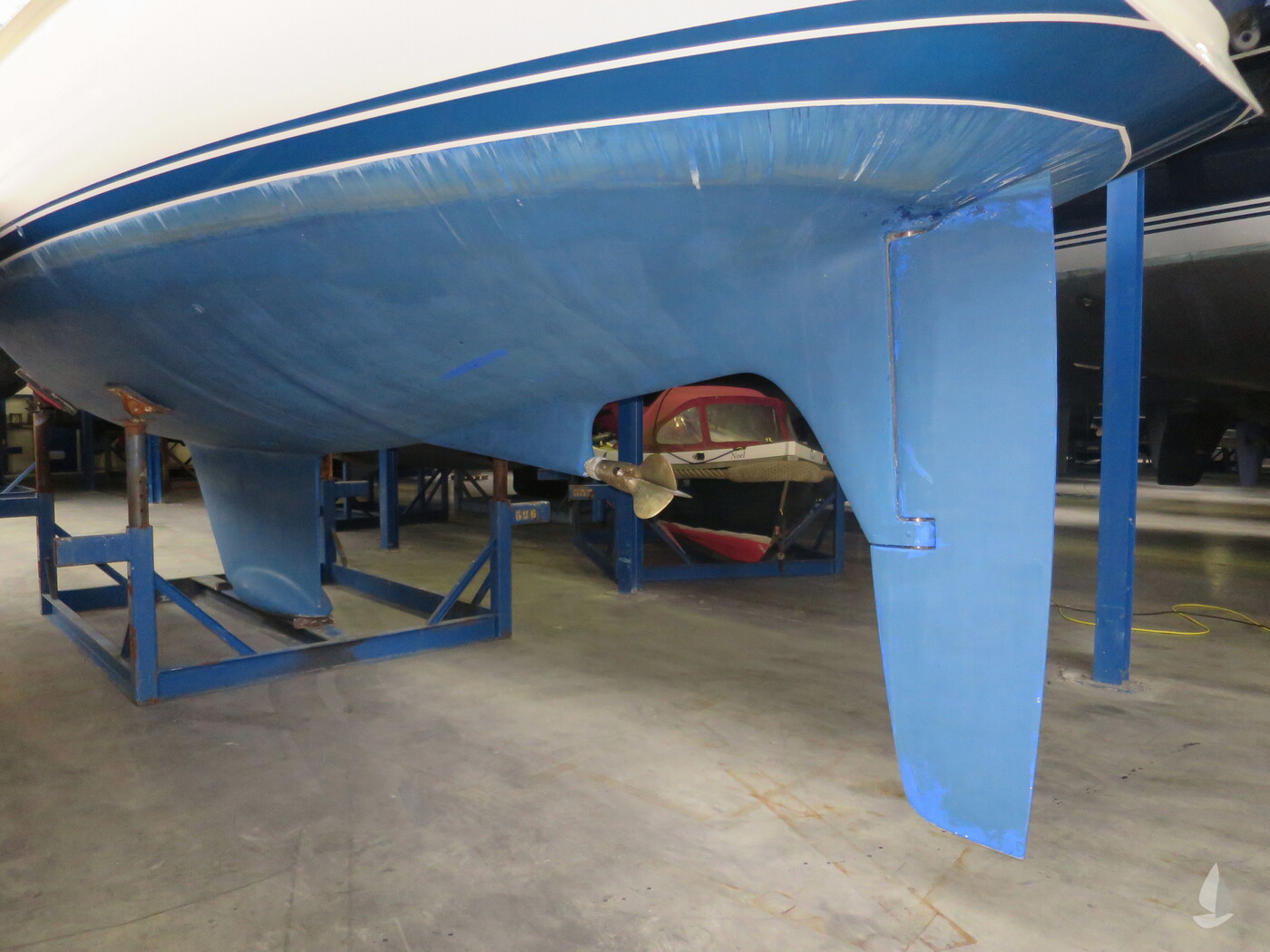 Hull typeRounbilged hull in gelcoat white with blue striping