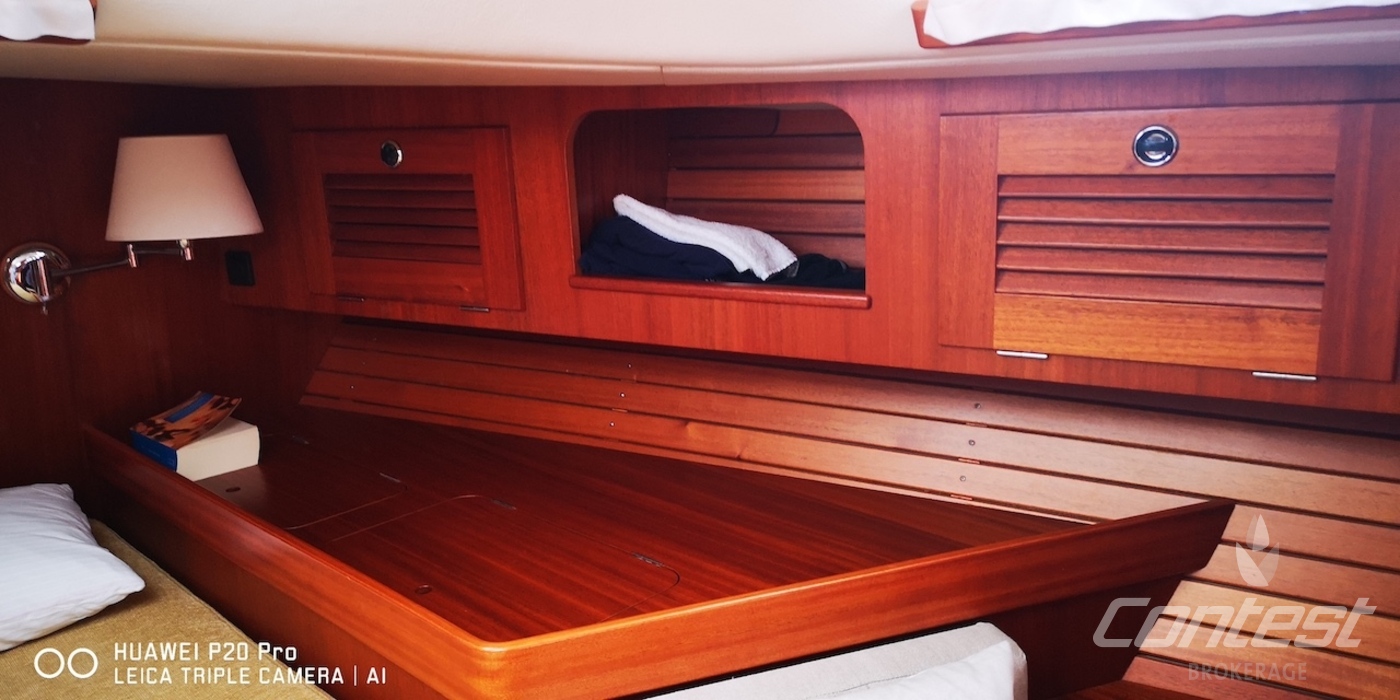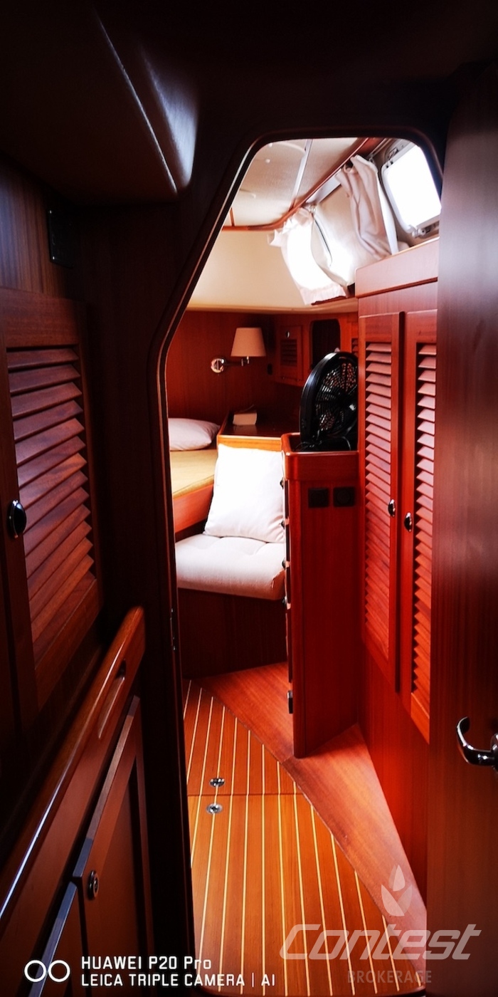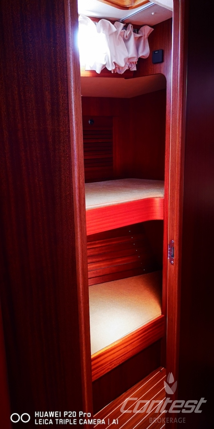 CabinsOwners cabin in aft with centreline double berth, V berth in front and guest cabin with buck beds in passage to front