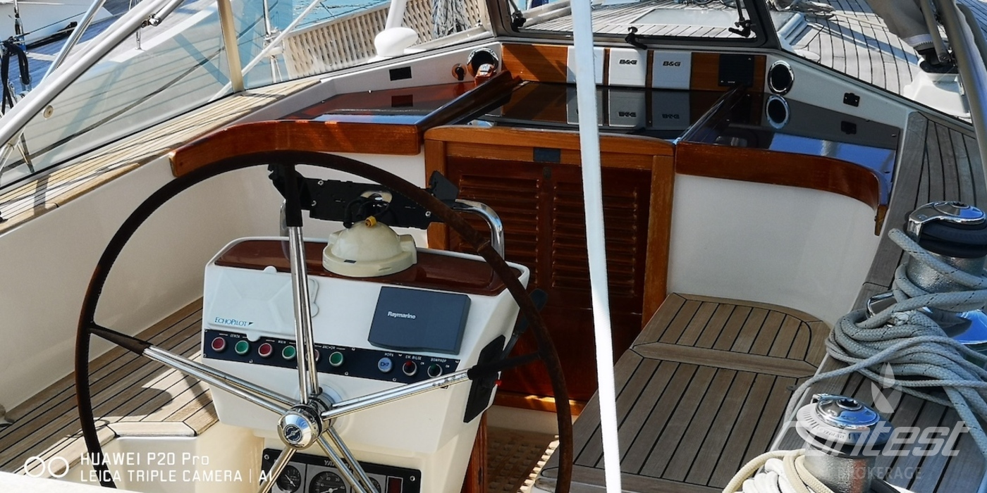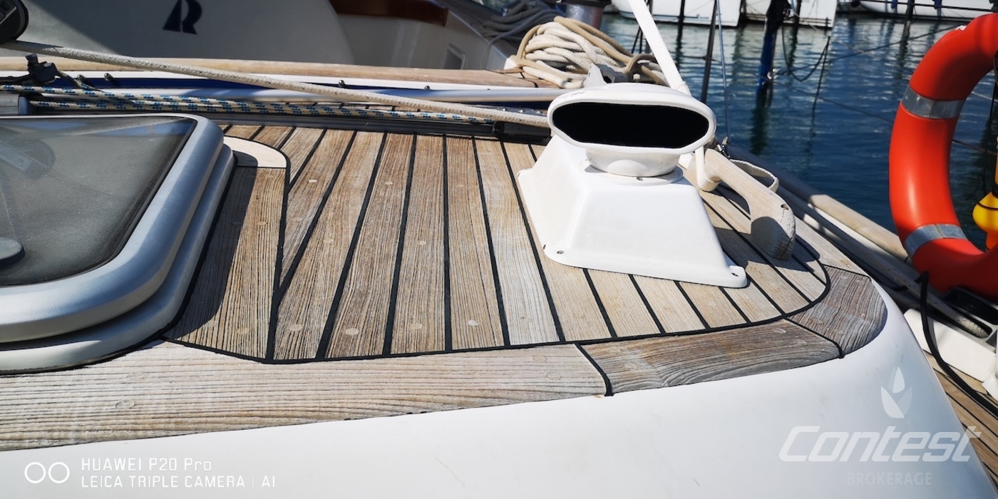 Hull typeRoundbilged GRP hull in gelcoat white with classic blue Hallberg Rassy striping