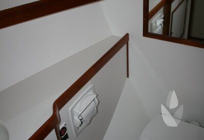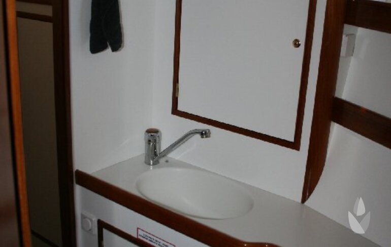 CabinsOwners cabin with french berth (sprung slats), V-berth in forward cabin and 2 bunk berths on sb side