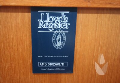 Hull typeRoundbilged hull in Flag Blue (Awl Grip) with gold / white striping