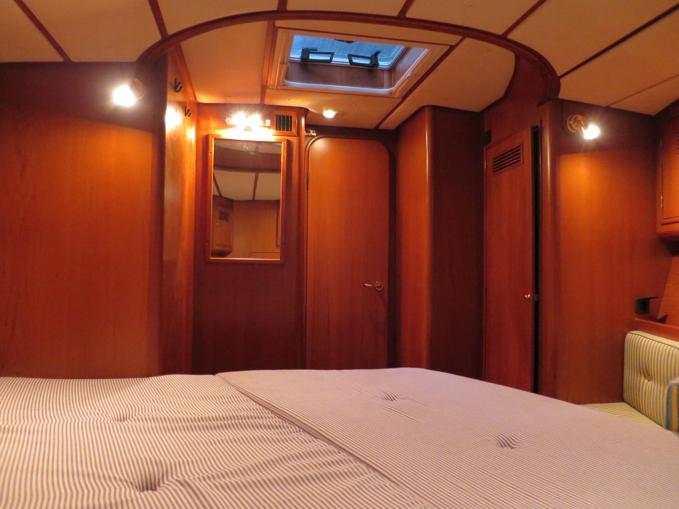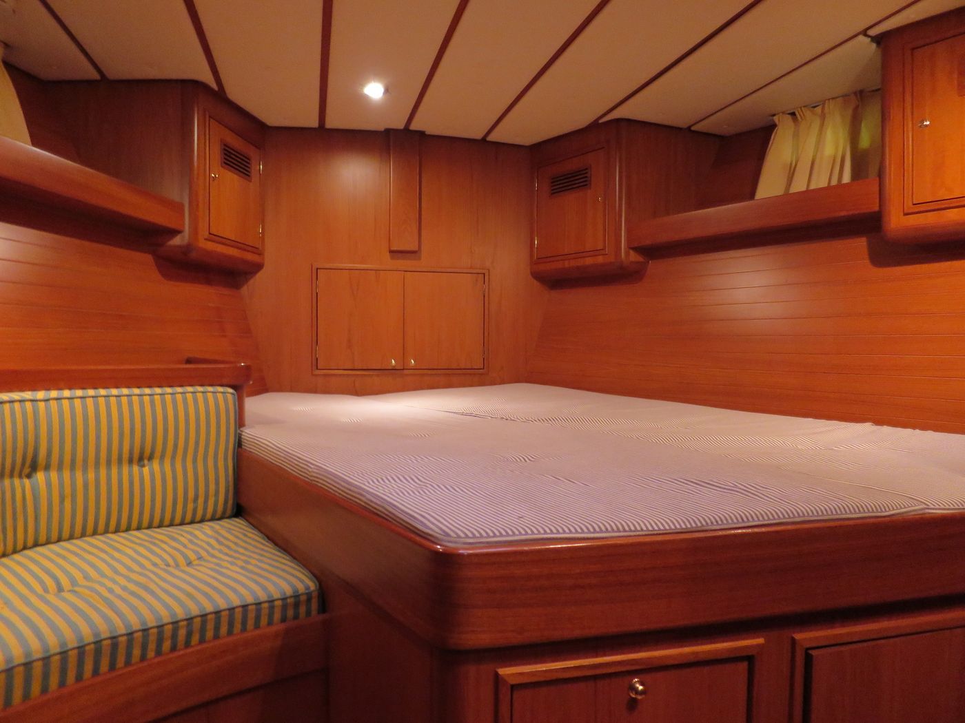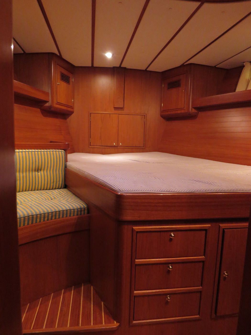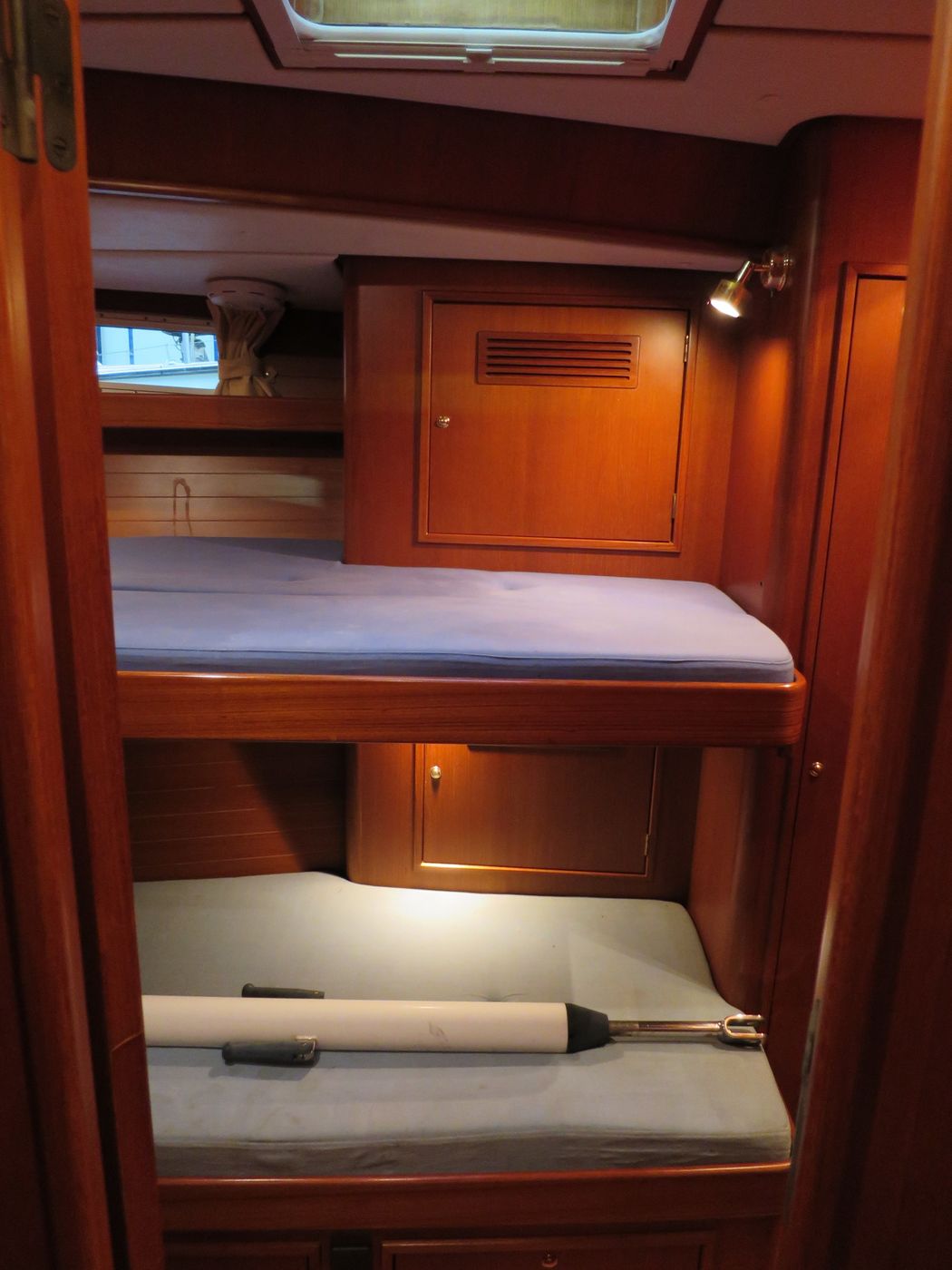 CabinsOwners cabin with double berth aft, double berth forward, side cabin with 2 bunk berths