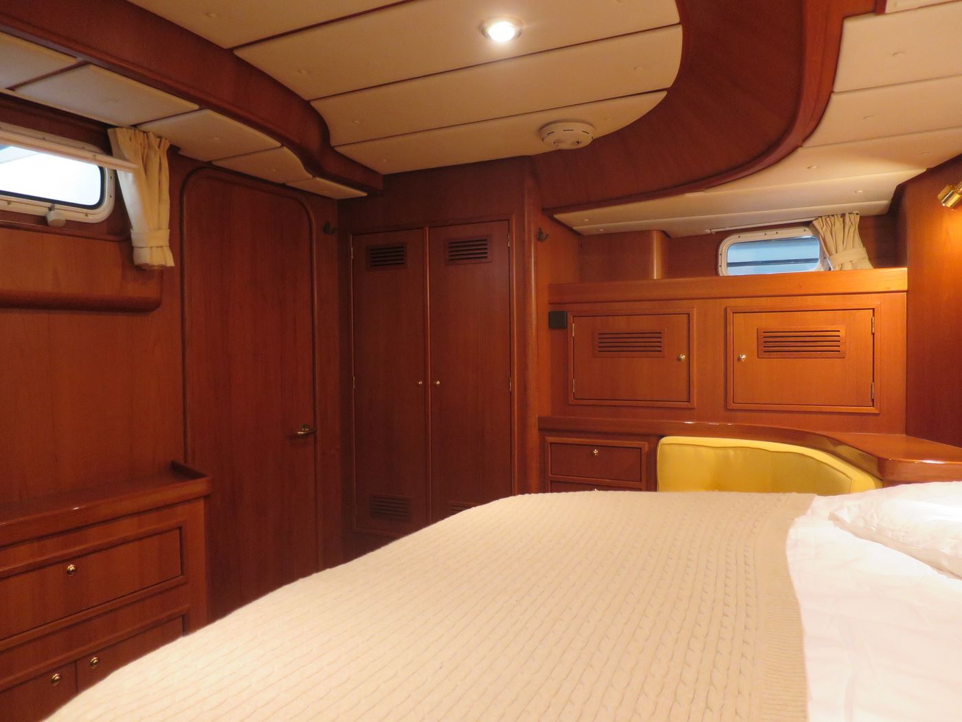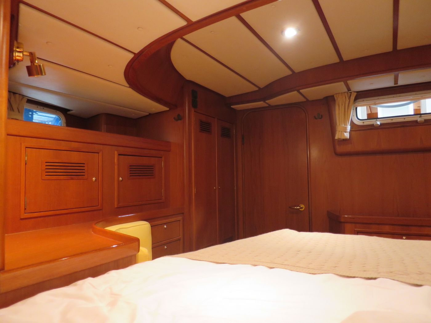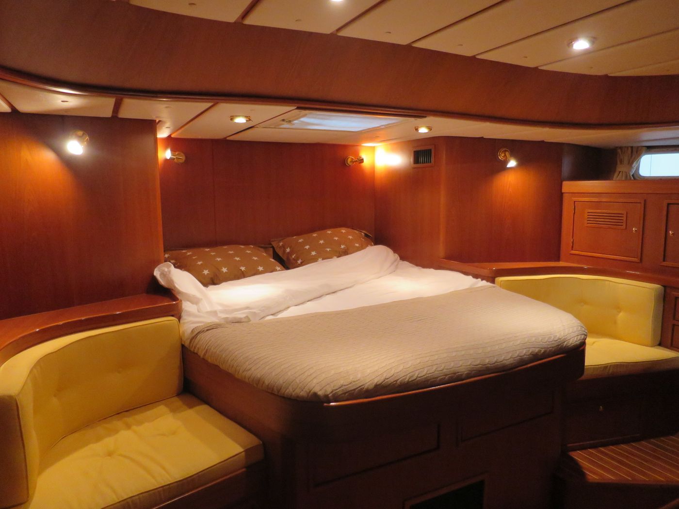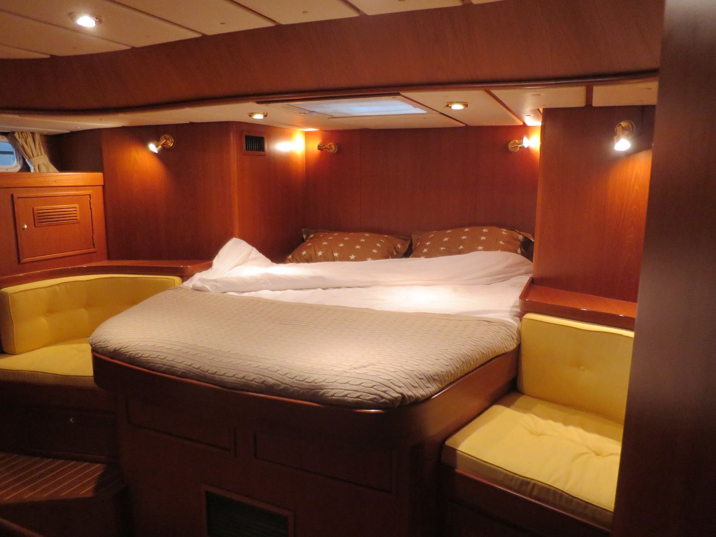 CabinsOwners cabin with double berth aft, double berth forward, side cabin with 2 bunk berths