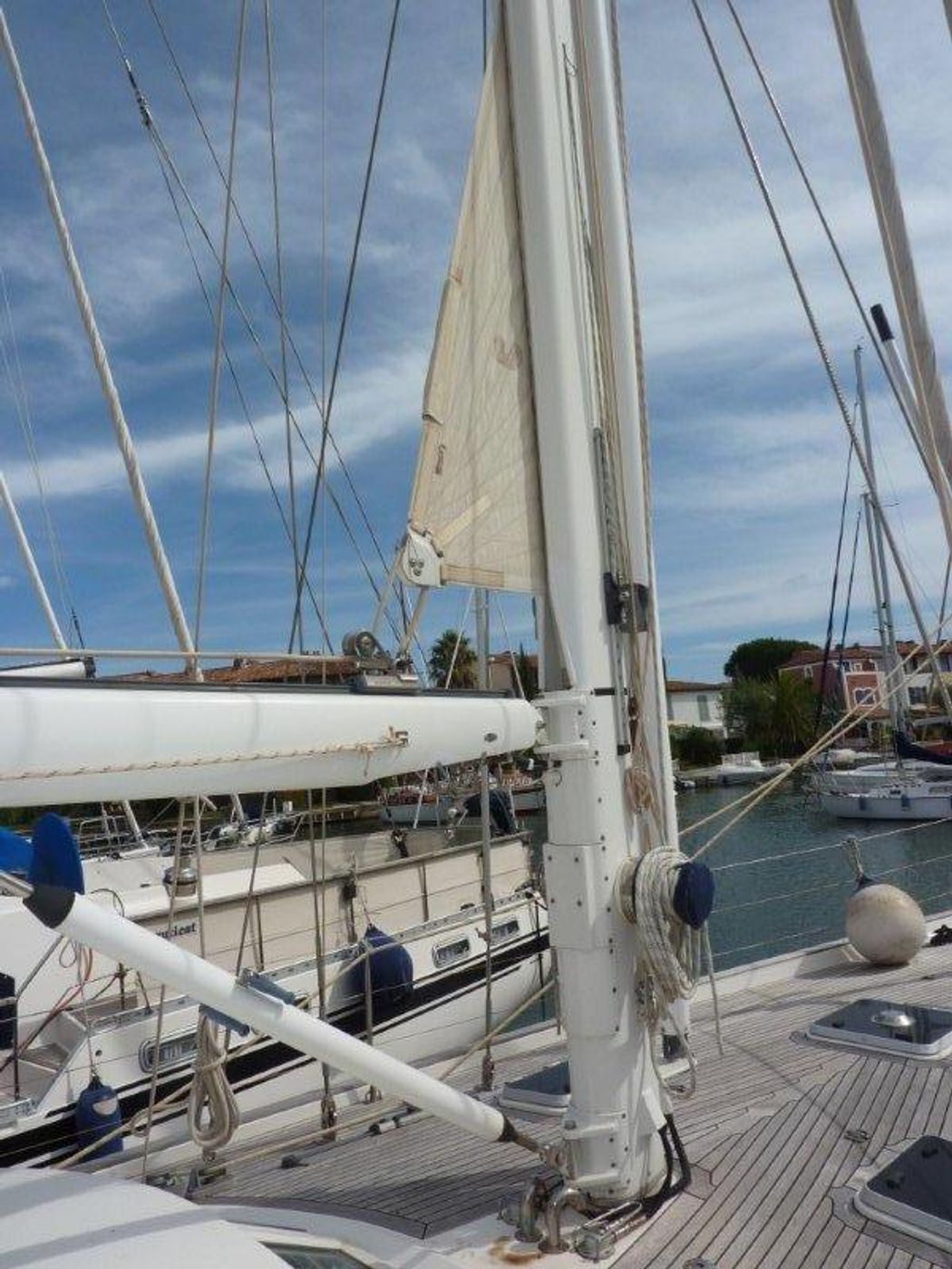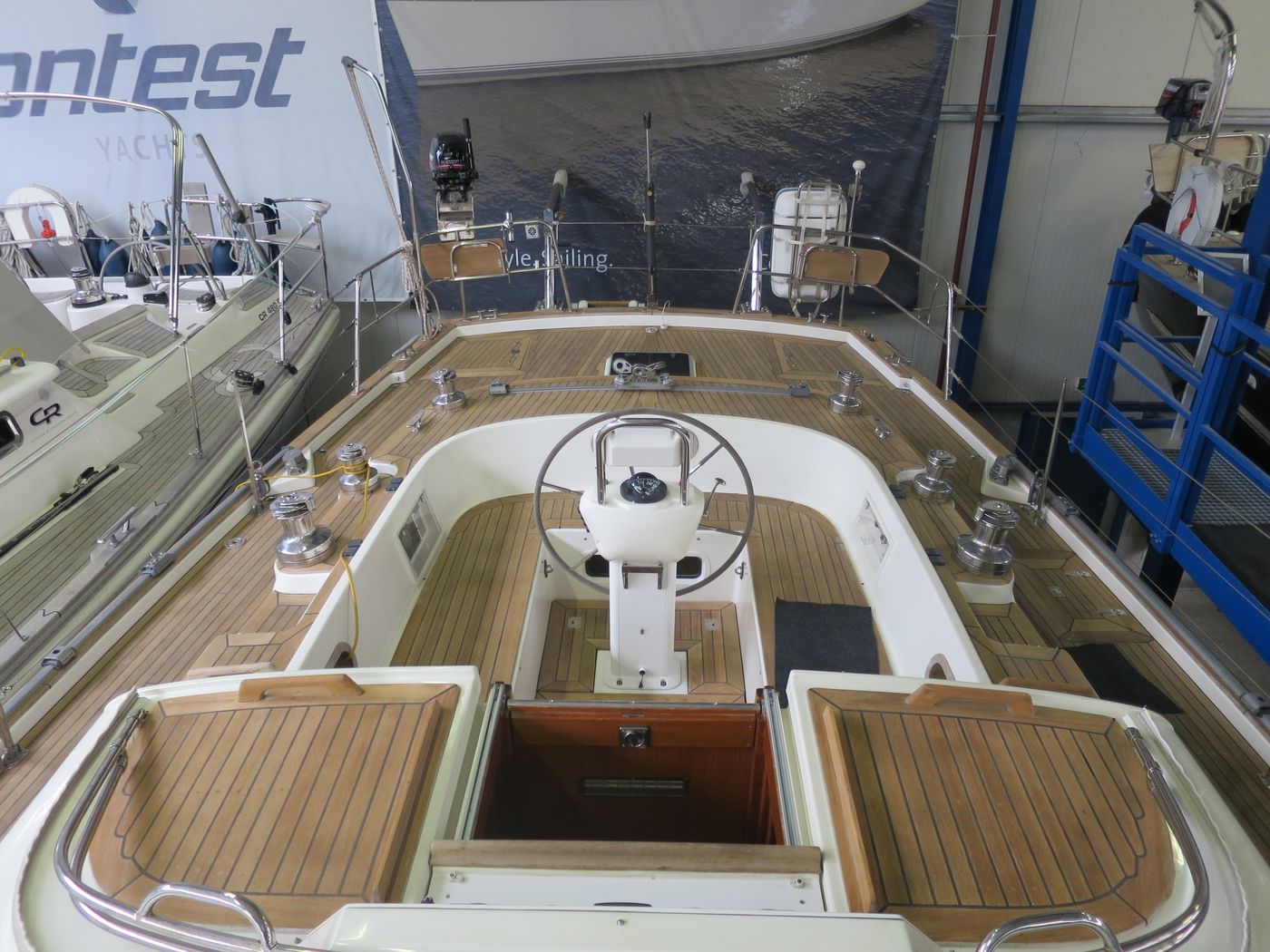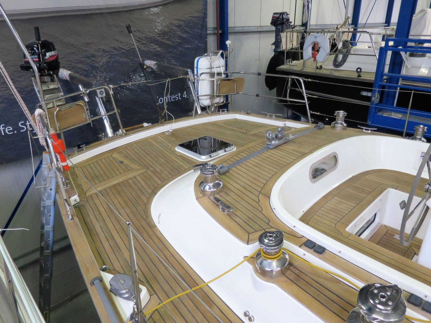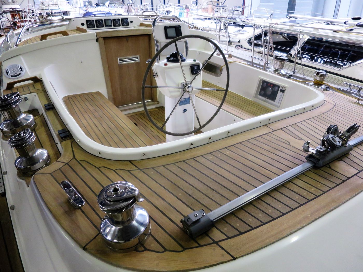 Deck constructionTeak on vacuum infused sandwich GRP deck, refurbished in 2019!