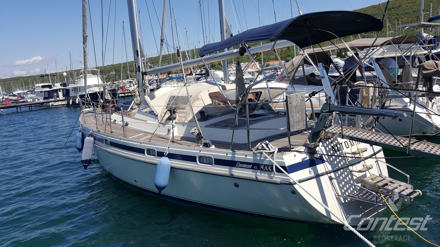 The Contest 43 'Altomira' is a very good example of a well-maintained and comfortable cruising yacht. Designed by Dick Zaal she combines sailing performance and convenient on-board living. Her handcrafted teak interior with spacious owners cabin and refined saloon makes her a yacht very suitable for longterm coastal cruising. Currently berthed at the Adriatic coast she is equipped for sailing the southern European coastal waters. Feel warmly invited to contact us for more information or a visit. Please note that this brochure is preliminary.