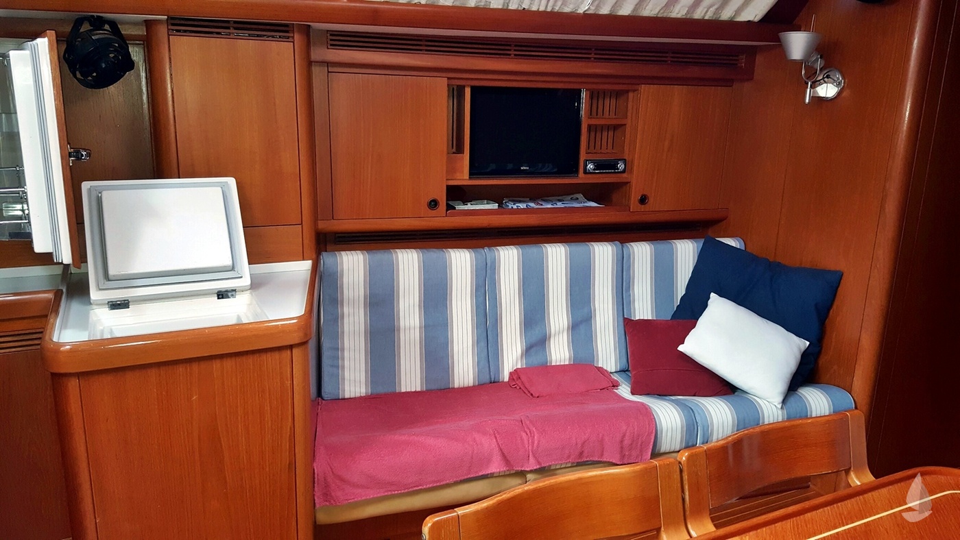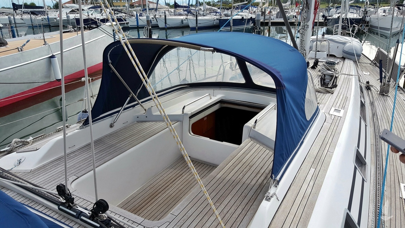 In mast furling, electric winches, , generator, washing machine, opening bathing platform, extensive navigation equipment, Please note that this brochure is preliminary and that a 5% commission rate (plus VAT) will be added to the selling price! If you're interested, please do not hesitate to contact us!