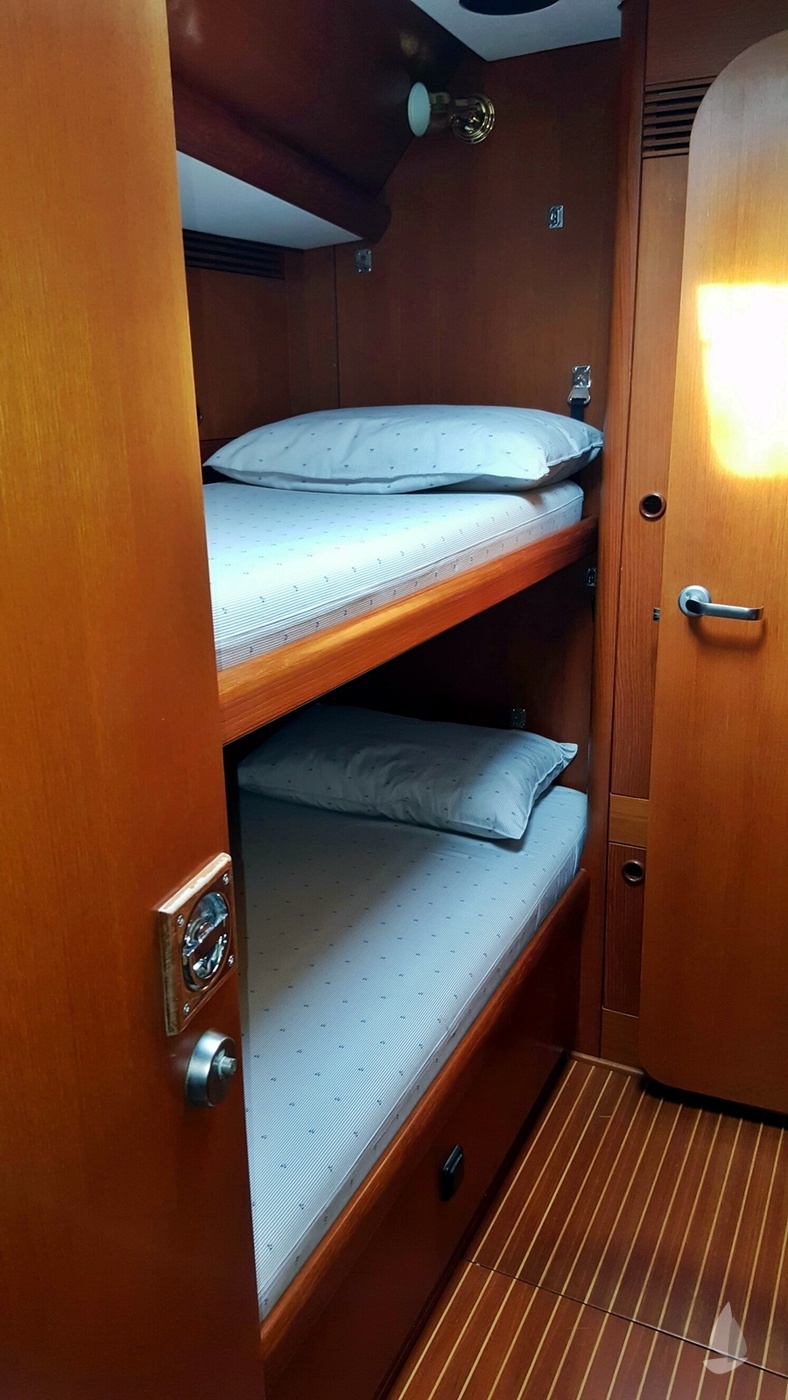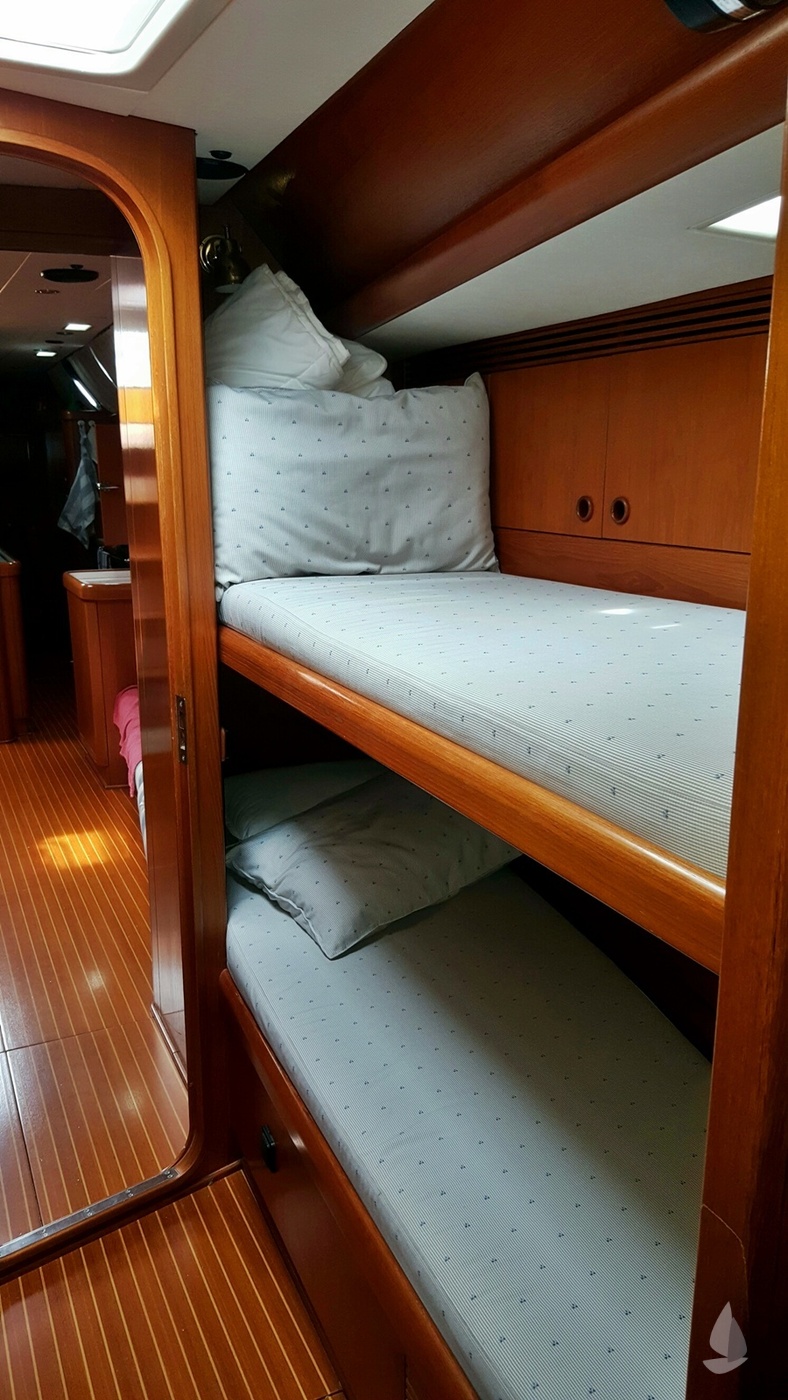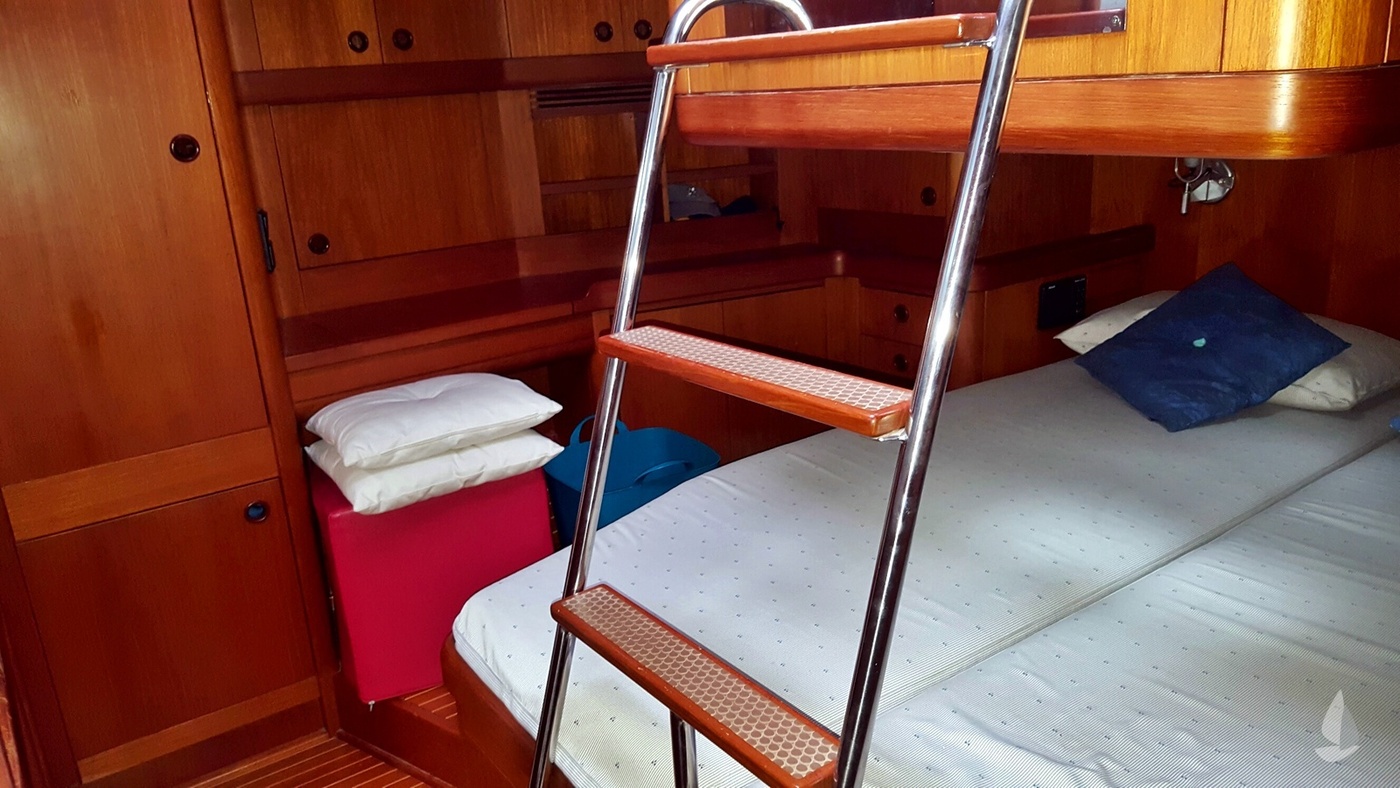 Cabins3 cabins, Double aft master stateroom with en suite; 2 Guest cabins with bunk beds at the bow