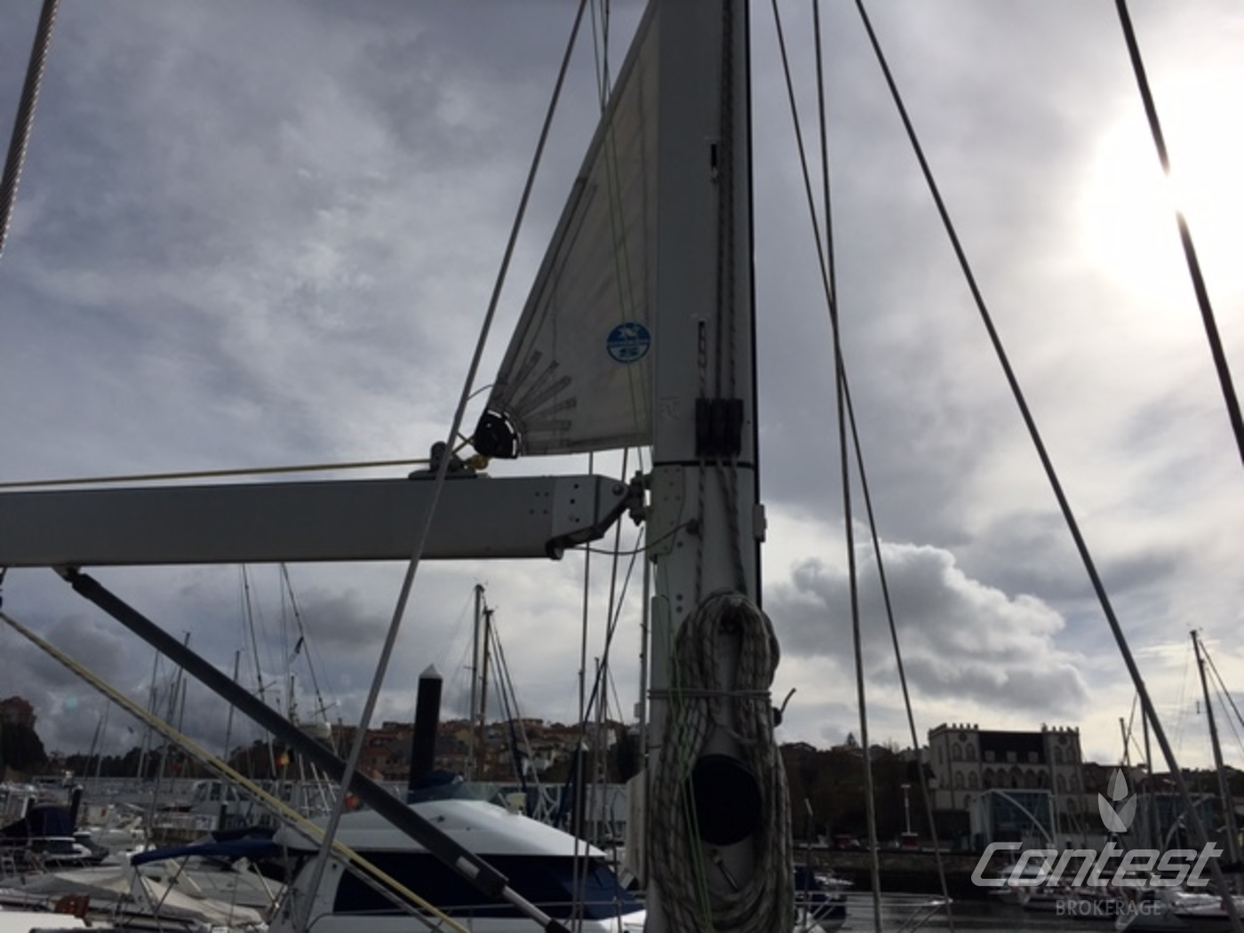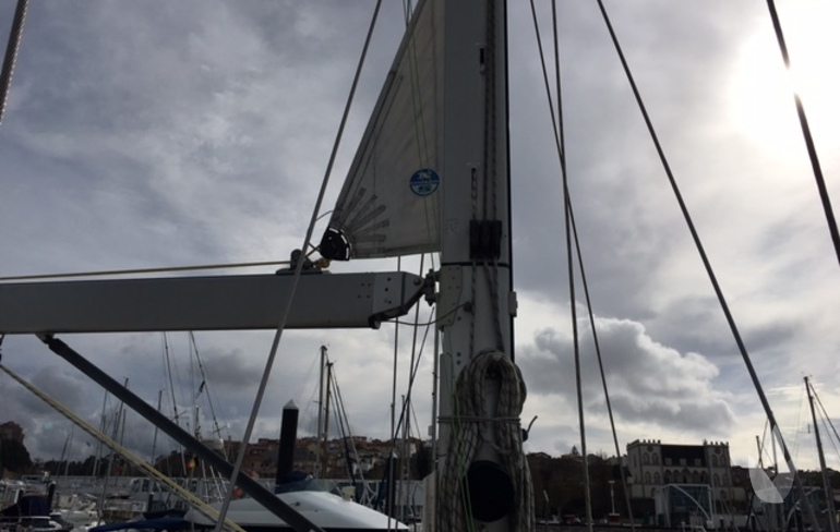 Round wooden riggingSparcraft aluminium mast and boom. Stainless steel standing rigging and rigged boom vang.