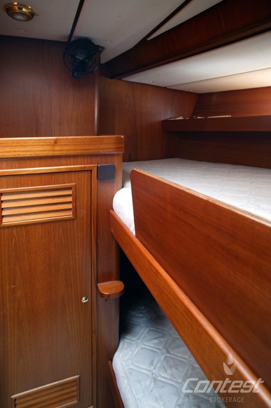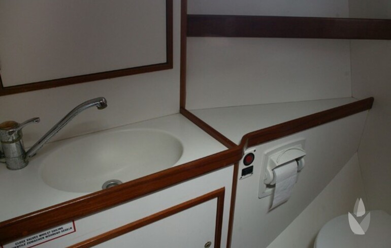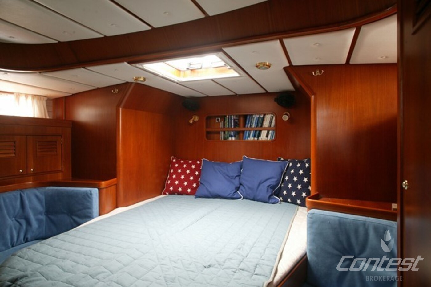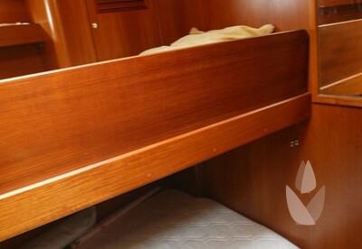 CabinsOwners cabin with french berth and two seats, side cabin with double bunk berths, forward cabin with double V-berth