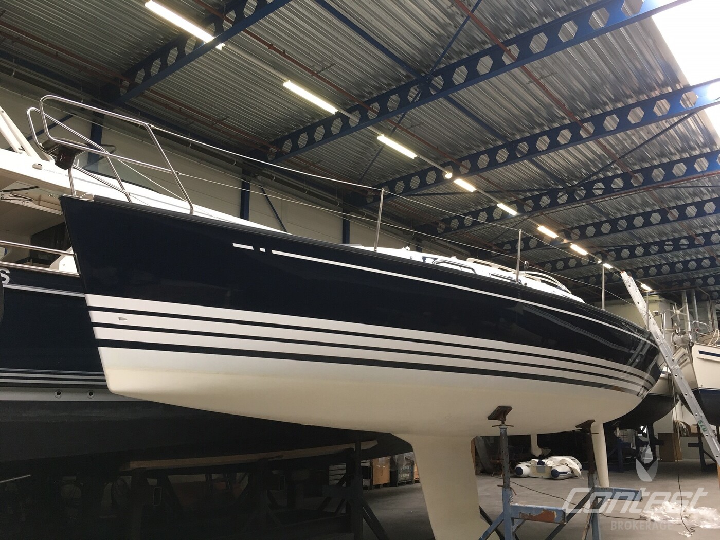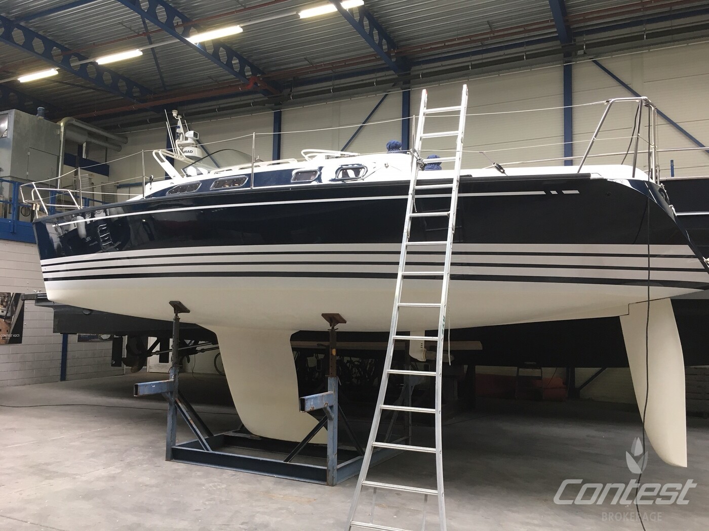 "Blauwe Maan" is currently in the hands of her first owner. He has taken very good care of her which has resulted in her very good condition. Her recently painted dark blue hull is still shining like new. She is well known for both her sailing capacities as well as her comfortable interior. Her sandwich construction ensure a very stiff hull. She comes with 2 sets of North Sails. We kindly invite you to come and see this beautiful yacht which is in turn-key condition. Preliminary information