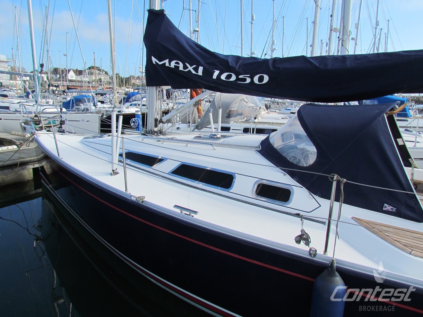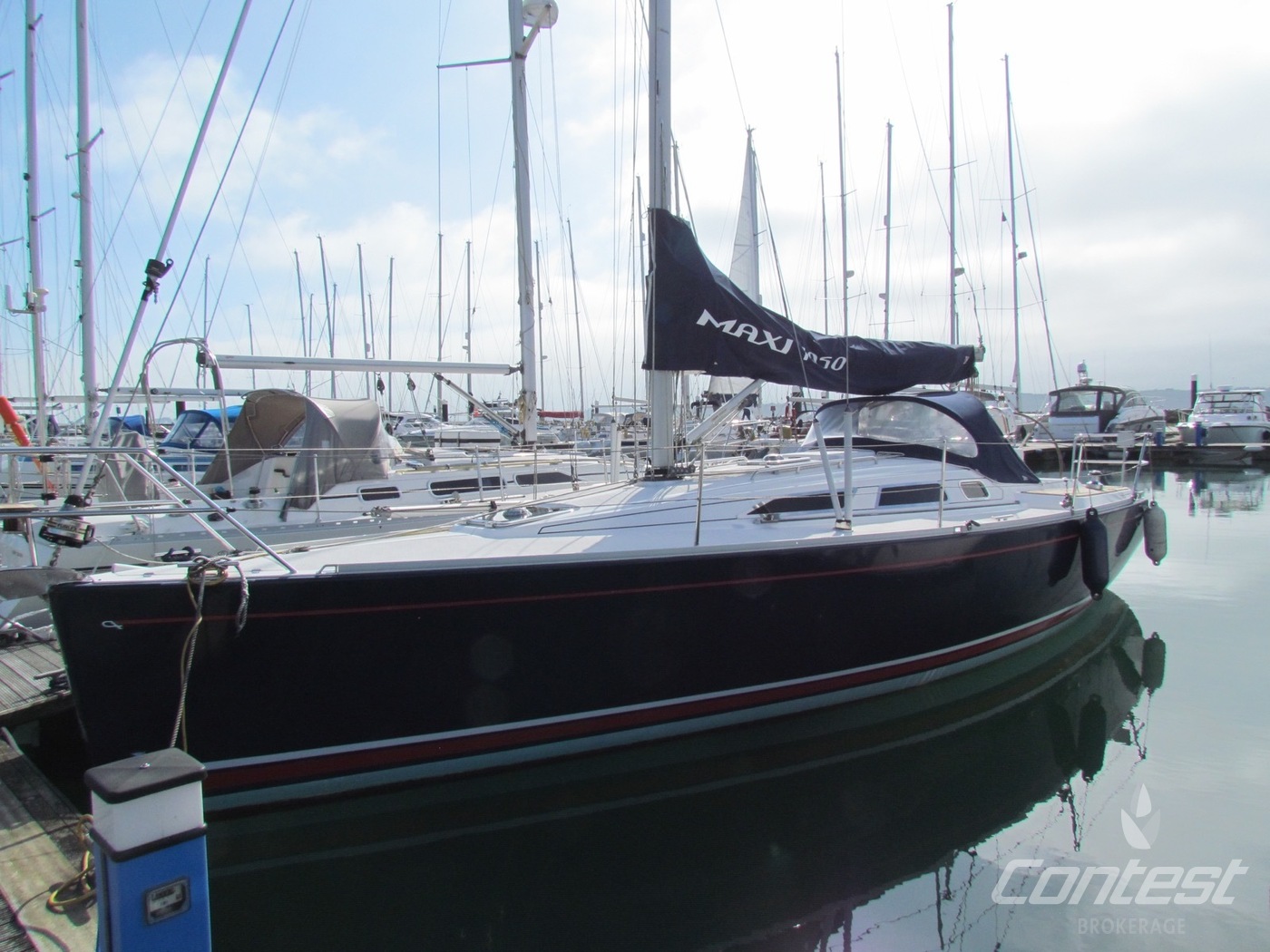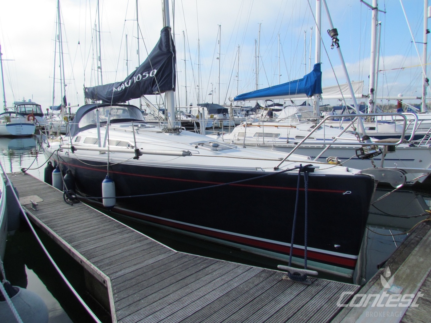 A stunning example of the Maxi 1050, a lightly used and professionally cared for performance cruiser. She is beautifully set up, and offers an excellent package; including Eberspacher heating, Raymarine E80 plotter in the cockpit and also at chart table, Volvo D1 engine with sail-drive, 3 bladed folding propellor, North sails, cruising chute, spinnaker pole, and much more! For further details please contact as!