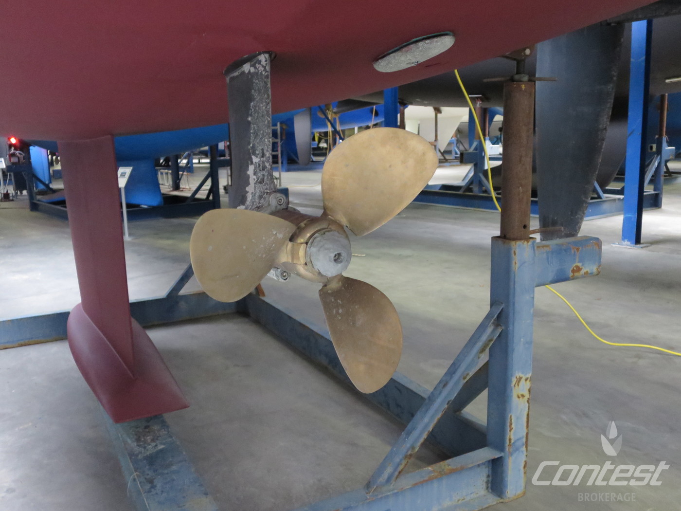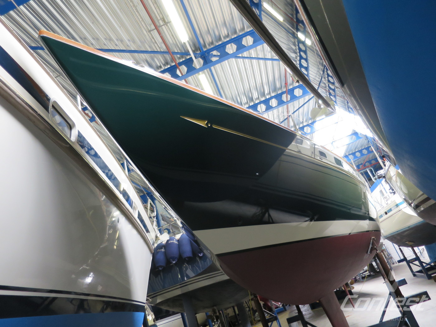 Hull typeGreen GRP/sandwich roundbilged hull with golden cove stripe