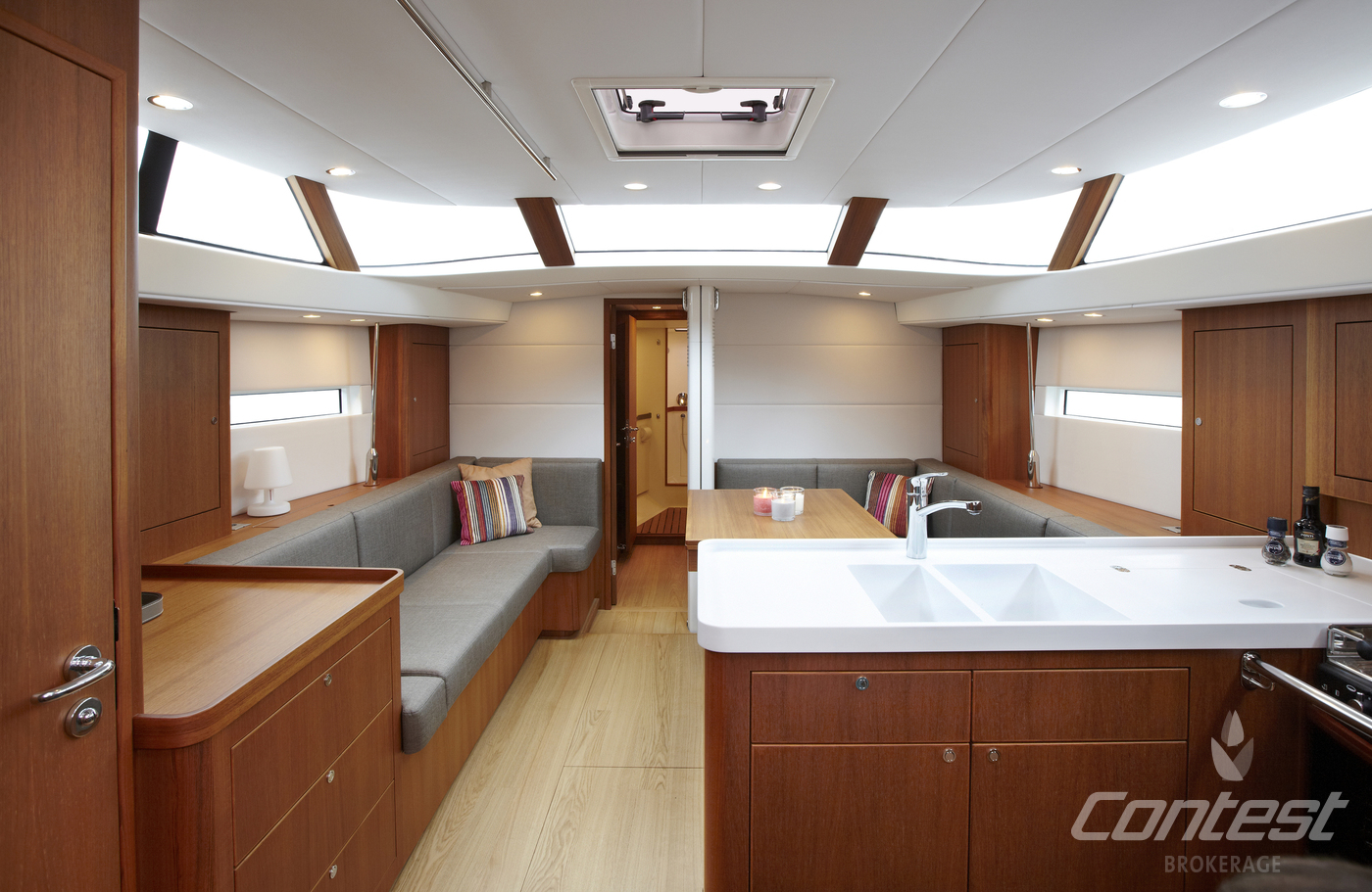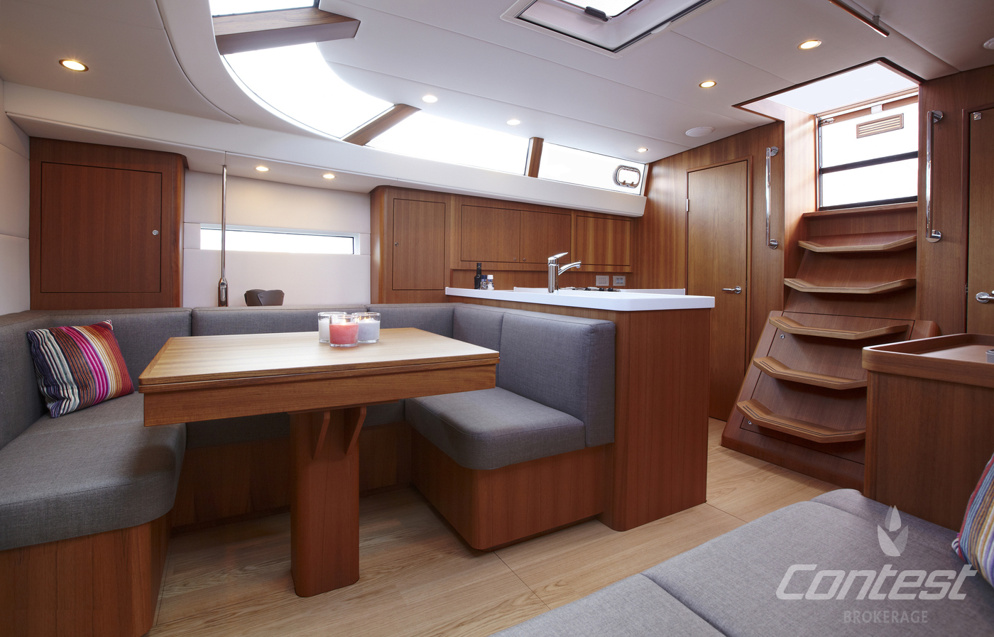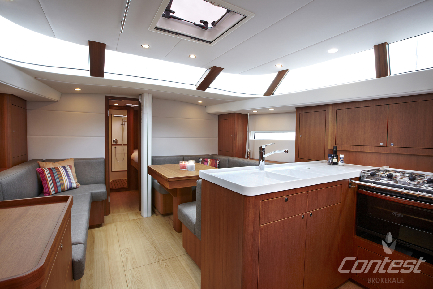 The Contest 42CS is the perfect example of a cruiser-racer. Winning the 2014 "Yacht of the year" award her versatility, quality and speed are internationally recognised. She is sailed easily single handed due to her electric winches for mainsail and genoa. Her 4 electric winches will ensure easy handling under all circumstances. Important features are double laminated panoramic window, handcrafted modern teak joinery, 3-cabins, large L-shaped galley, generator, folding transom/bathing platform. Please contact us for further information.