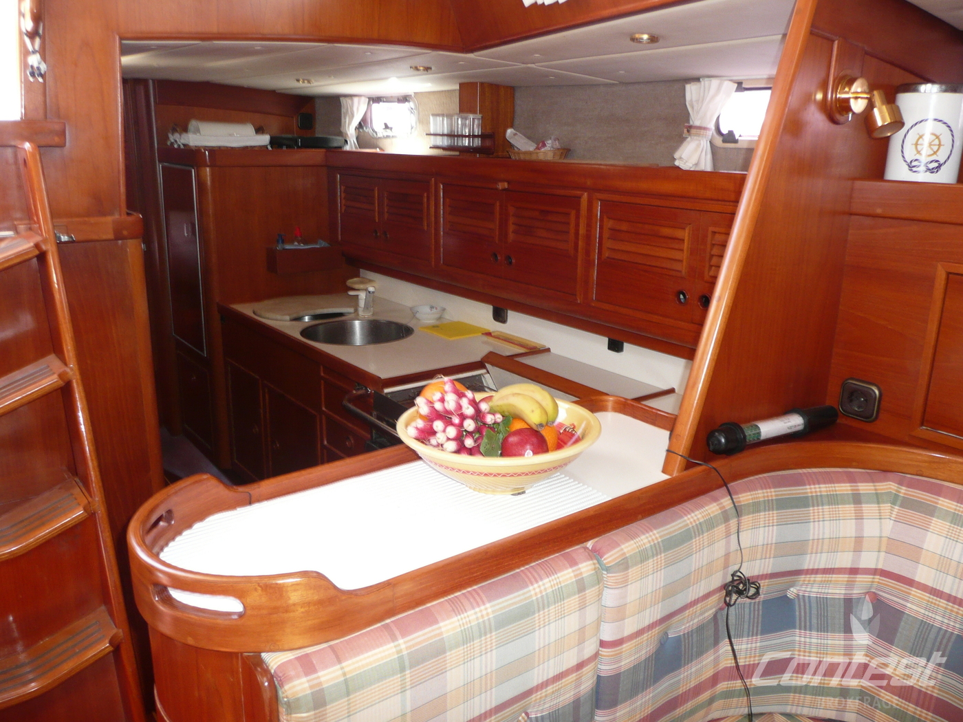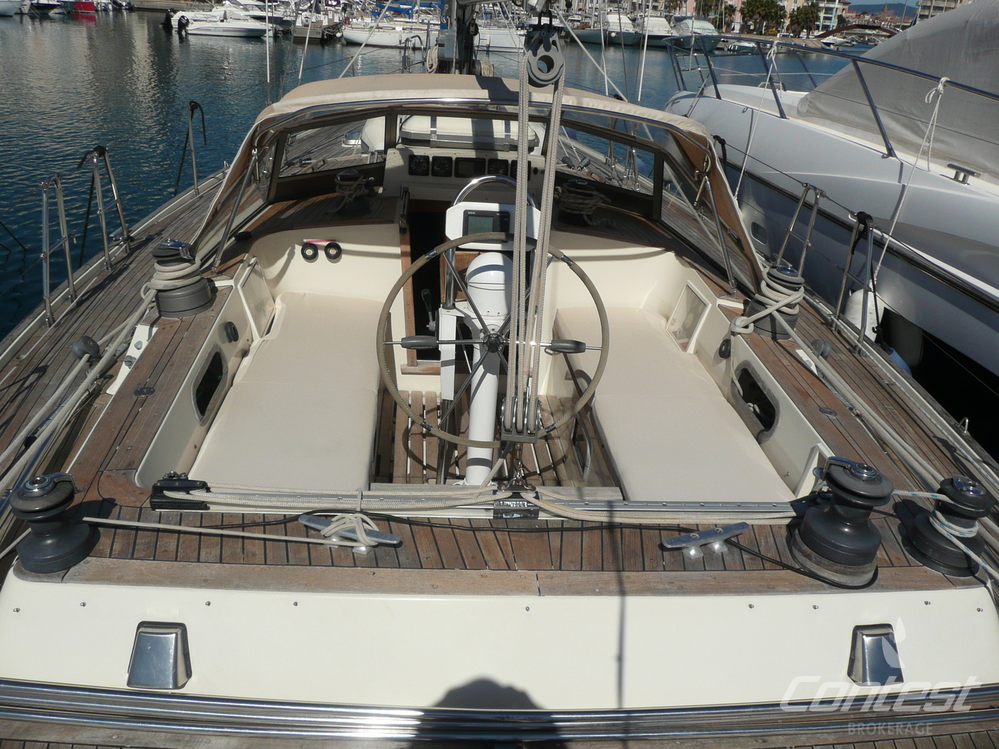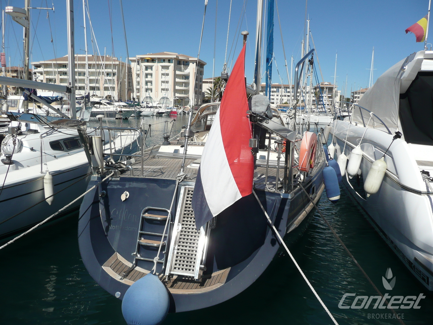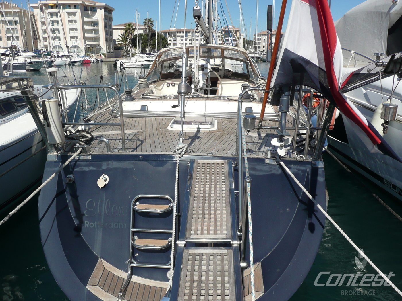 Contest 46 "Ellen" is a true example of a classic blue water cruiser. Build according Lloyds specifications, she is ready to sail the world's oceans. Her spacious interior layout offers a comfortable stay on board for 6 persons. Equipped with electric in-mast furling, generator, airco and heating she assures all the comforts you need. Please contact us for further information.