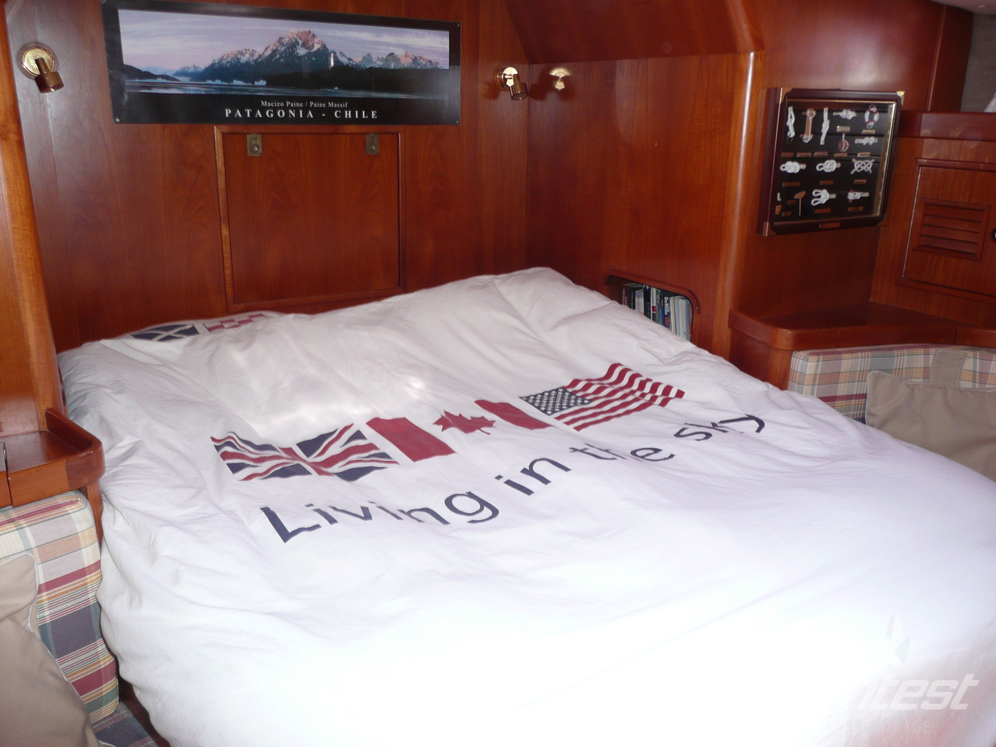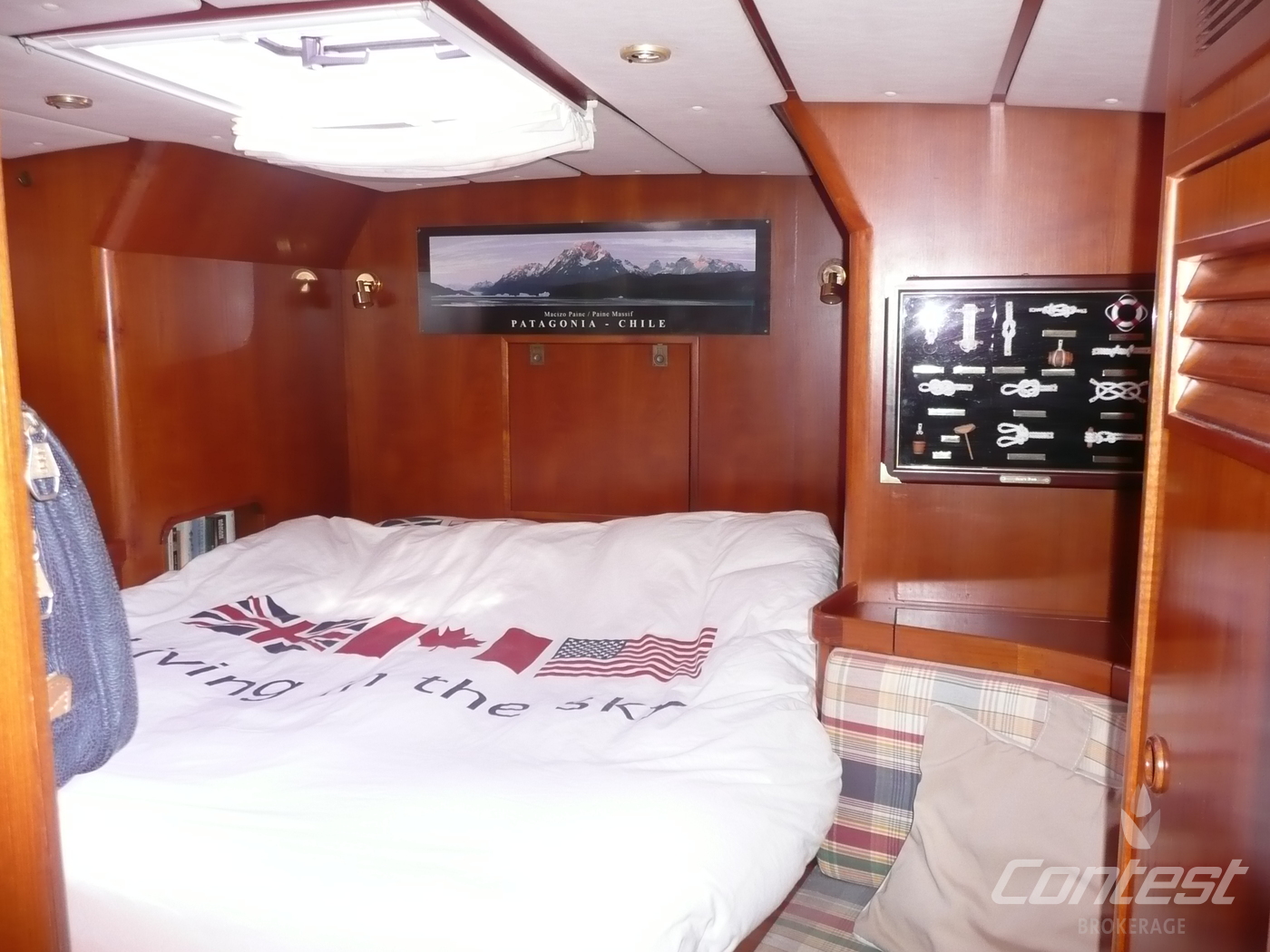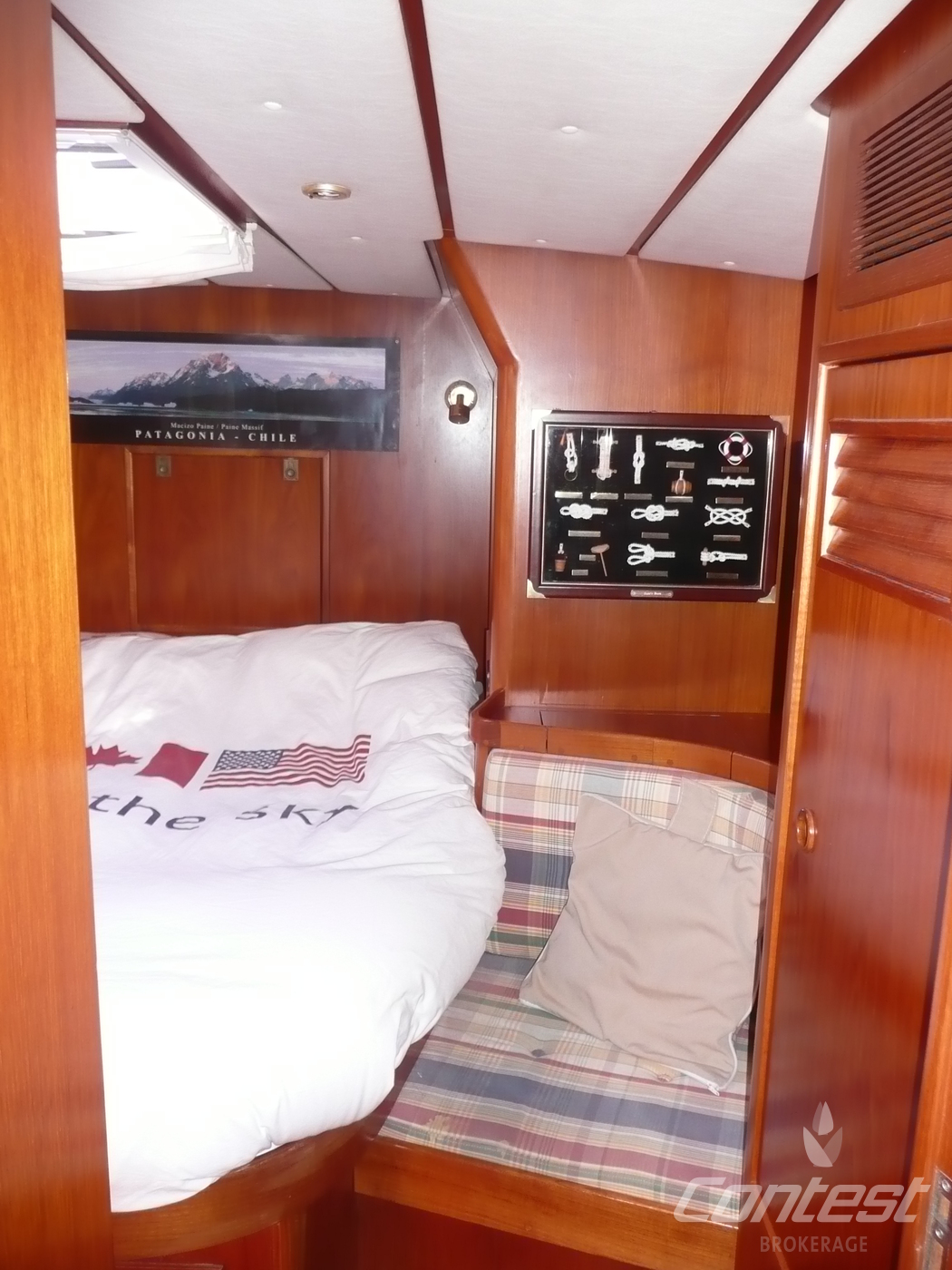 CabinsOwners cabin in aft, guest cabin in front with V-bed and guest cabin with bunk beds in passage to front