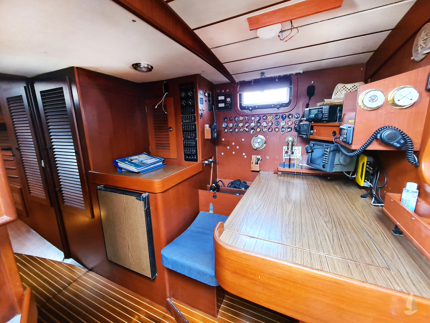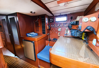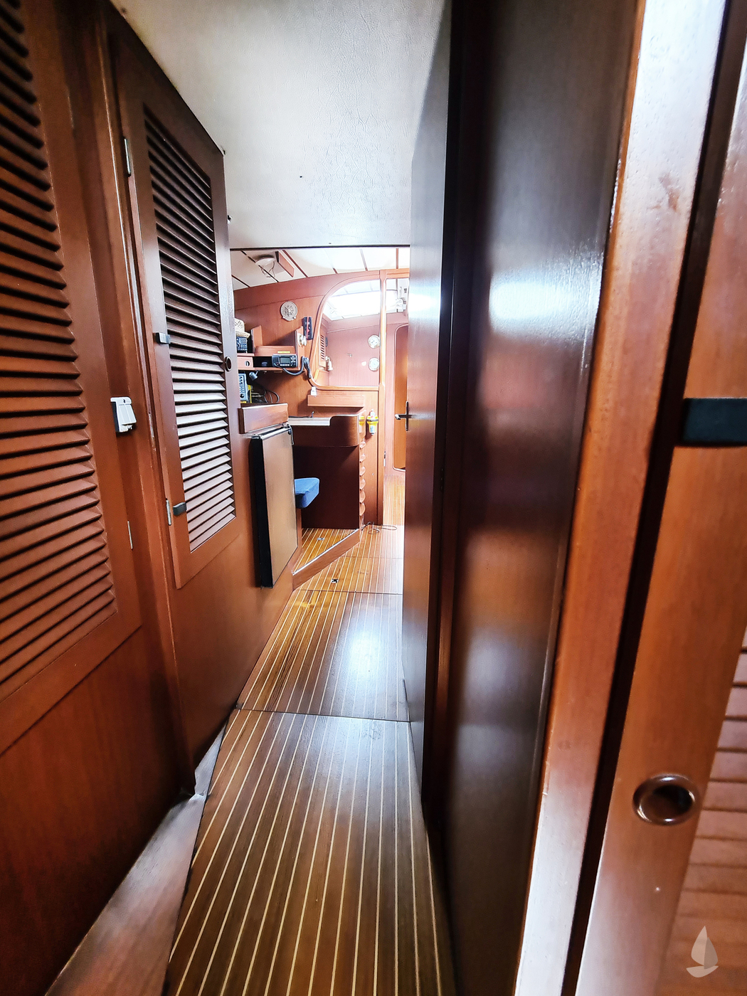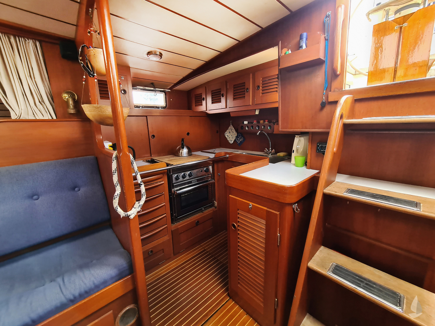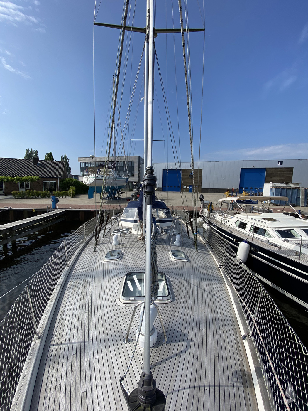 "Ariel" is a true blue water classic, it is a superb yacht for world wide cruising, with ample space for all possible equipment. Her clean flush deck is highly appreciated. With her 8 fixed berths and potential to create two more, travelling with great groups of company is among the possibilities.