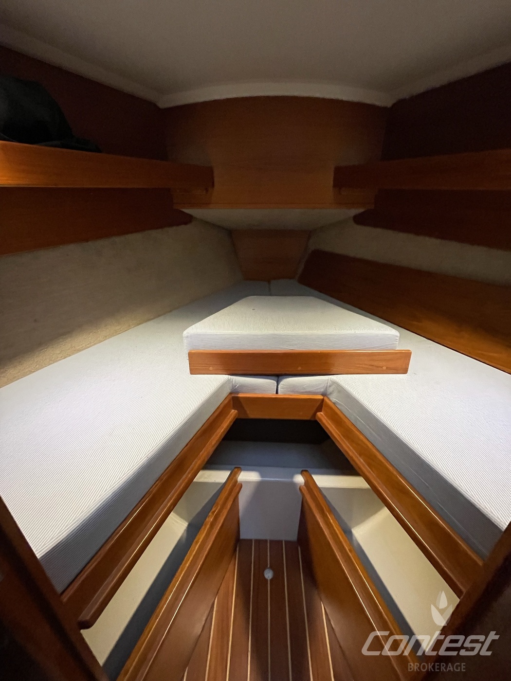 The Contest 36S was designed for serious seagoing, both above and below decks. She is a substantial, aft-cockpit cruising yacht with high topsides and semi-flush decks. There is a large aft-cabin, a good galley and huge chart table. Compared to other cruising yachts of that era they also perform admirably. "KEA" is a excellent example, she has had many recent upgrades, including all her nav. equipment, sails, standing and running rigging. She is well equipped and viewing is highly recommended. Please note this is a priminary brochure.