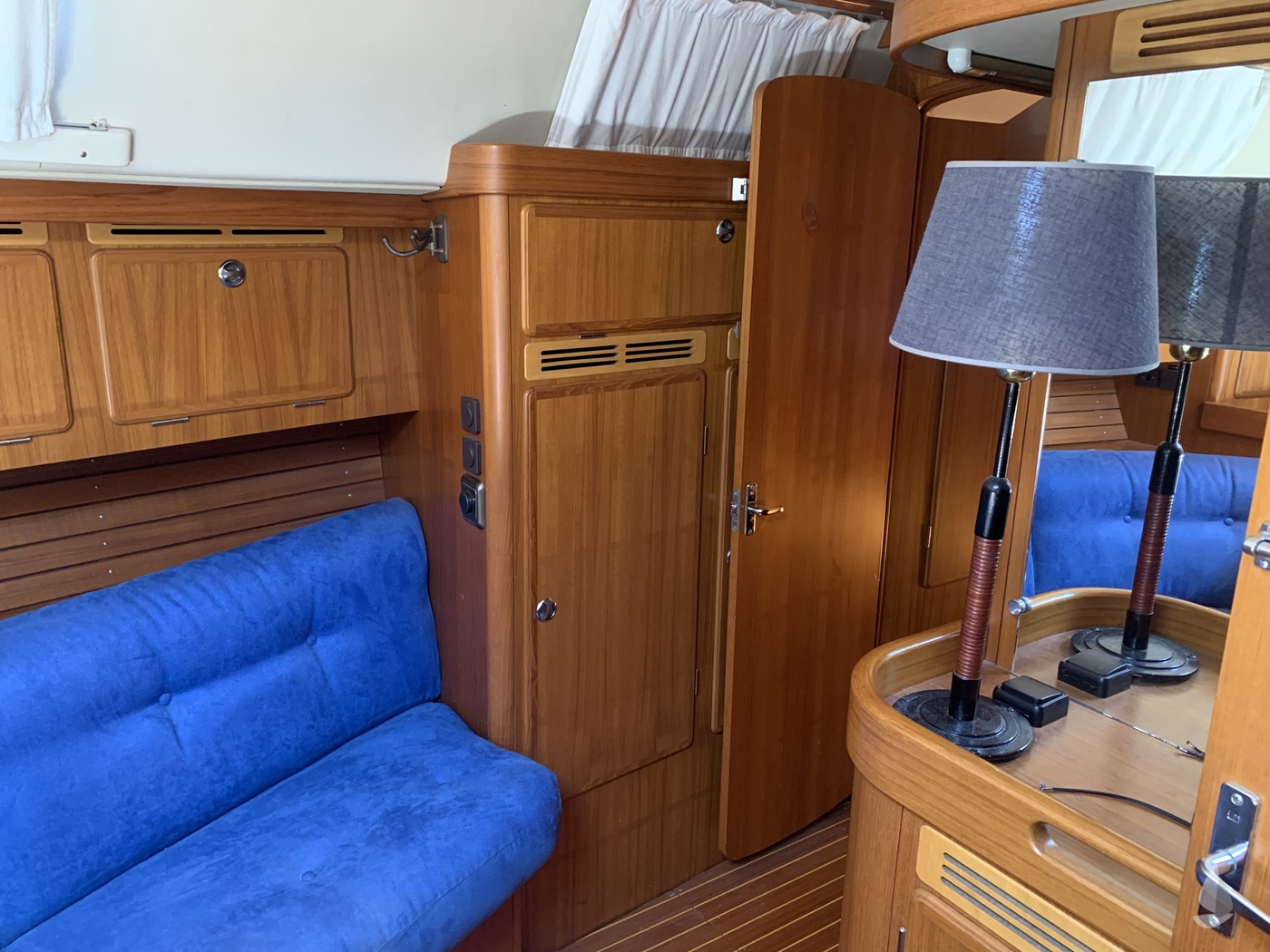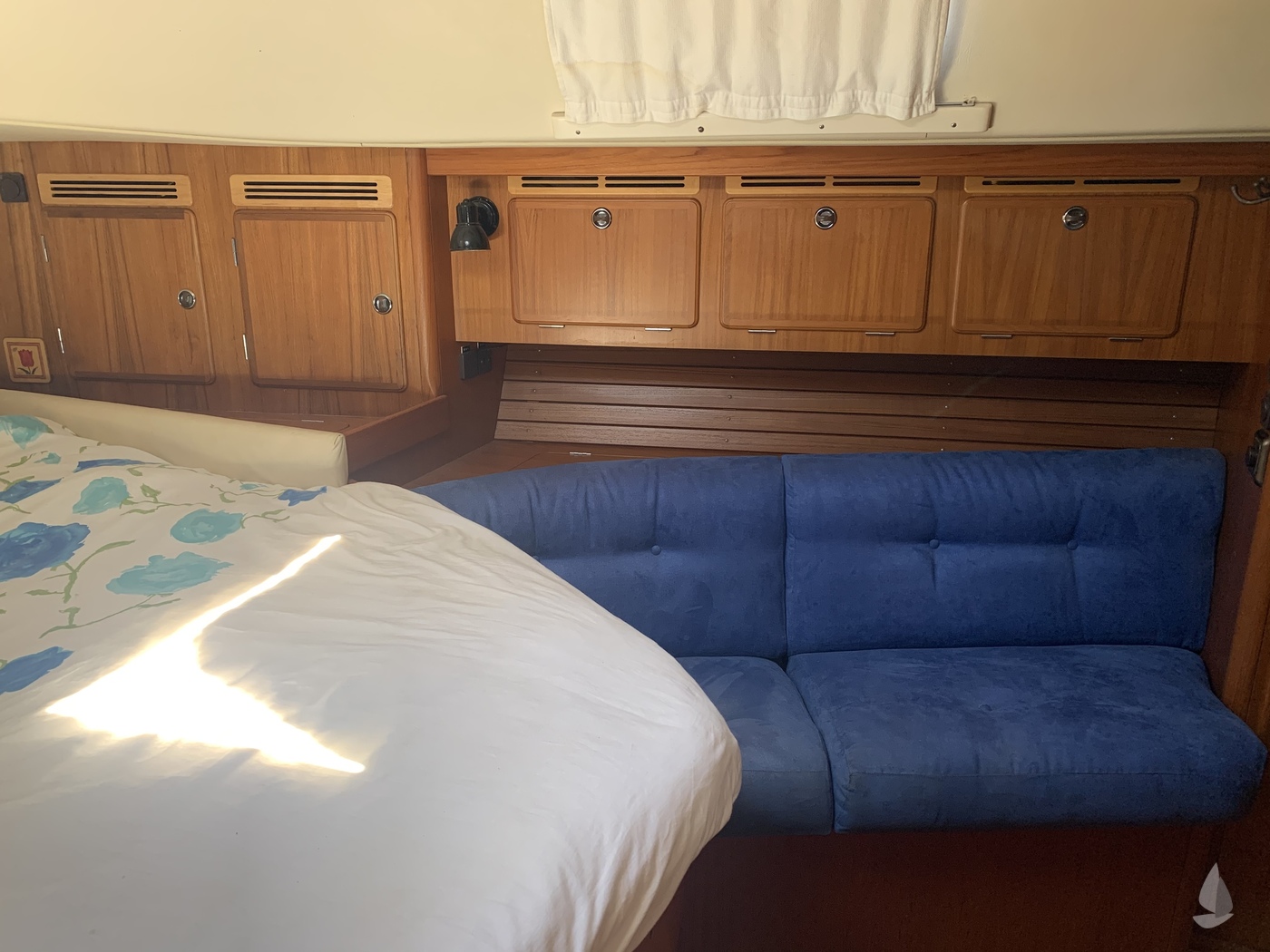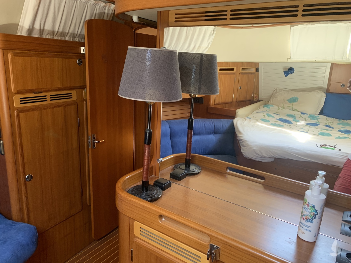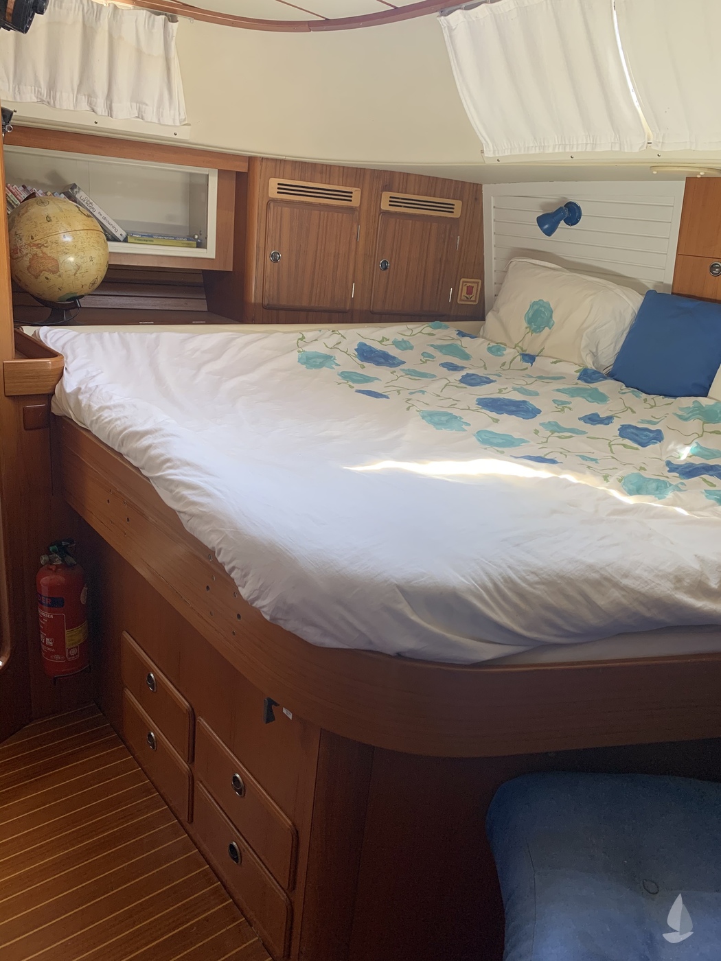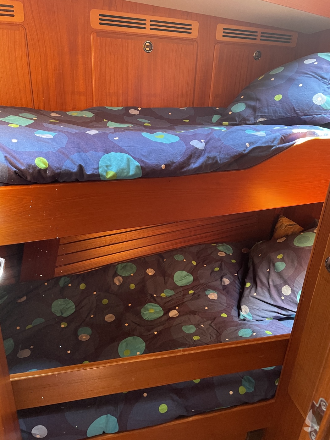 CabinsAft cabin with French central berth, forward cabin with V-berth, SB cabin with 2 bunk beds.