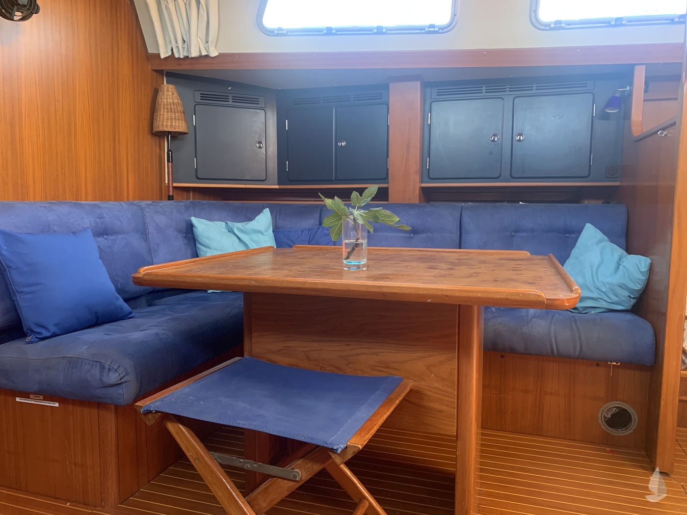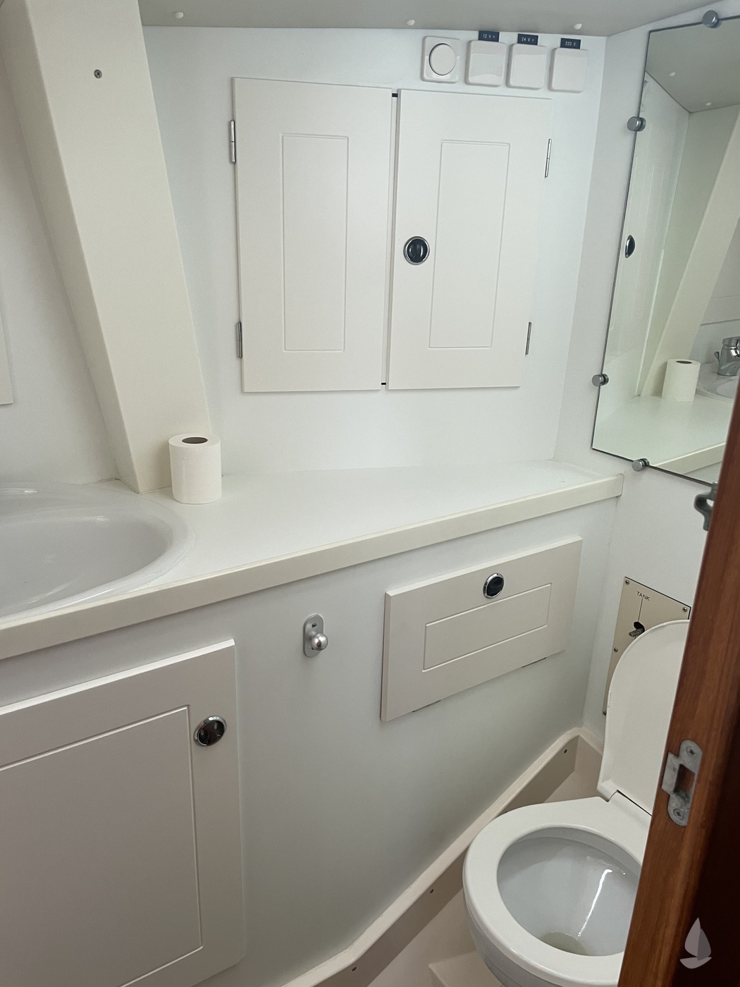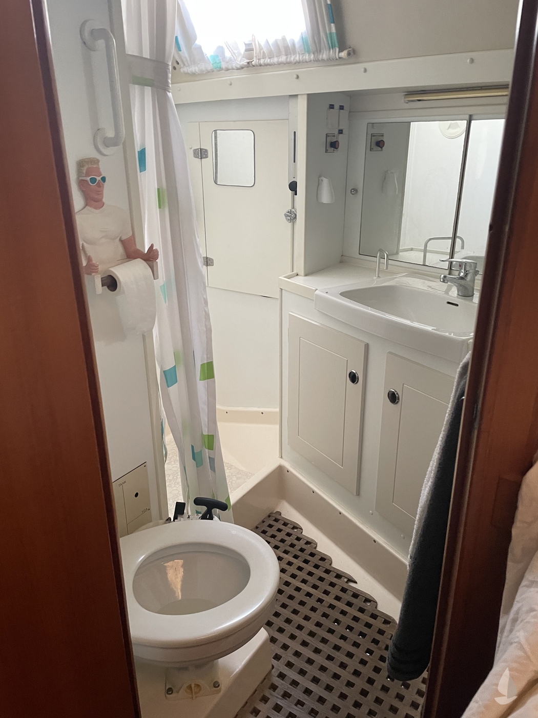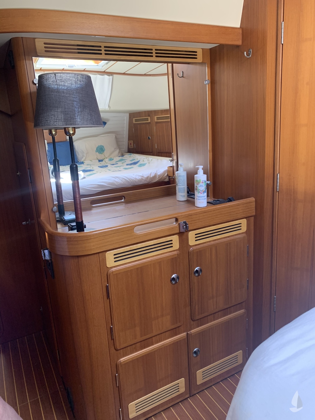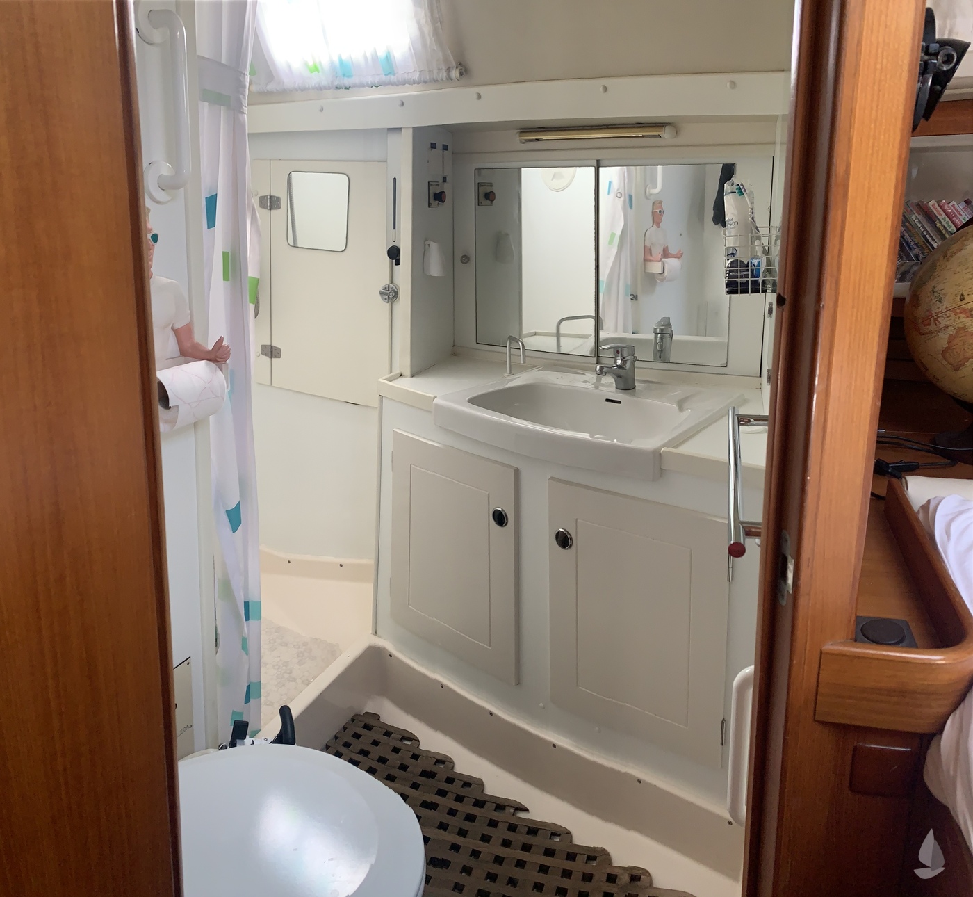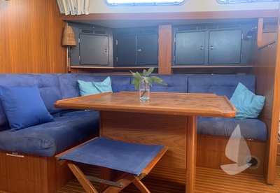 CabinsAft cabin with French central berth, forward cabin with V-berth, SB cabin with 2 bunk beds.