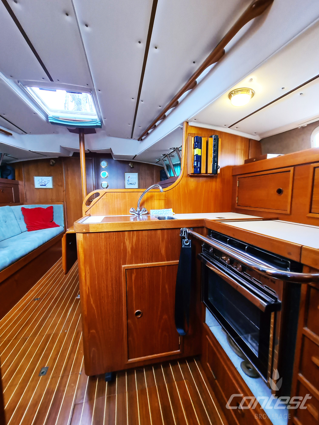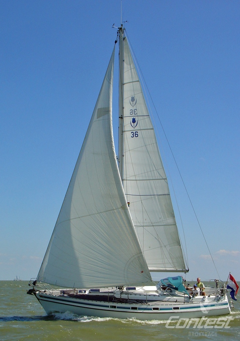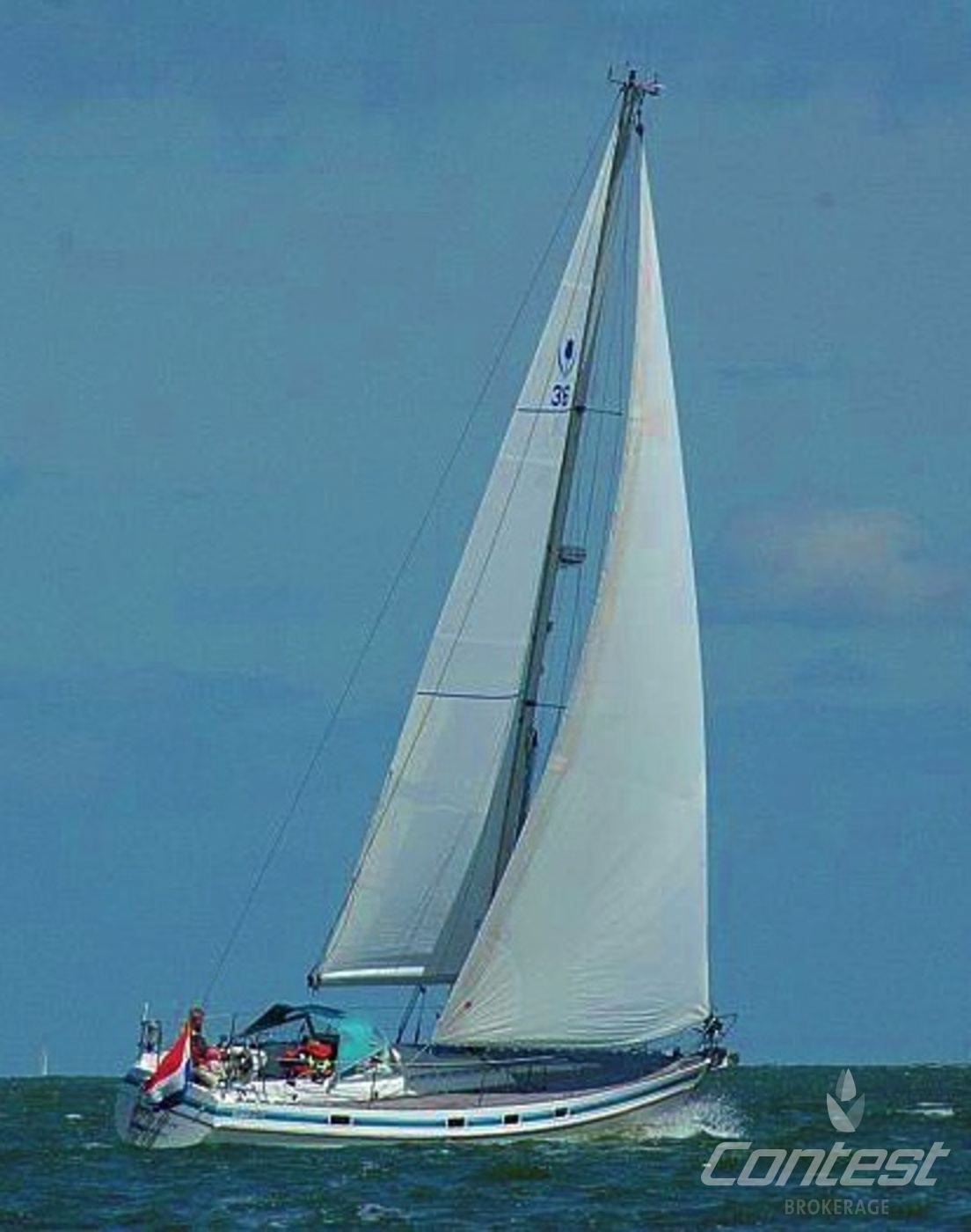 The Contest 36S was designed for serious seagoing, both above and below decks. She is a substantial, aft-cockpit cruising yacht with high topsides and semi-flush decks. There is a large aft-cabin, a spacious galley and huge chart table. Compared to other cruising yachts of that era they also perform admirably. "Marhynder" is an excellent example. She is well equipped and viewing is highly recommended. Please note this is a preliminary brochure.
