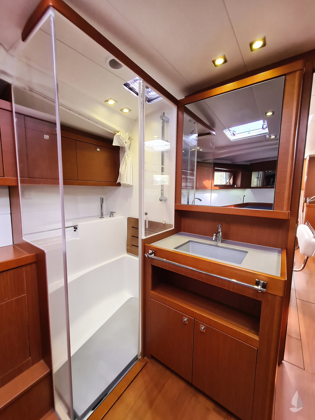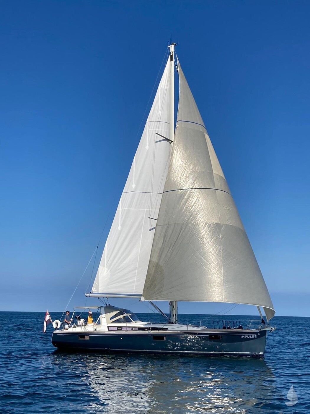 "Impulse" is an easy handling, fast and spacious family cruiser, with more than enough space for all her guests in the spacy saloon and her 3 cabins. She is very well equipped with her in-mast furling, elec. furling head sail, electric genoa winches, generator and airconditioning. She has uncluttered deck with wide, obstacle free, gangways for comfortable walking. On the foredeck is a huge deck locker to store her Code Zero, mooring lines and fenders. Her cockpit is huge and has a very nice drop-down bathing platform for easy excess to the jetty or the sea.