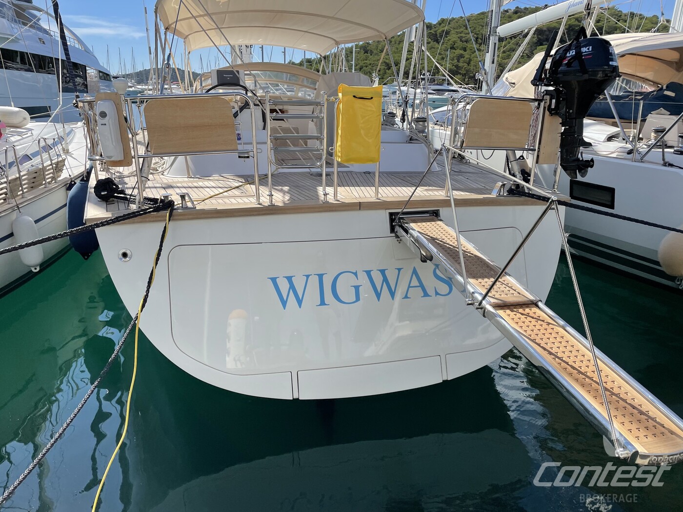 "Wigwas" is the perfect example of an elegant, fast and luxurious blue water cruiser. She is equipped to the highest standards with her full hydraulic furling system for all sails, s/s electric winches, climate control throughout and modern teak interior. She accomadates 8 people in her 4 cabins with en-suite heads. The yacht has been really well maintained by her current owner and professional skipper. Ready to go on some amazing voyages, she awaits her new owner. Please contact us for further details!