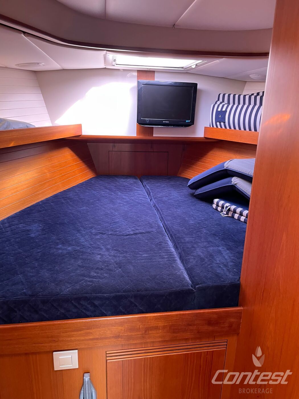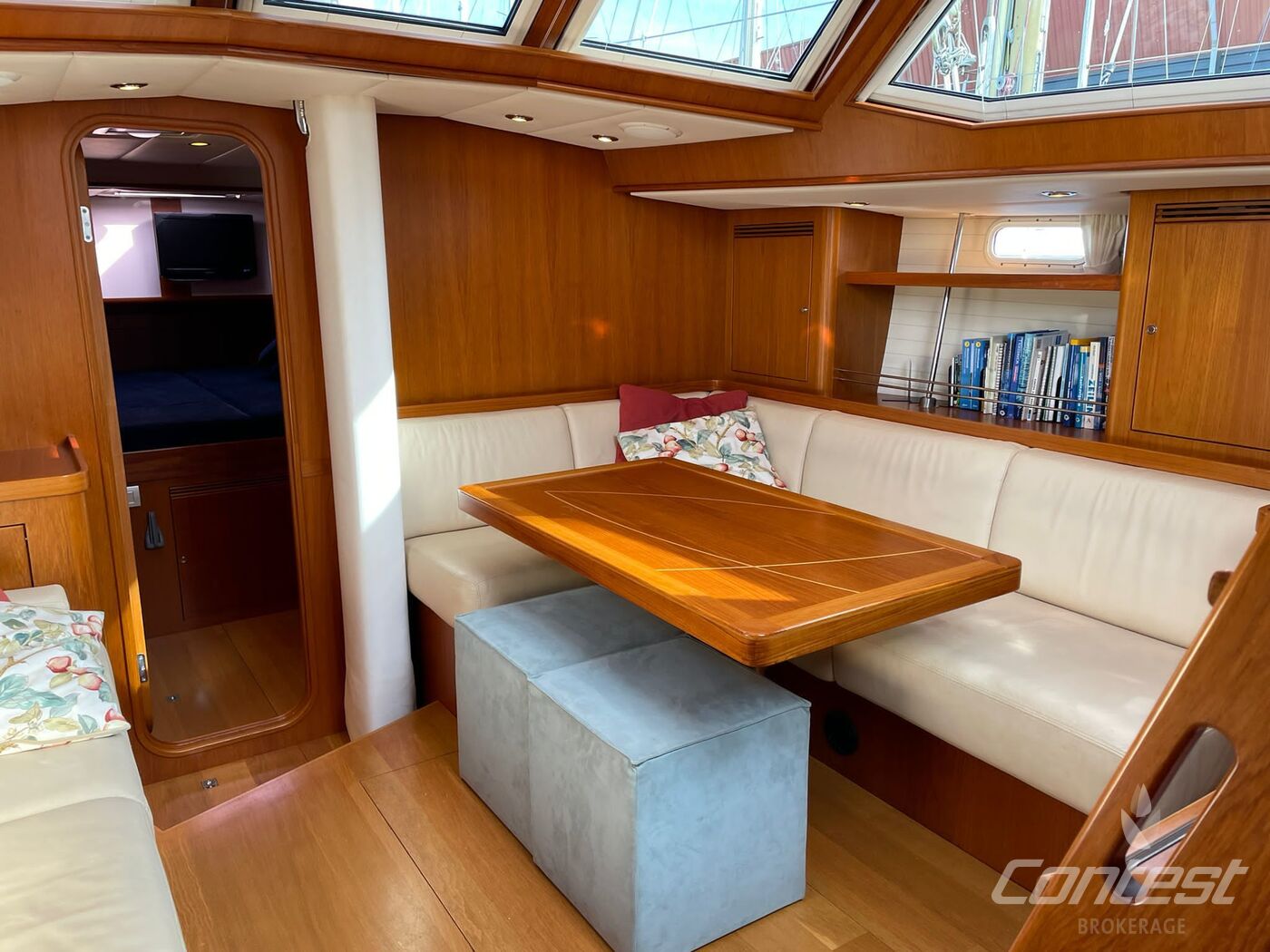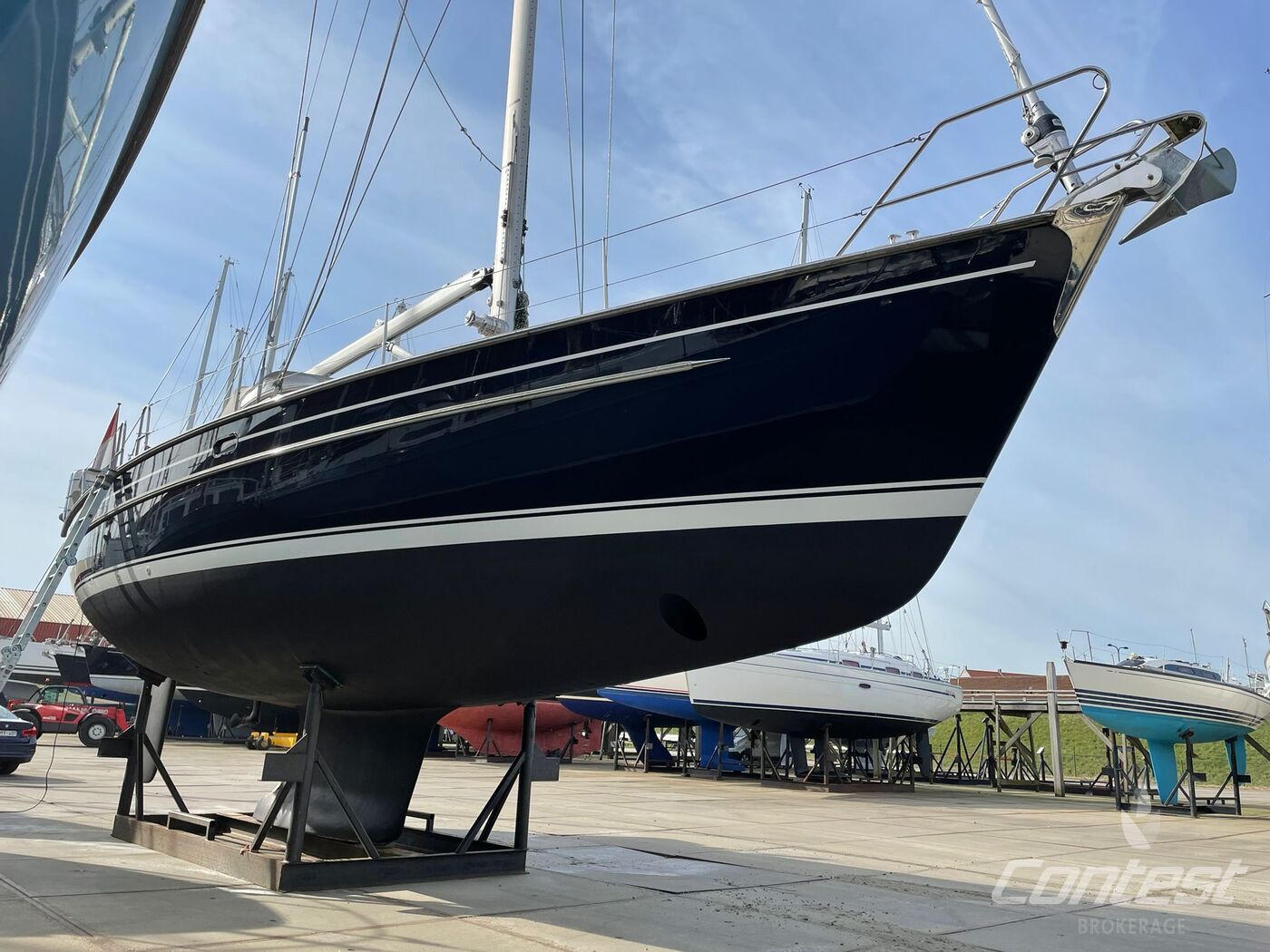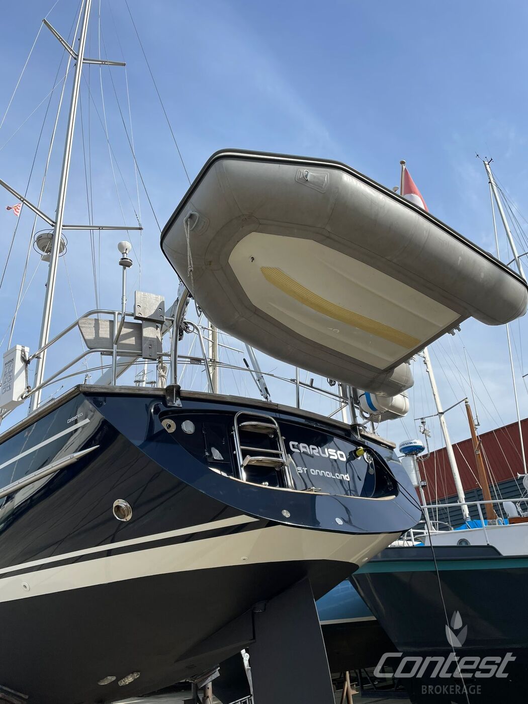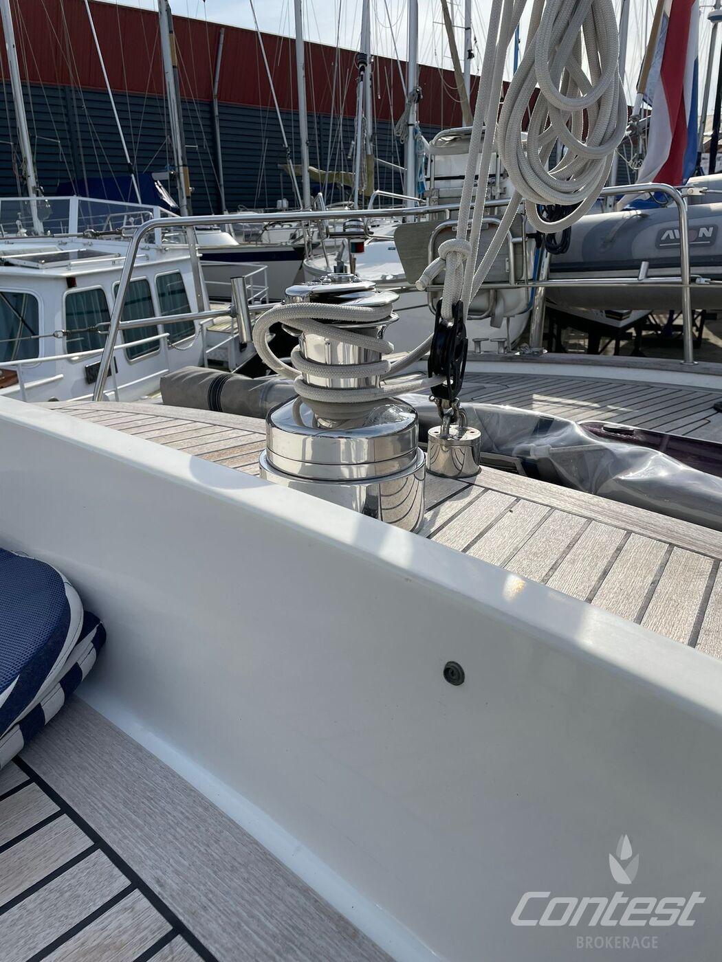 A rare opportunity to acquire a very well kept Contest 45CS. She is lightly used with only 7.450 miles on her log, approx 1.100 hours on the engine and her generator run around 77 hours. Her spacious interior by Birgit Schnaase makes it a joy to stay on board, her stiff, vacuum infused built hull secures the ultimate feeling of safety and the design of Georg Nissen maks sure you have a powerful yacht with comfortable behavior at sea. Her equipment list is almost endless with i.e. hydraulic in-mast furling, 4 electric winches, generator, airconditioning, extensive navigation package, fixed windscreen, davits and so on. We are happy to send you the extensive specs of this turn key yacht! Please note this brochure is preliminary & items on pictures van be excluded from the sale.