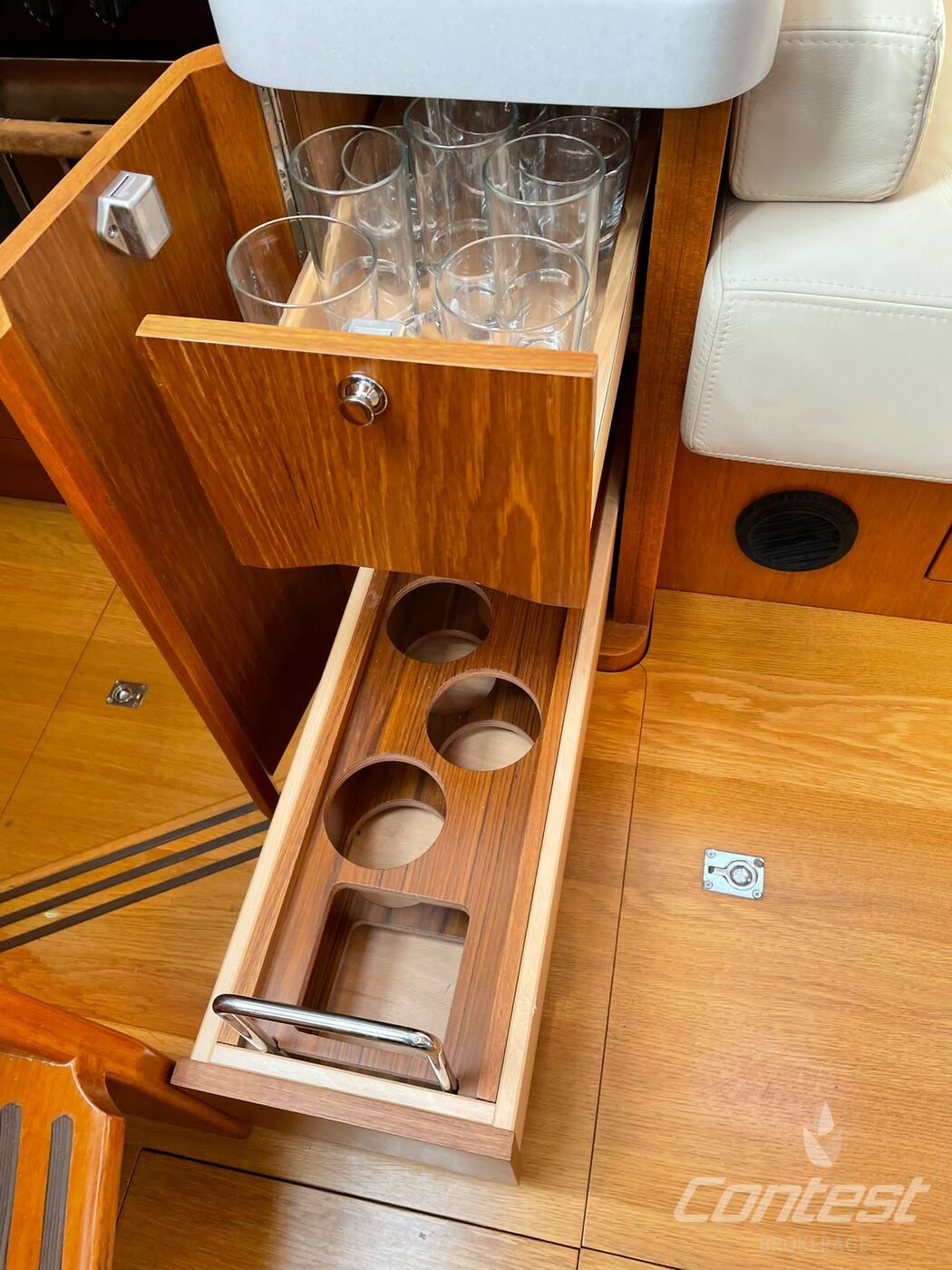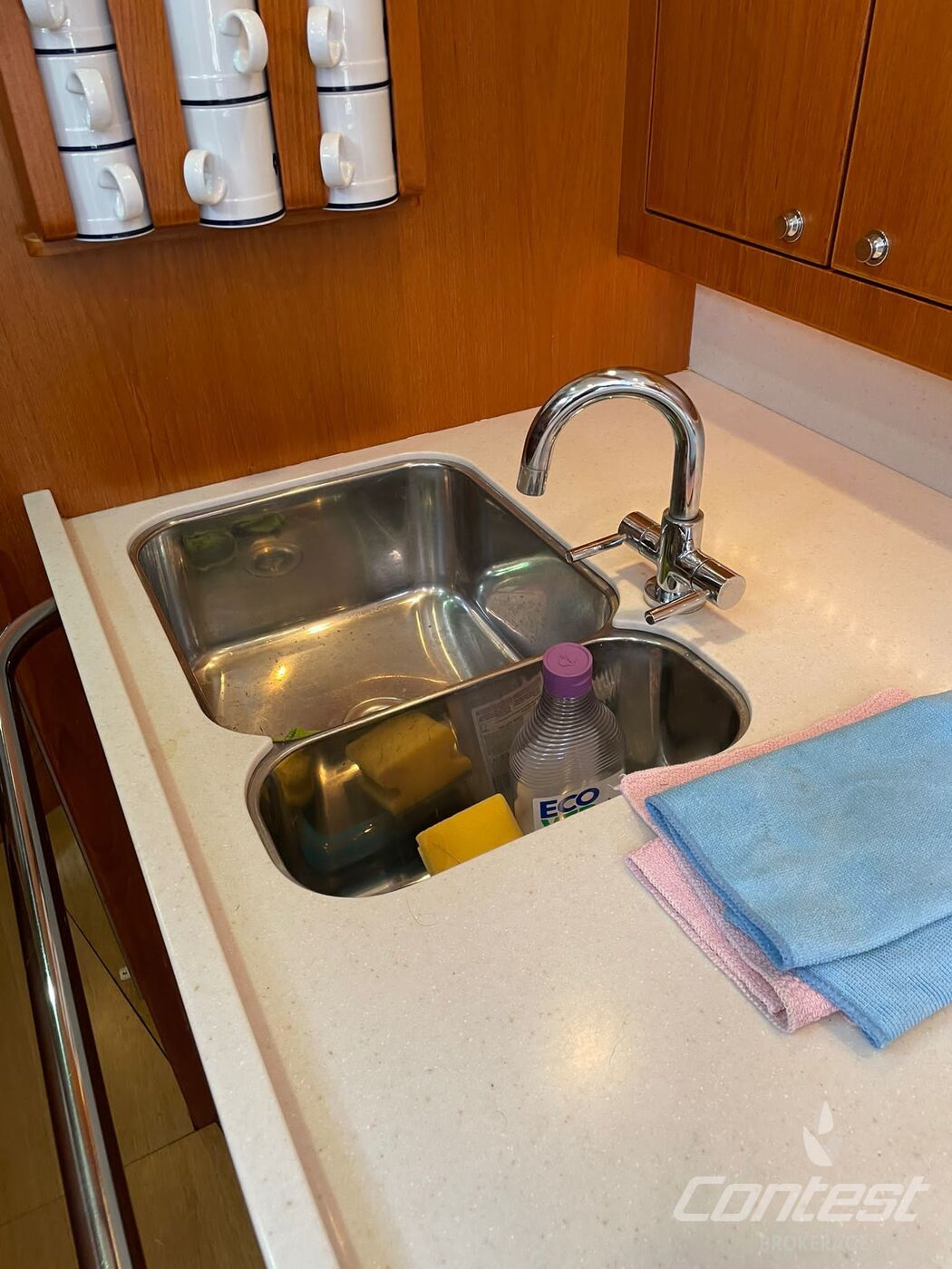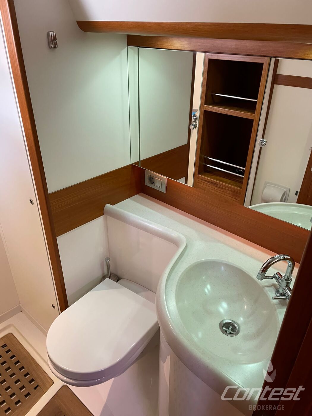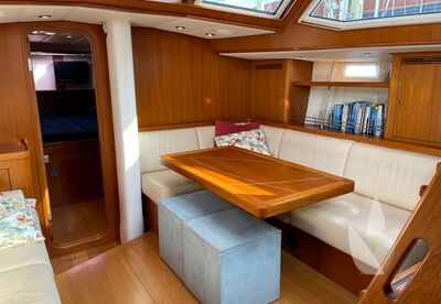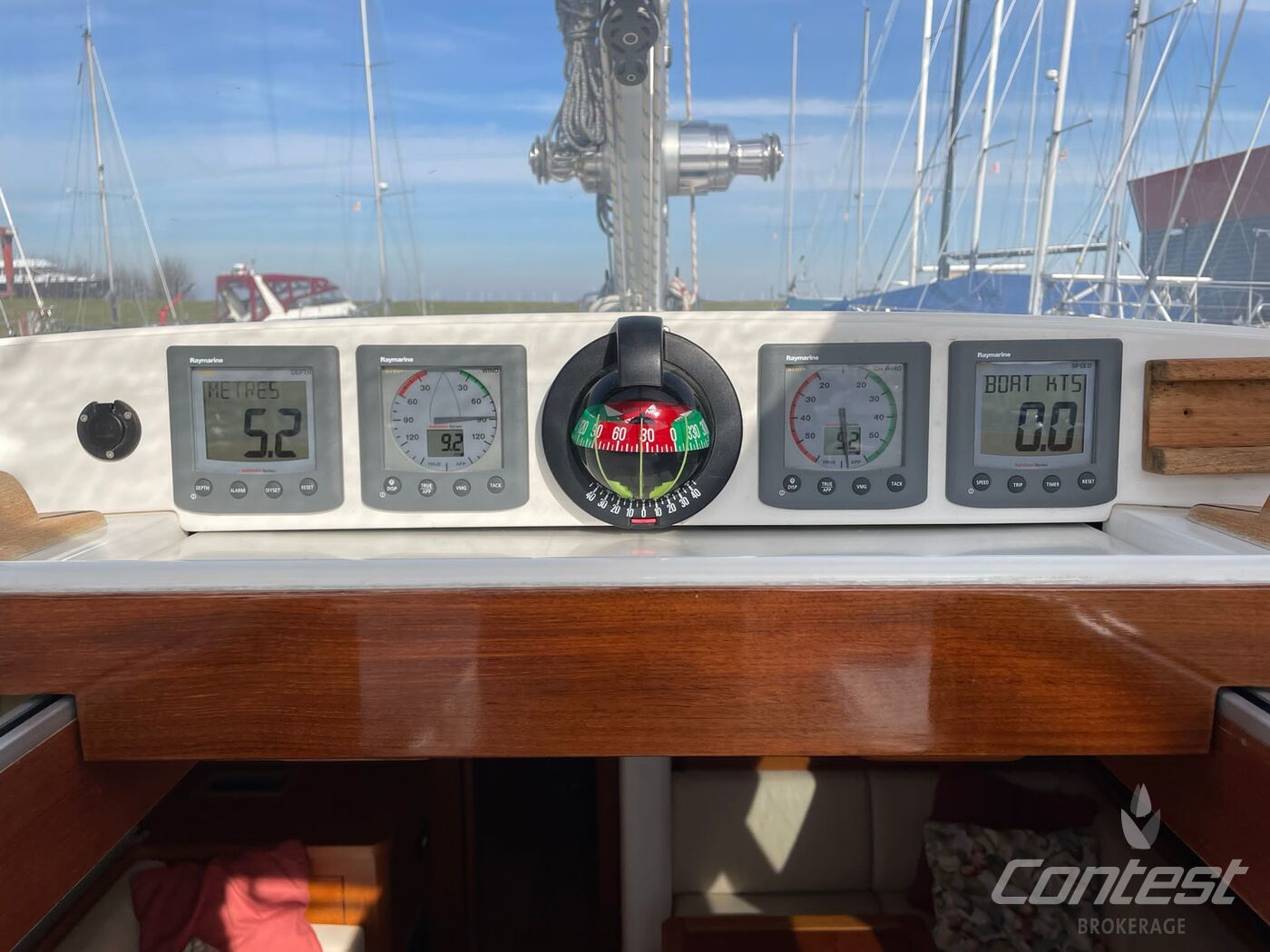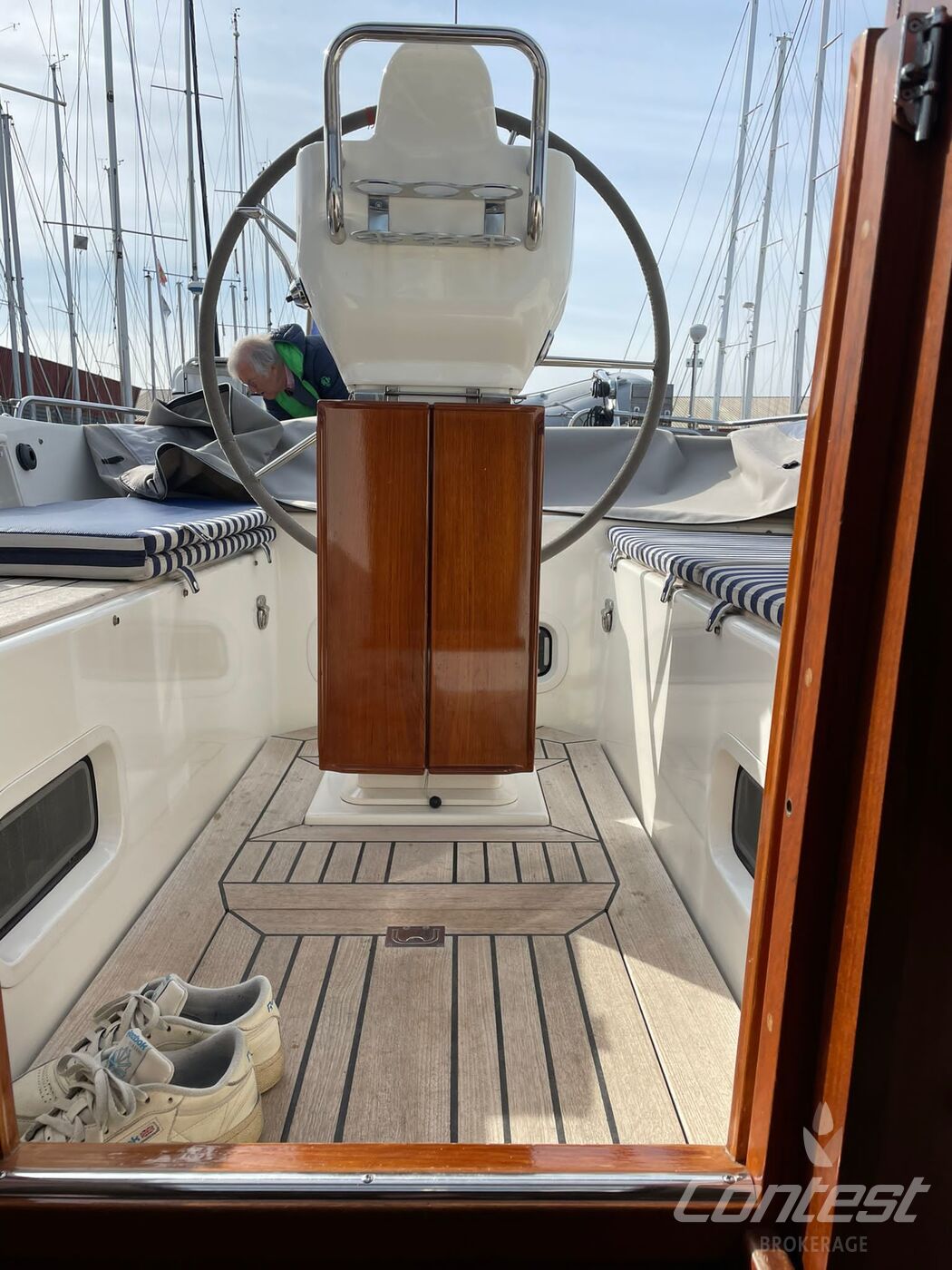 A rare opportunity to acquire a very well kept Contest 45CS. She is lightly used with only 7.450 miles on her log, approx 1.100 hours on the engine and her generator run around 77 hours. Her spacious interior by Birgit Schnaase makes it a joy to stay on board, her stiff, vacuum infused built hull secures the ultimate feeling of safety and the design of Georg Nissen maks sure you have a powerful yacht with comfortable behavior at sea. Her equipment list is almost endless with i.e. hydraulic in-mast furling, 4 electric winches, generator, airconditioning, extensive navigation package, fixed windscreen, davits and so on. We are happy to send you the extensive specs of this turn key yacht! Please note this brochure is preliminary & items on pictures van be excluded from the sale.