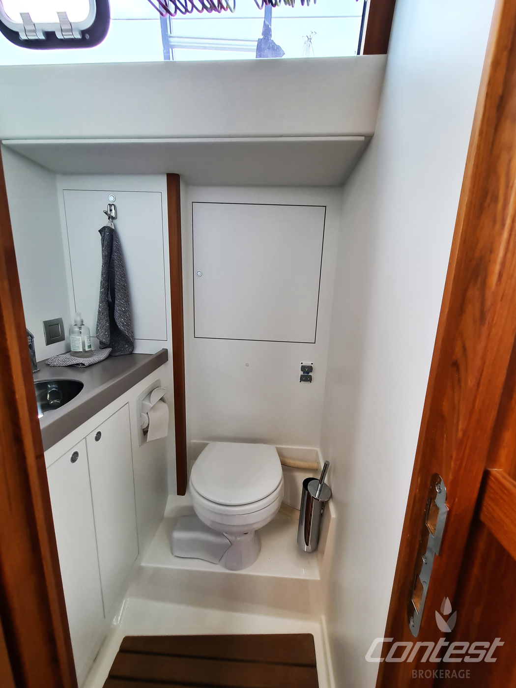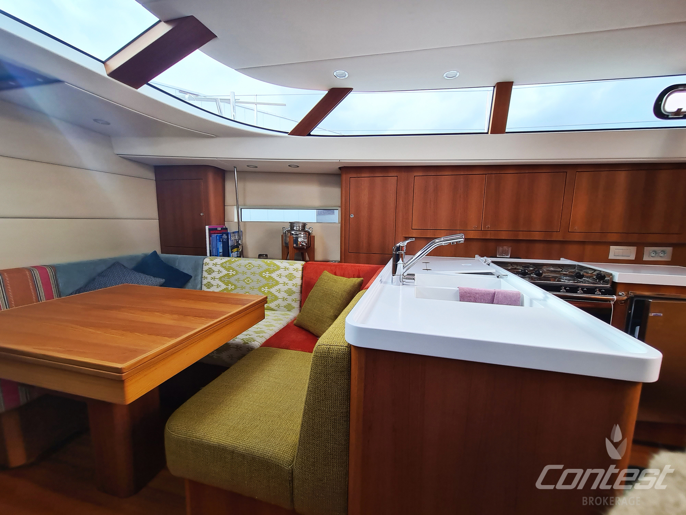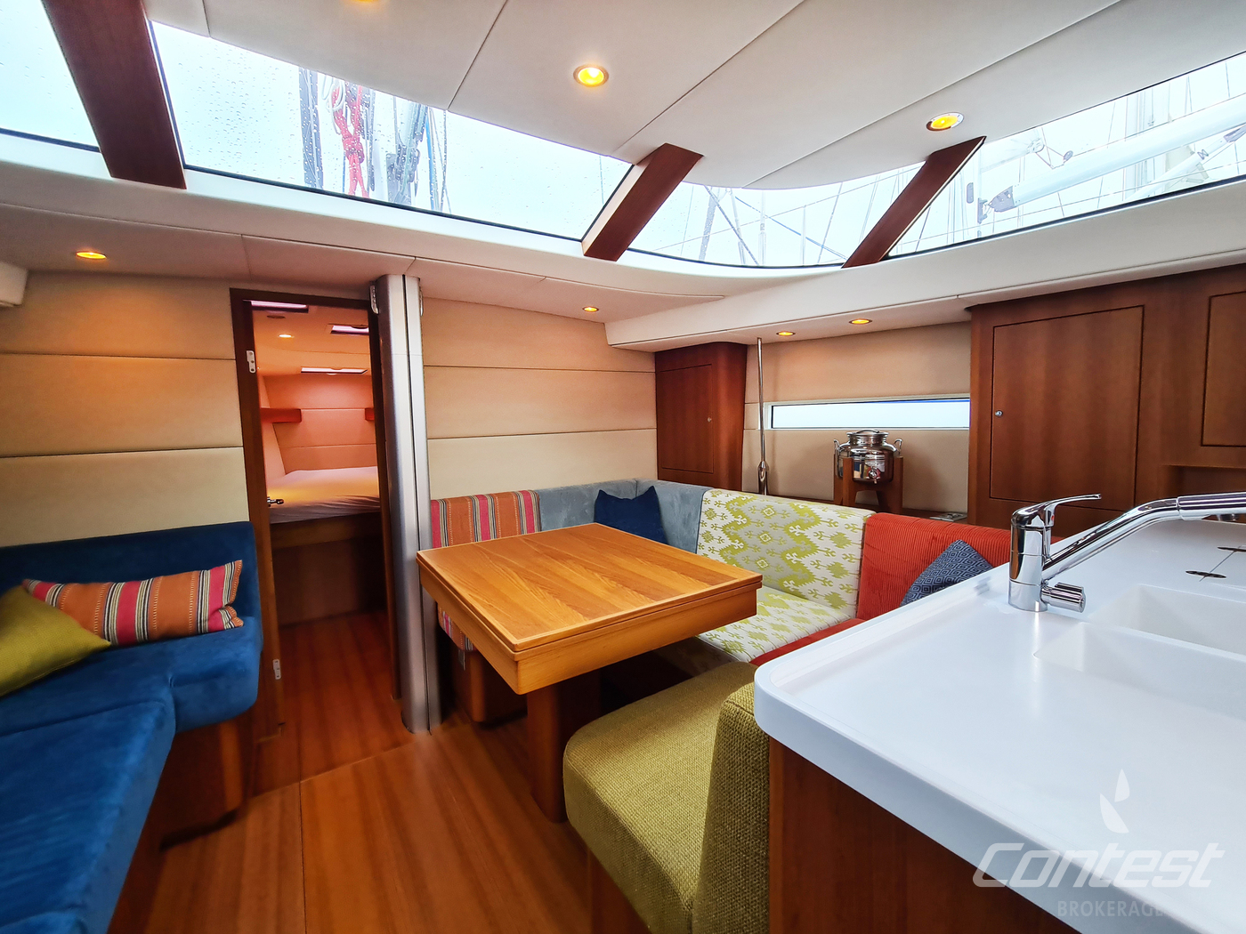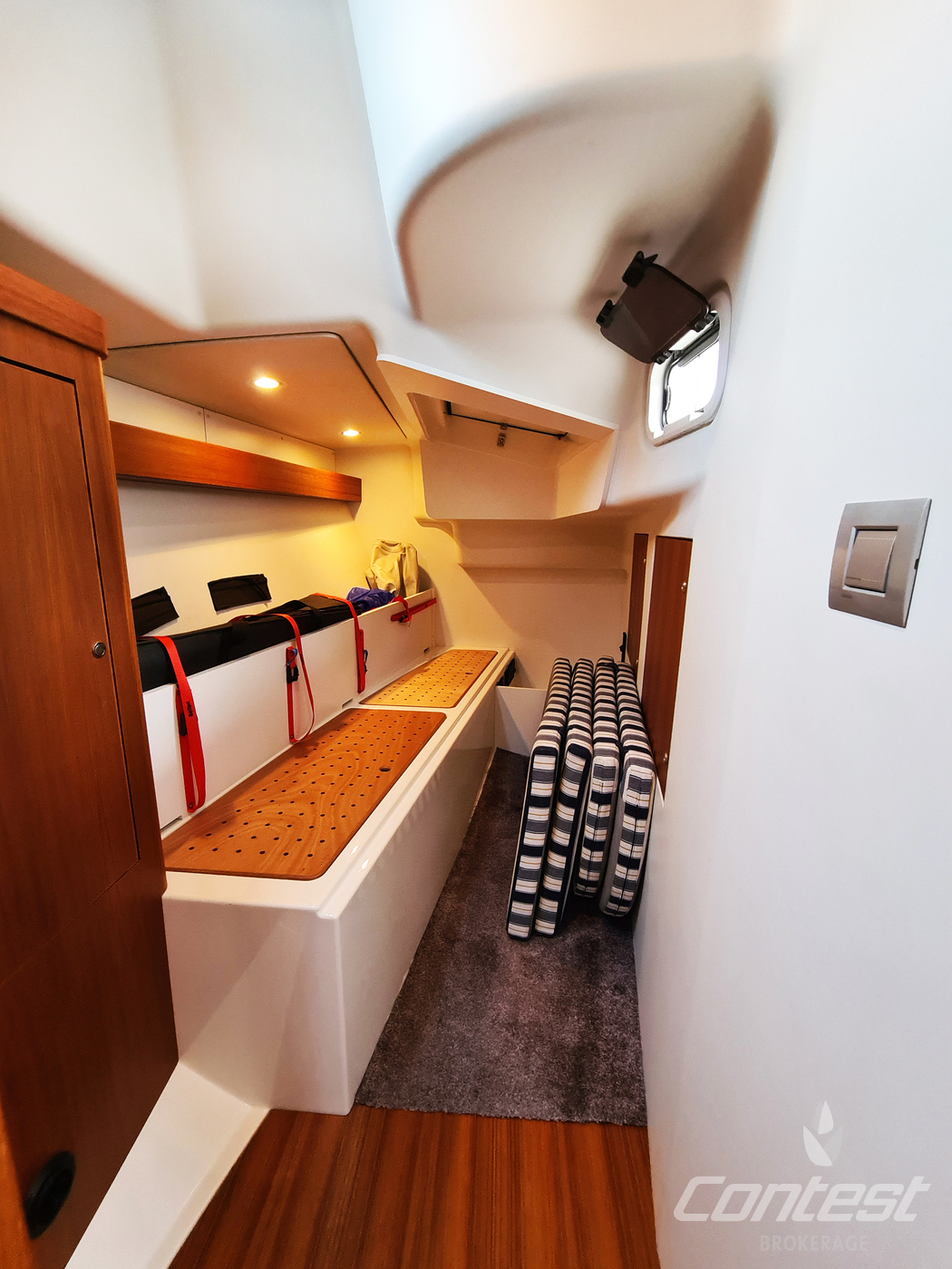 Winning the "Yacht of the year", award her versatility, quality and speed are internationally recognised. She is sailed easily due to her electric winches (all!) for hoisting / reefing the mainsail and her electric furling genoa, this will ensure easy handling under all circumstances. Important features are double laminated panoramic window, handcrafted teak joinery, huge galley with large fridges, generator, heating, watermaker, washing machine and folding transom / bathing platform. The twice winner of the Contest Cup in mallorca is now availble for sail, uh sale! Come over to our Contest brokerage sales marina in Medemblik, The Netherlands. note this is a preliminary brochure!
