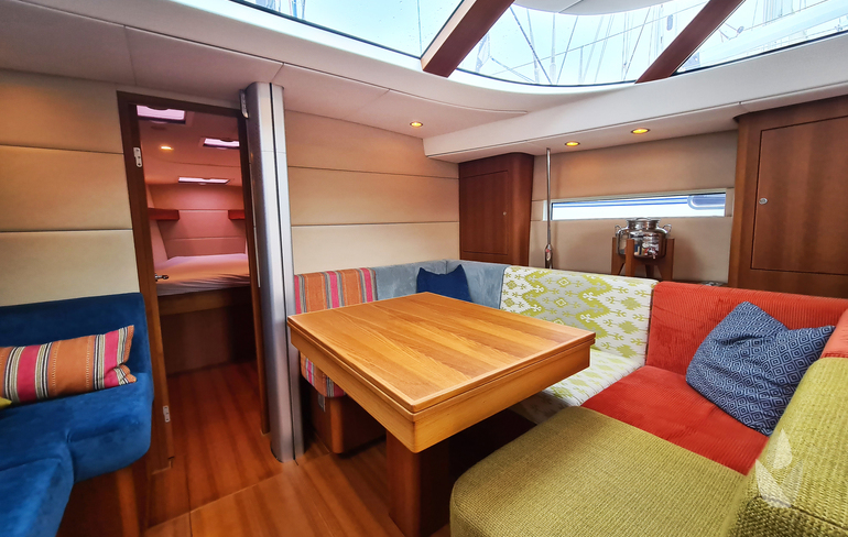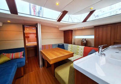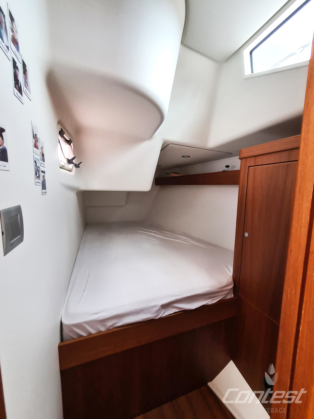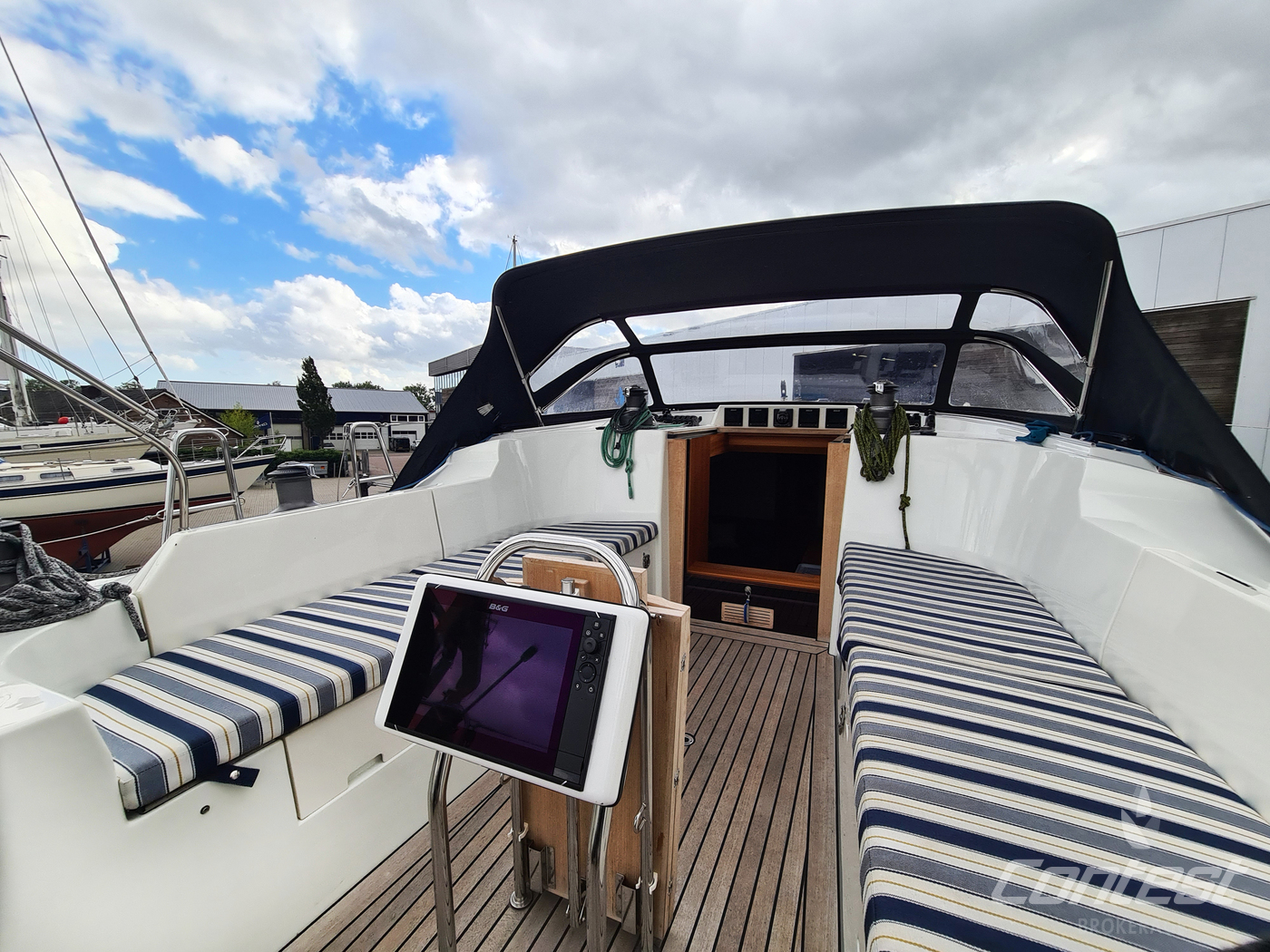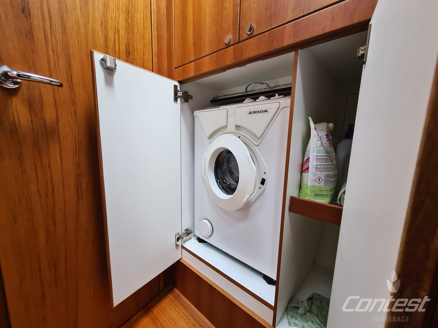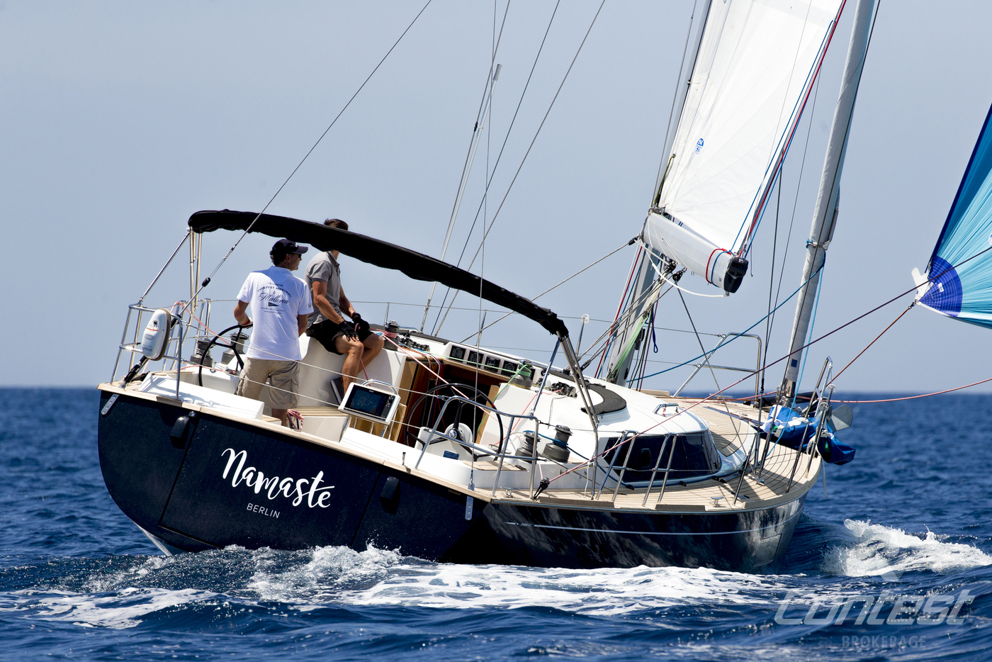Winning the "Yacht of the year", award her versatility, quality and speed are internationally recognised. She is sailed easily due to her electric winches (all!) for hoisting / reefing the mainsail and her electric furling genoa, this will ensure easy handling under all circumstances. Important features are double laminated panoramic window, handcrafted teak joinery, huge galley with large fridges, generator, heating, watermaker, washing machine and folding transom / bathing platform. The twice winner of the Contest Cup in mallorca is now availble for sail, uh sale! Come over to our Contest brokerage sales marina in Medemblik, The Netherlands. note this is a preliminary brochure!