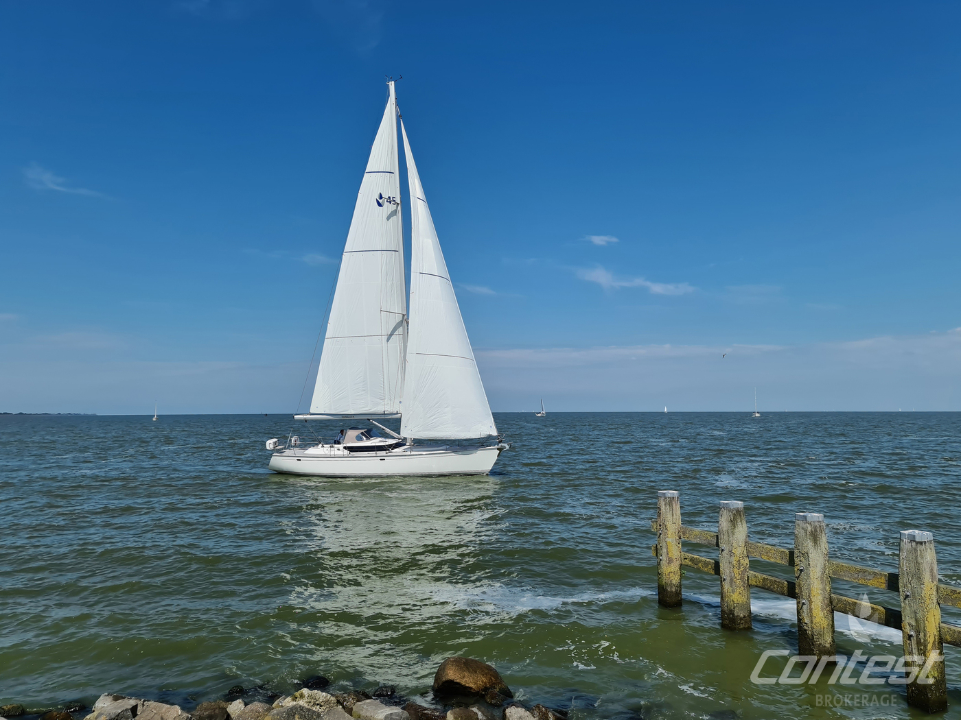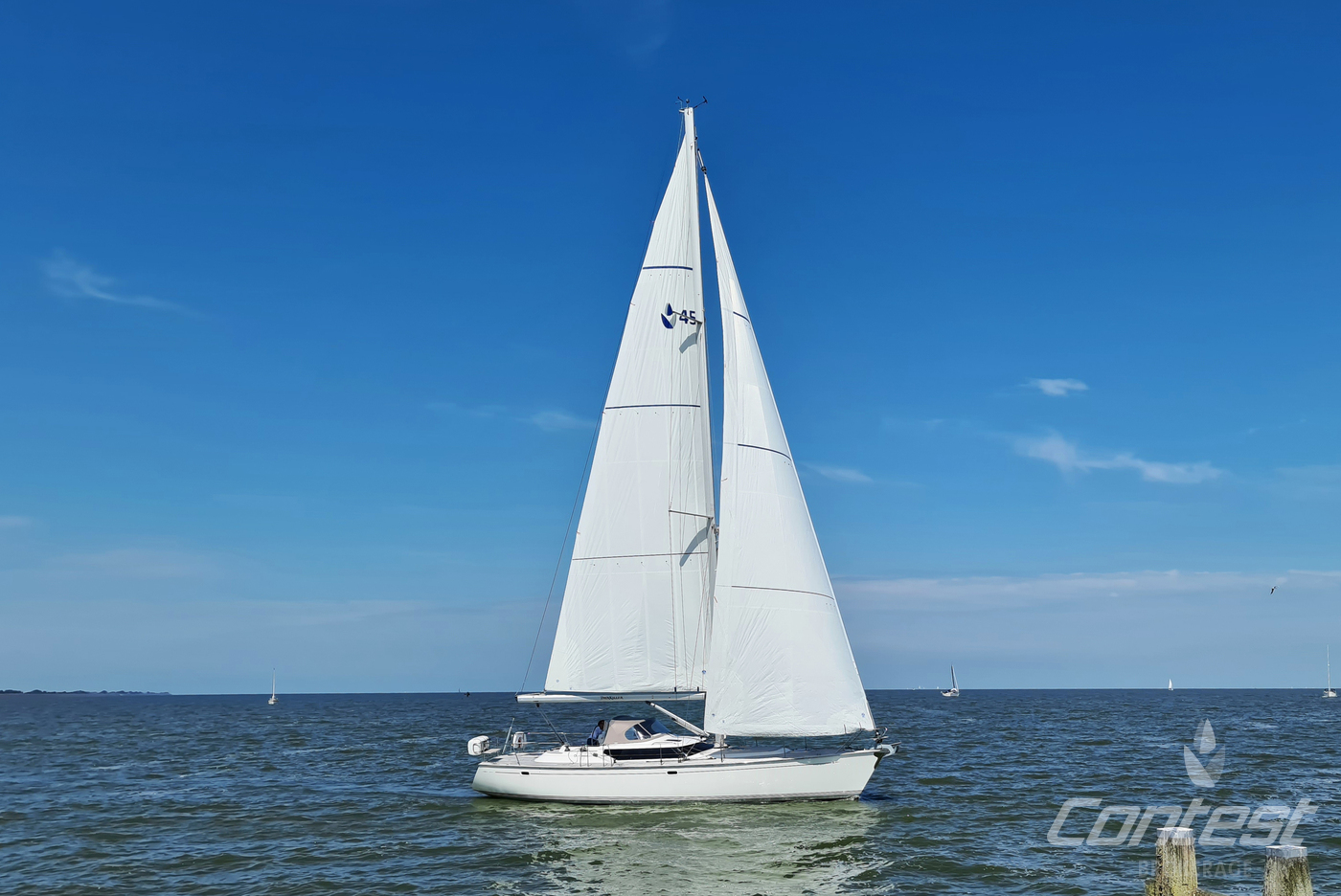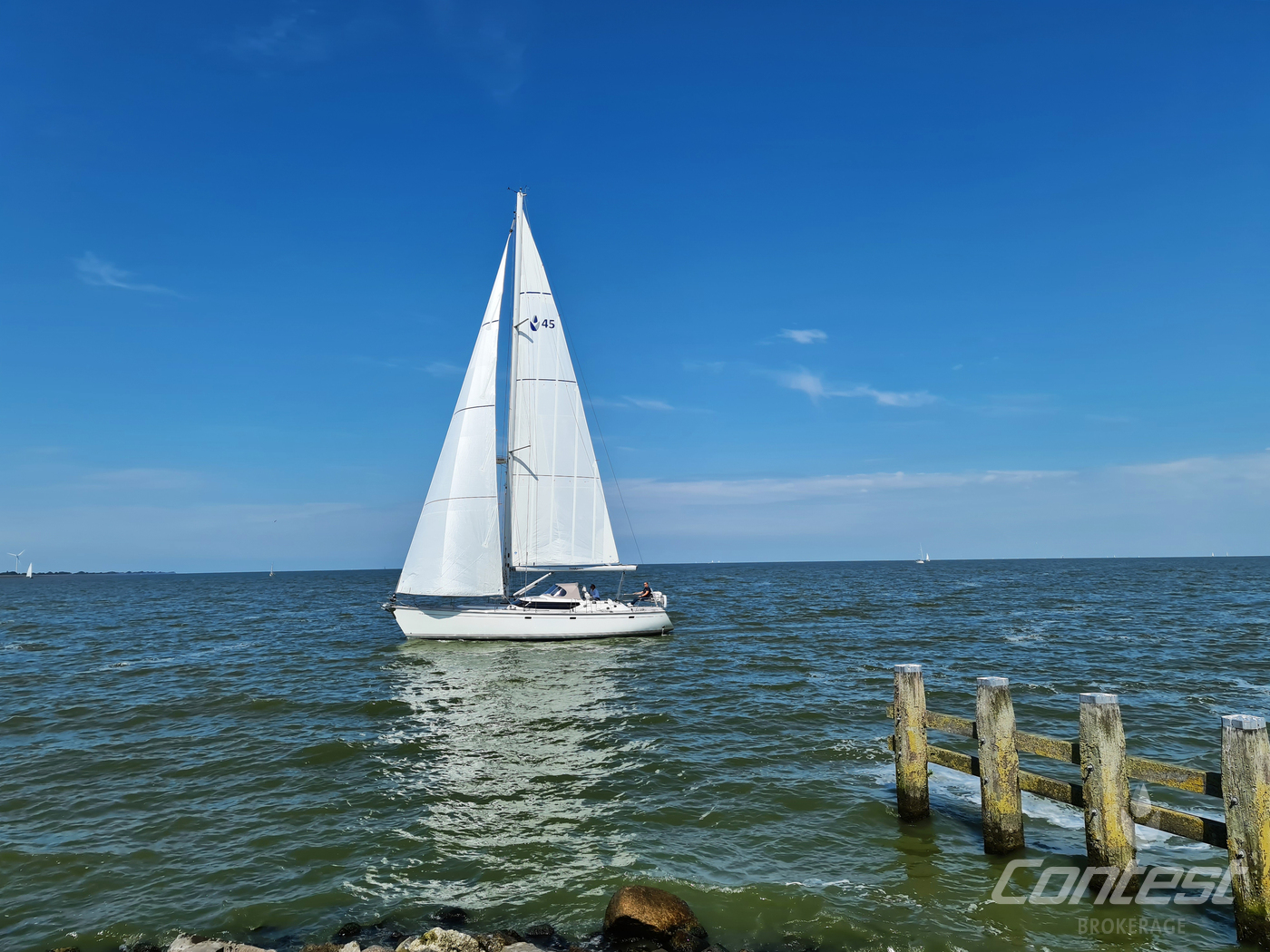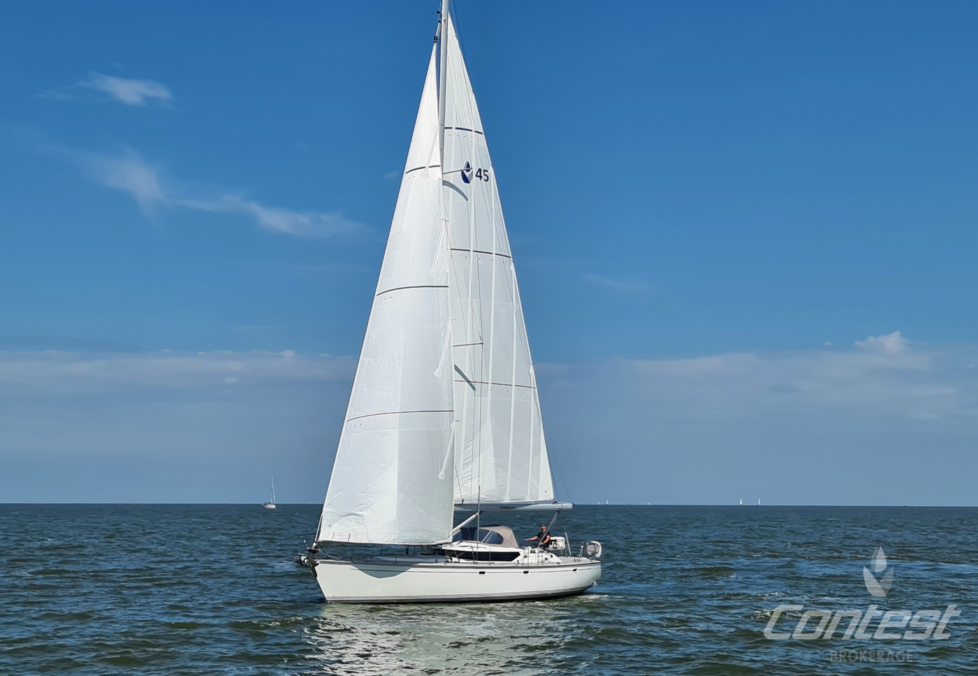 A rare opportunity to acquire a very well kept Contest 45CS. She is lightly used by her first & current owner. Her spacious interior by Birgit Schnaase makes it a joy to stay on board, her stiff, vacuum infused built hull secures the ultimate feeling of safety and the design of Georg Nissen maks sure you have a powerful yacht with comfortable behavior at sea. Her equipment list is almost endless with i.e. an almost new set of sails, in-mast furling main sail, 3 electric winches, extensive navigation package and so on. We are happy to send you the extensive specs of this turn key yacht! Please note this brochure is preliminary & items on pictures can be excluded from the sale.