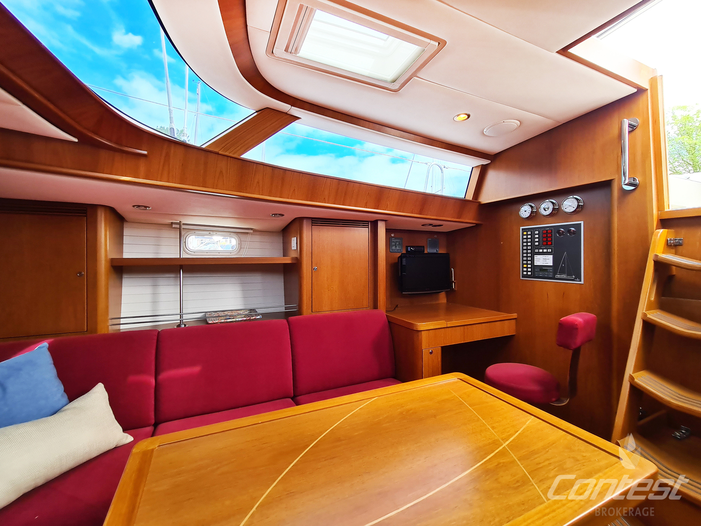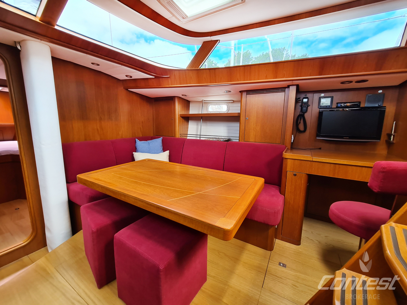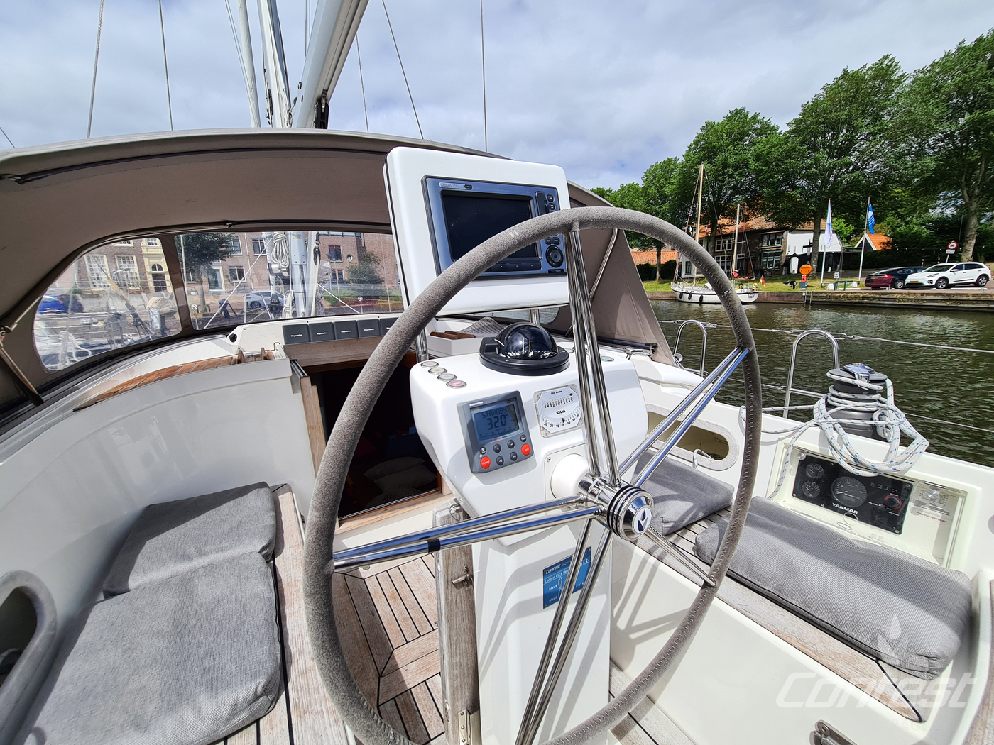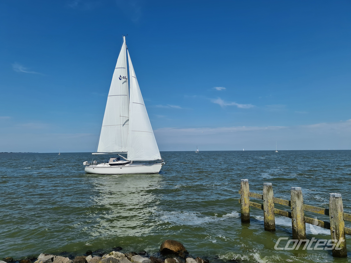 A rare opportunity to acquire a very well kept Contest 45CS. She is lightly used by her first & current owner. Her spacious interior by Birgit Schnaase makes it a joy to stay on board, her stiff, vacuum infused built hull secures the ultimate feeling of safety and the design of Georg Nissen maks sure you have a powerful yacht with comfortable behavior at sea. Her equipment list is almost endless with i.e. an almost new set of sails, in-mast furling main sail, 3 electric winches, extensive navigation package and so on. We are happy to send you the extensive specs of this turn key yacht! Please note this brochure is preliminary & items on pictures can be excluded from the sale.