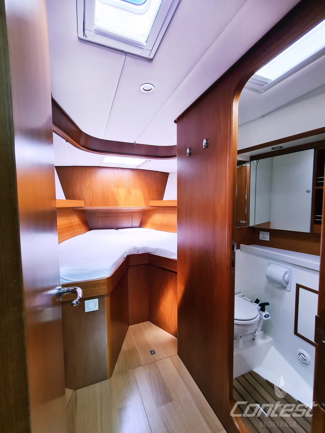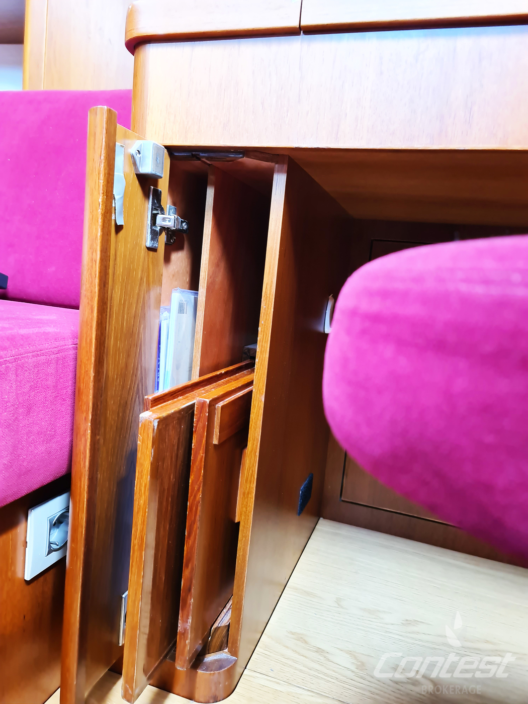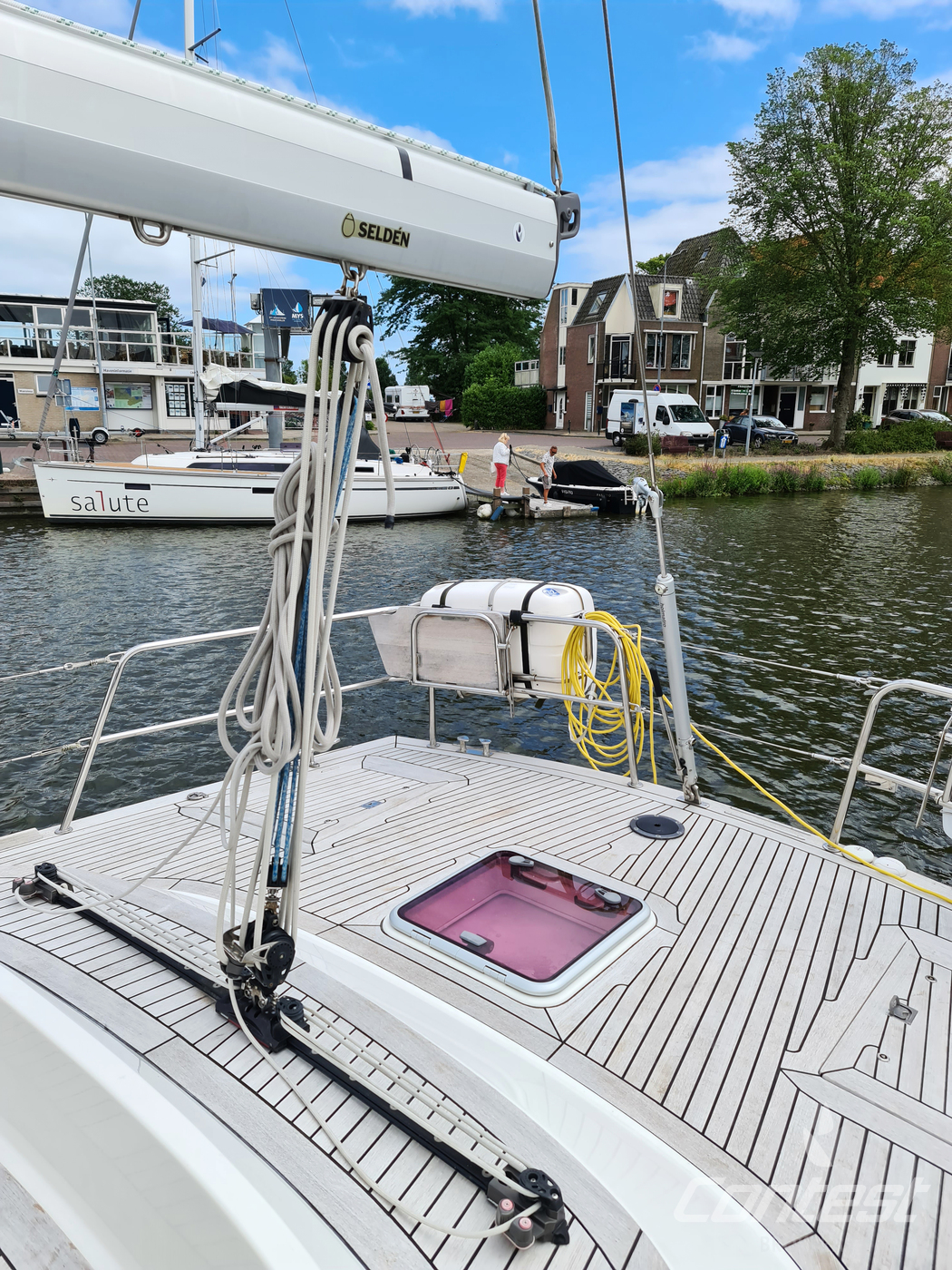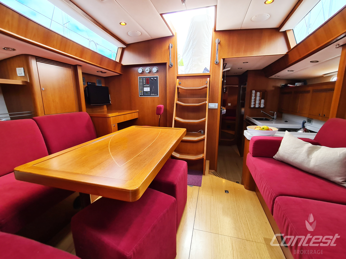 A rare opportunity to acquire a very well kept Contest 45CS. She is lightly used by her first & current owner. Her spacious interior by Birgit Schnaase makes it a joy to stay on board, her stiff, vacuum infused built hull secures the ultimate feeling of safety and the design of Georg Nissen maks sure you have a powerful yacht with comfortable behavior at sea. Her equipment list is almost endless with i.e. an almost new set of sails, in-mast furling main sail, 3 electric winches, extensive navigation package and so on. We are happy to send you the extensive specs of this turn key yacht! Please note this brochure is preliminary & items on pictures can be excluded from the sale.