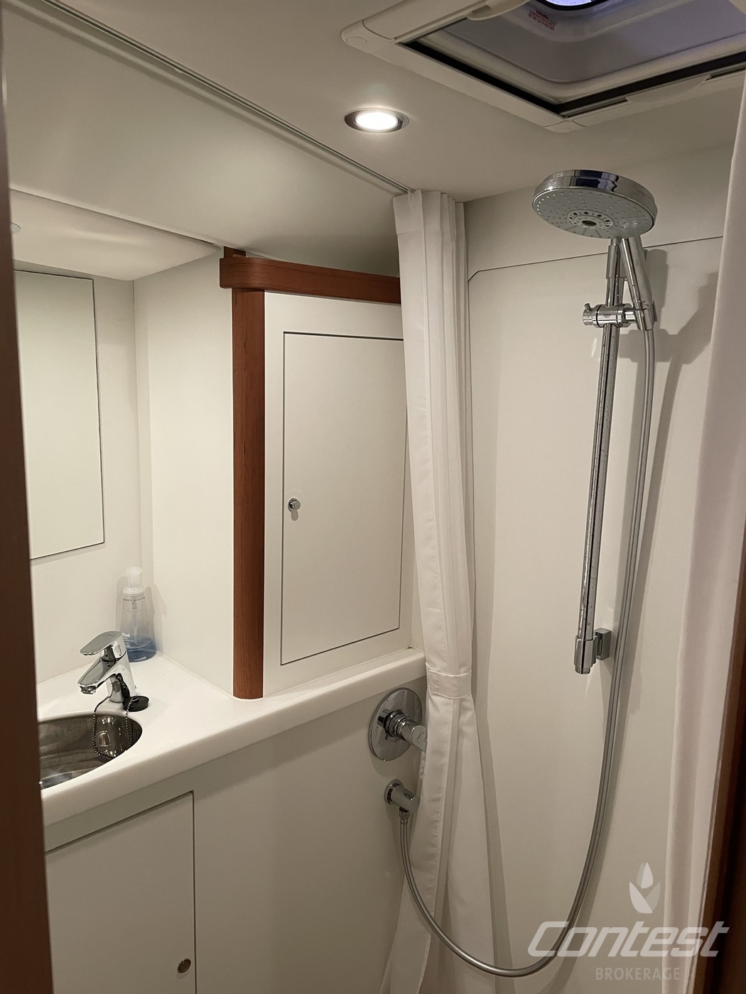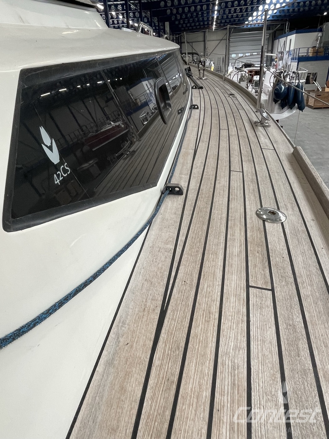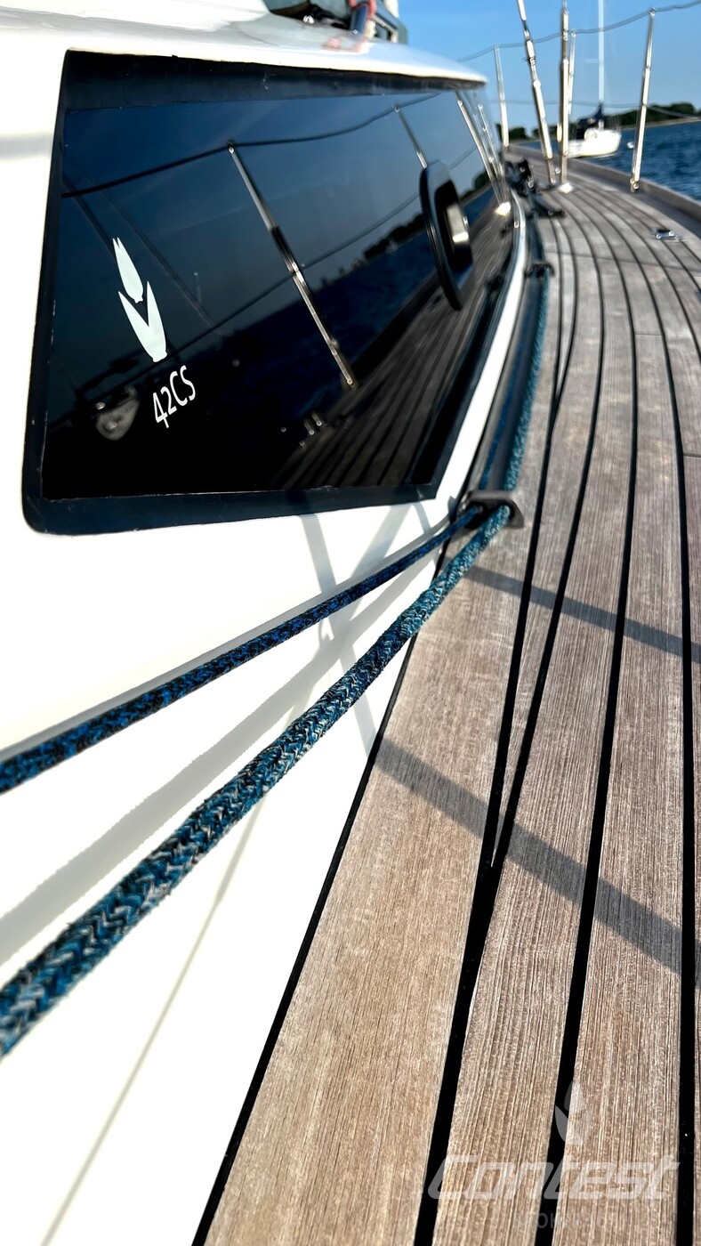 Instantly good looking? and with so much more to her than first meets the eye. It?s not just the clever detailing in design, build and plan. The aft cockpit Contest 42CS permits owners a virtual custom build? simply unique at this size. "Tyger" is built for speed and luxury cruising at the same time. Her increased performance comes due to her carbon mast, the 3Di sails and a powerfull gennaker, which is like a secret weapon. Her easy handling is made possible by her in-boom furling, elec. winches and electric head sails furler. Tyger has 3 cabins, 6 beds (extra 3 in saloon) and 2 heads. She is the "short handed version" with the central winch for the main sail sheet. The Contest 42CS is the "European Yacht of the Year" in Luxury Cruiser class of 2013/2014.