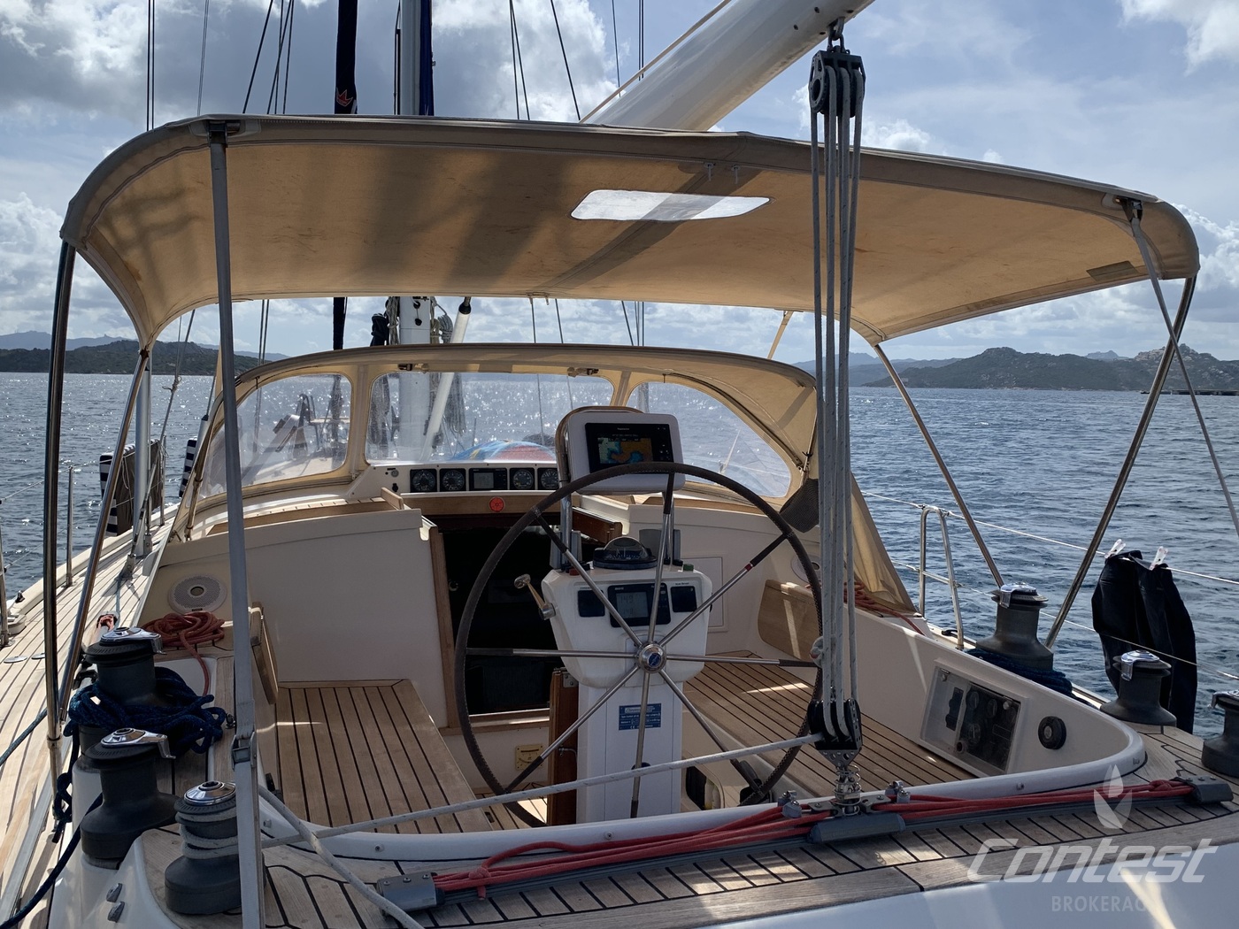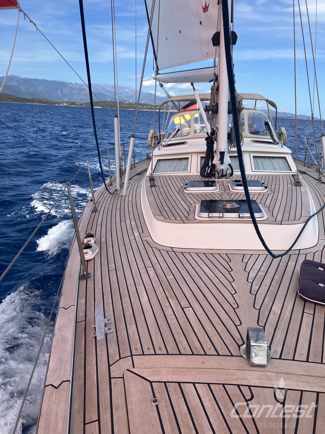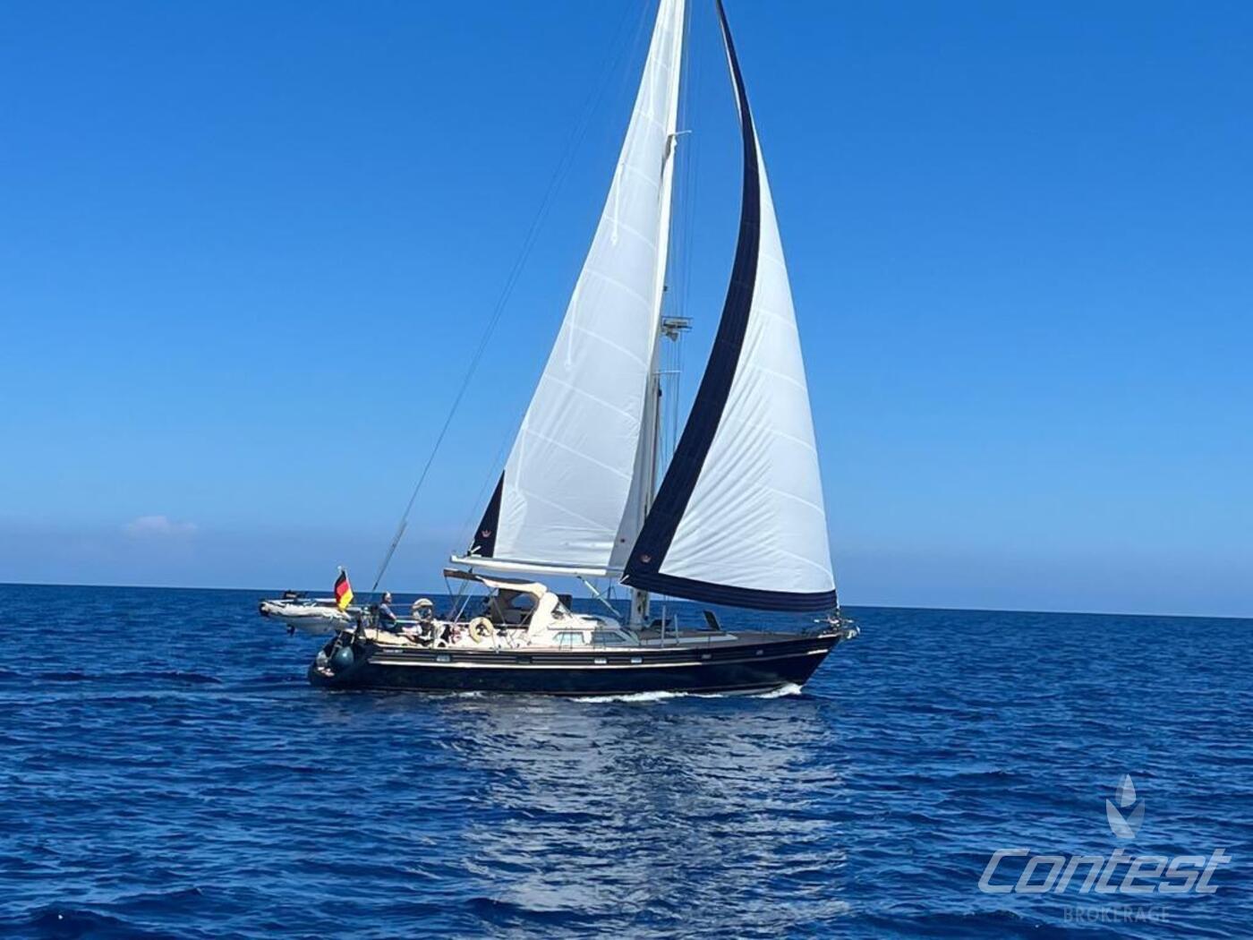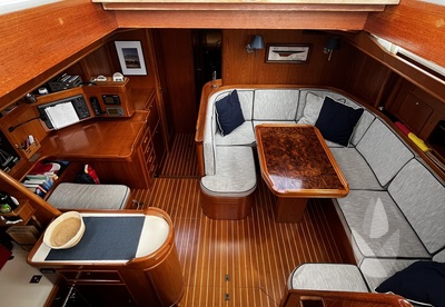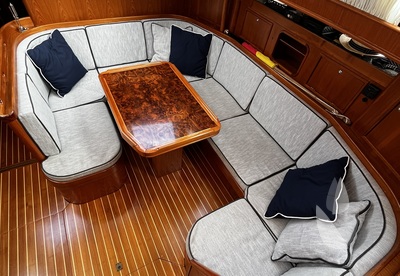 A luxurious and comfortable blue-water cruiser, excellently maintained, well equipped, and ready for her next owner. Her teak deck was fully overhauled and sanded in 2021, and with recent sails, she's in great condition. The classic teak interior offers 6 + 1 berths across three cabins, two heads, two showers, and a well-equipped galley with modern appliances, heating/AC, bow thruster, and a generator (2018).
