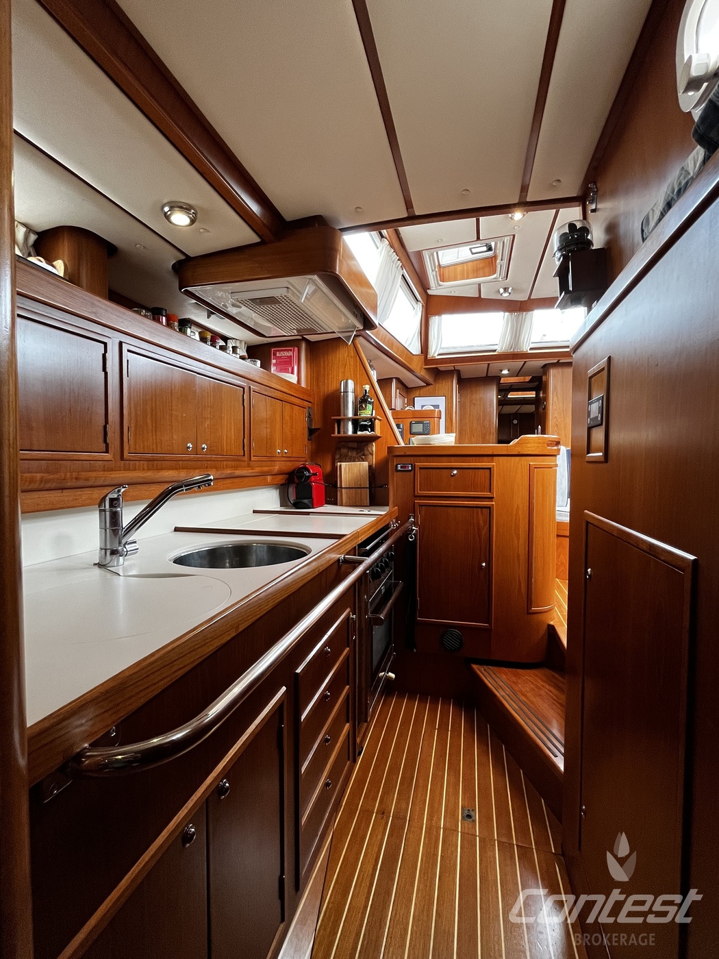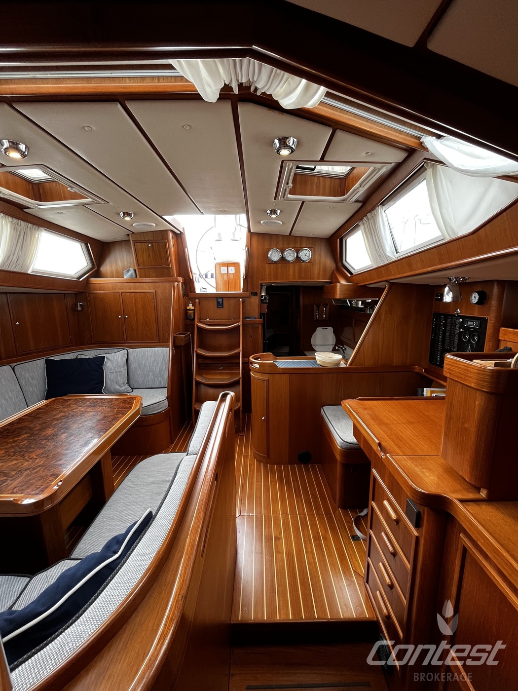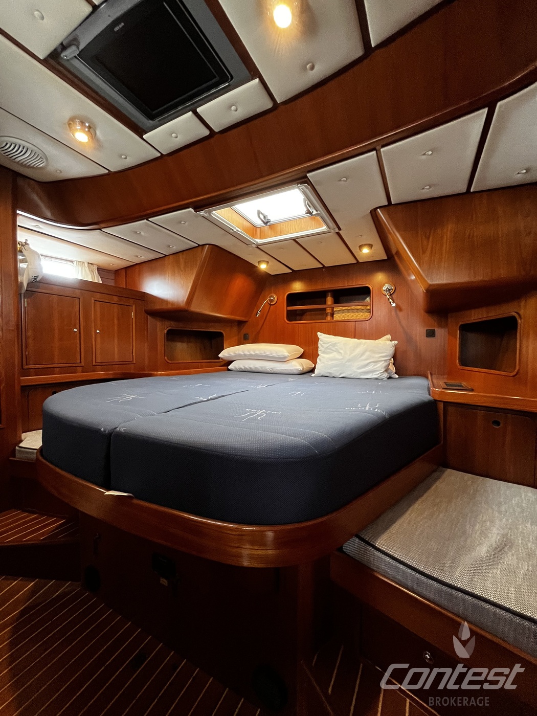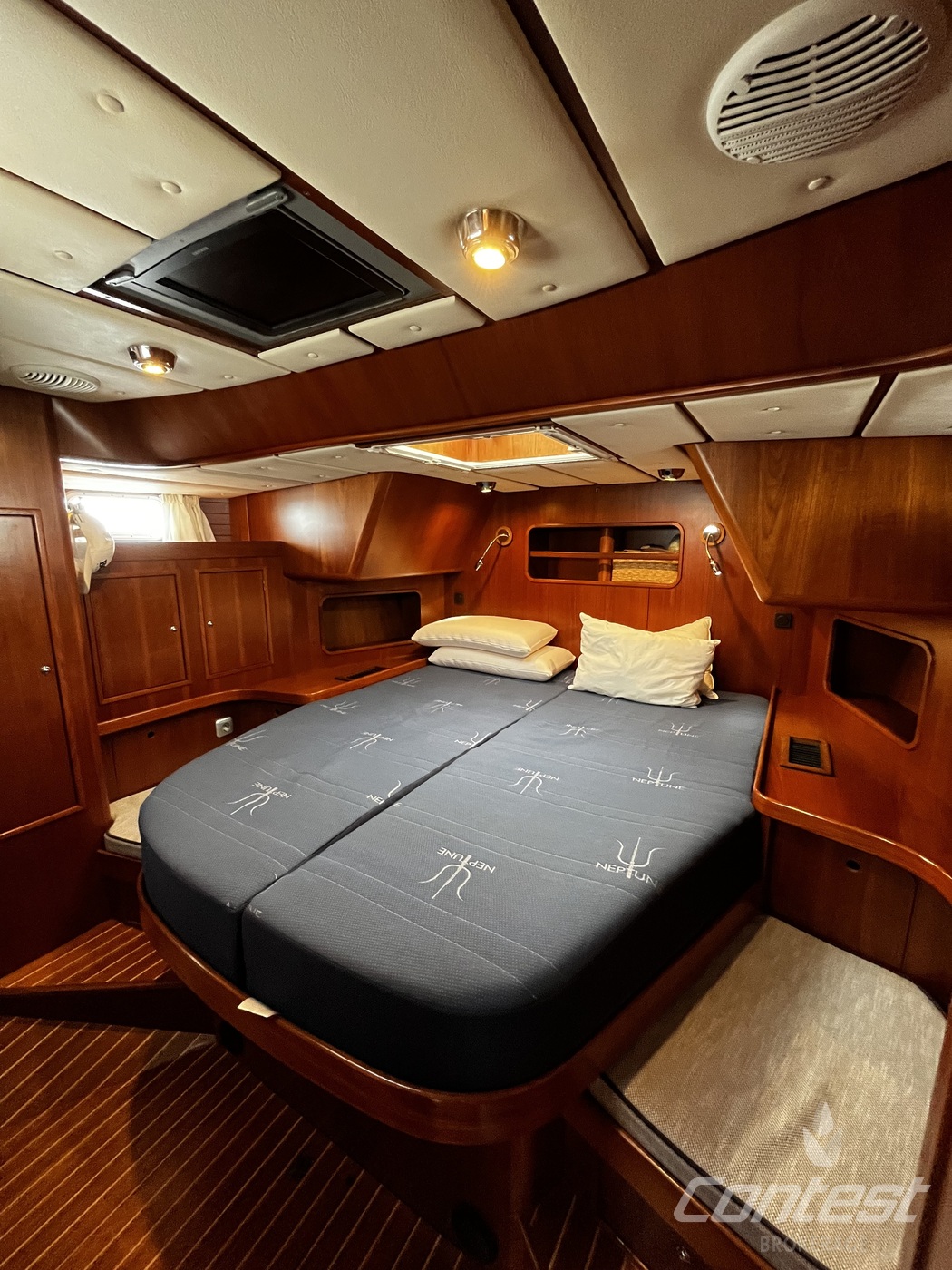 A luxurious and comfortable blue-water cruiser, excellently maintained, well equipped, and ready for her next owner. Her teak deck was fully overhauled and sanded in 2021, and with recent sails, she's in great condition. The classic teak interior offers 6 + 1 berths across three cabins, two heads, two showers, and a well-equipped galley with modern appliances, heating/AC, bow thruster, and a generator (2018).