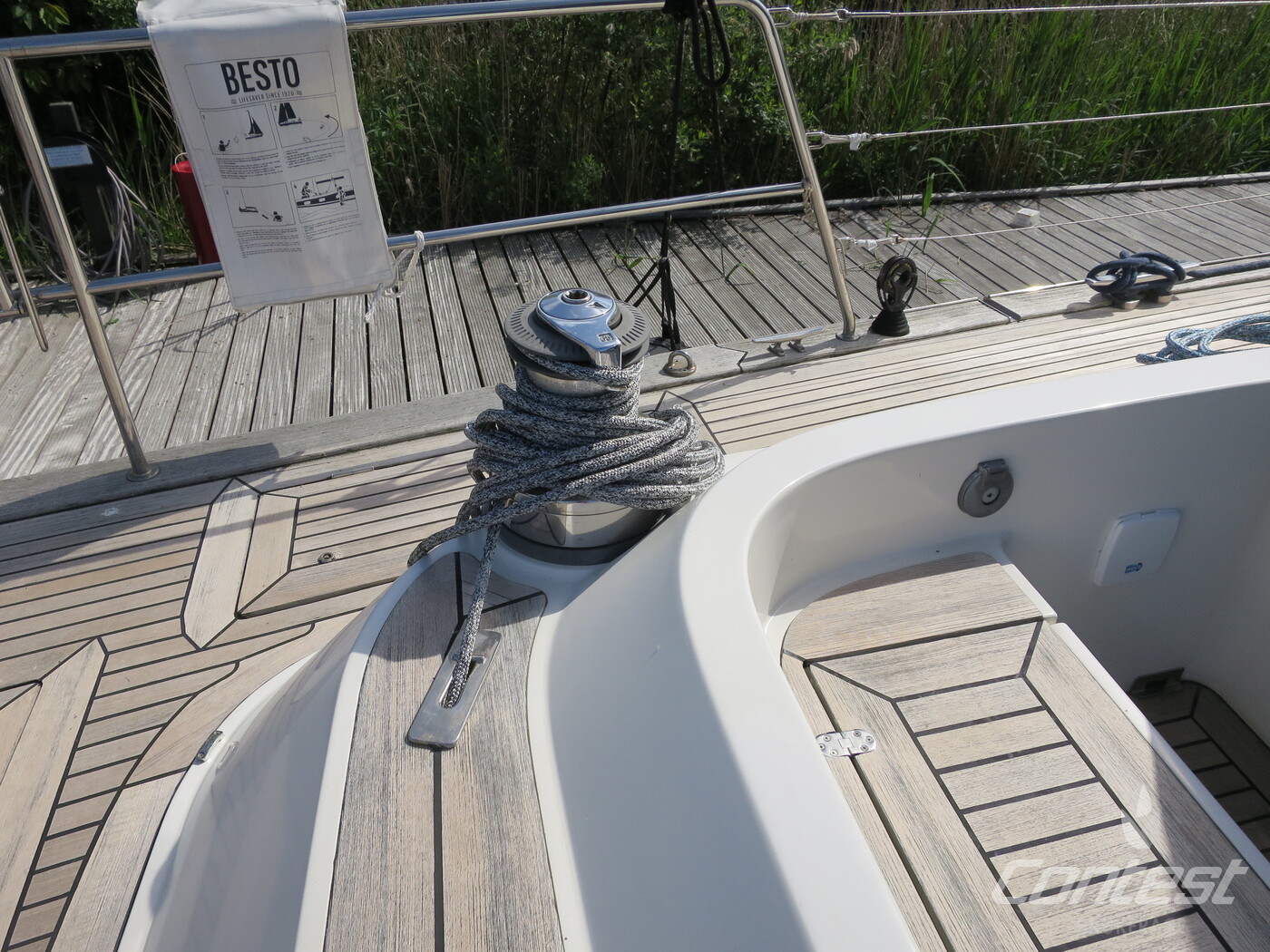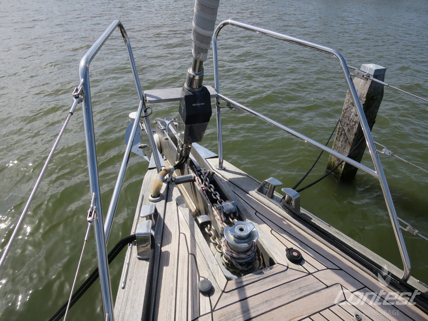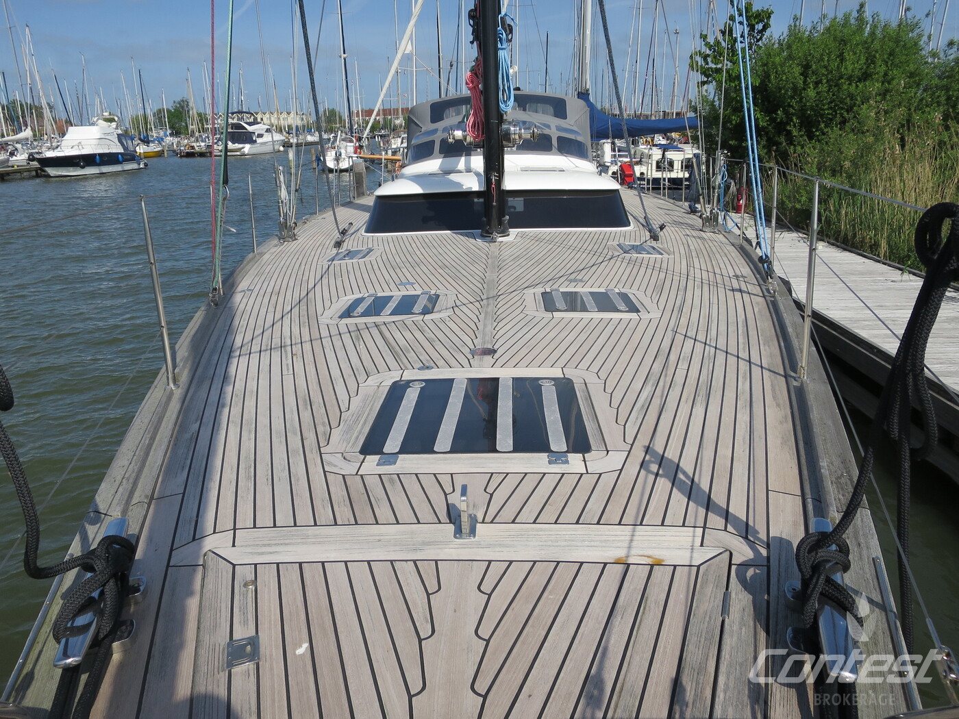 Deck constructionTeak (recaulked 2018) on GRP, with Rondal flush hatches.