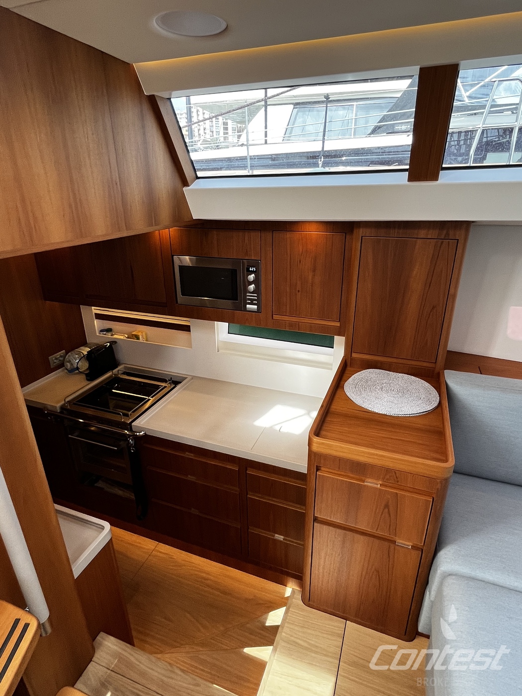 The strikingly good-looking Contest 55CS is a totally new, game-changing, go-anywhere, fifty-five-feet beauty. Aimed straight at the heart of the style conscious, couples-family-and-friends luxury cruising sector, the newly launched 17-metre Contest 55CS combines our long-standing reputation as top of the line bluewater performance builder with today's increasingly time limited lifestyle. Refined elegance with the same go anywhere, anytime potential. A true home from home, wherever and however. Across the yachting community, increasing emphasis is being placed on interior accommodation space and styling, sadly sometimes to the detriment of safety and sea sense. That's never the case at Contest Yachts, and in the Contest 55CS we have gone to new lengths to show just how aesthetics and practicality really can make perfect partners. How for different types of ownership a yacht can be equally set to circle the world and still offer the very best of comfort and space whether lazing at anchor or plugged into marina life. This way the Contest 55CS provides for ever more enjoyable time aboard. A safe, comfortable, speedy and easily run yacht with space and systems both above and below decks to enjoy life on the water to the fullâ?¦ and that's all what matters! Main picture is sistership.