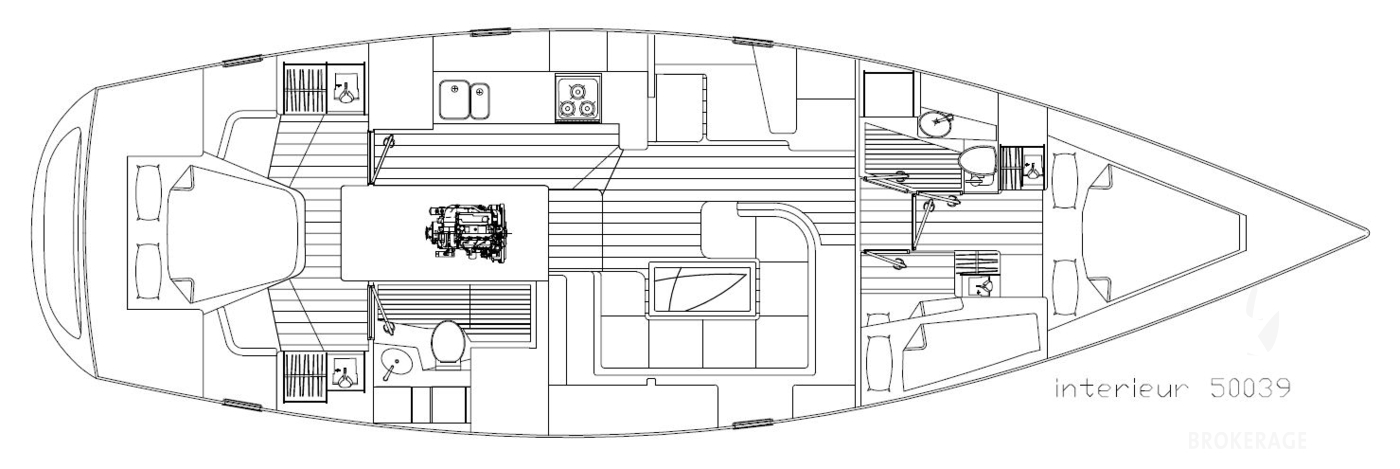 CabinsSpacious owners cabin aft with double centre line berth, double cabin forward, 2 bunk berths on sb