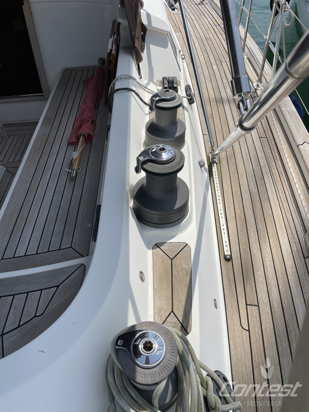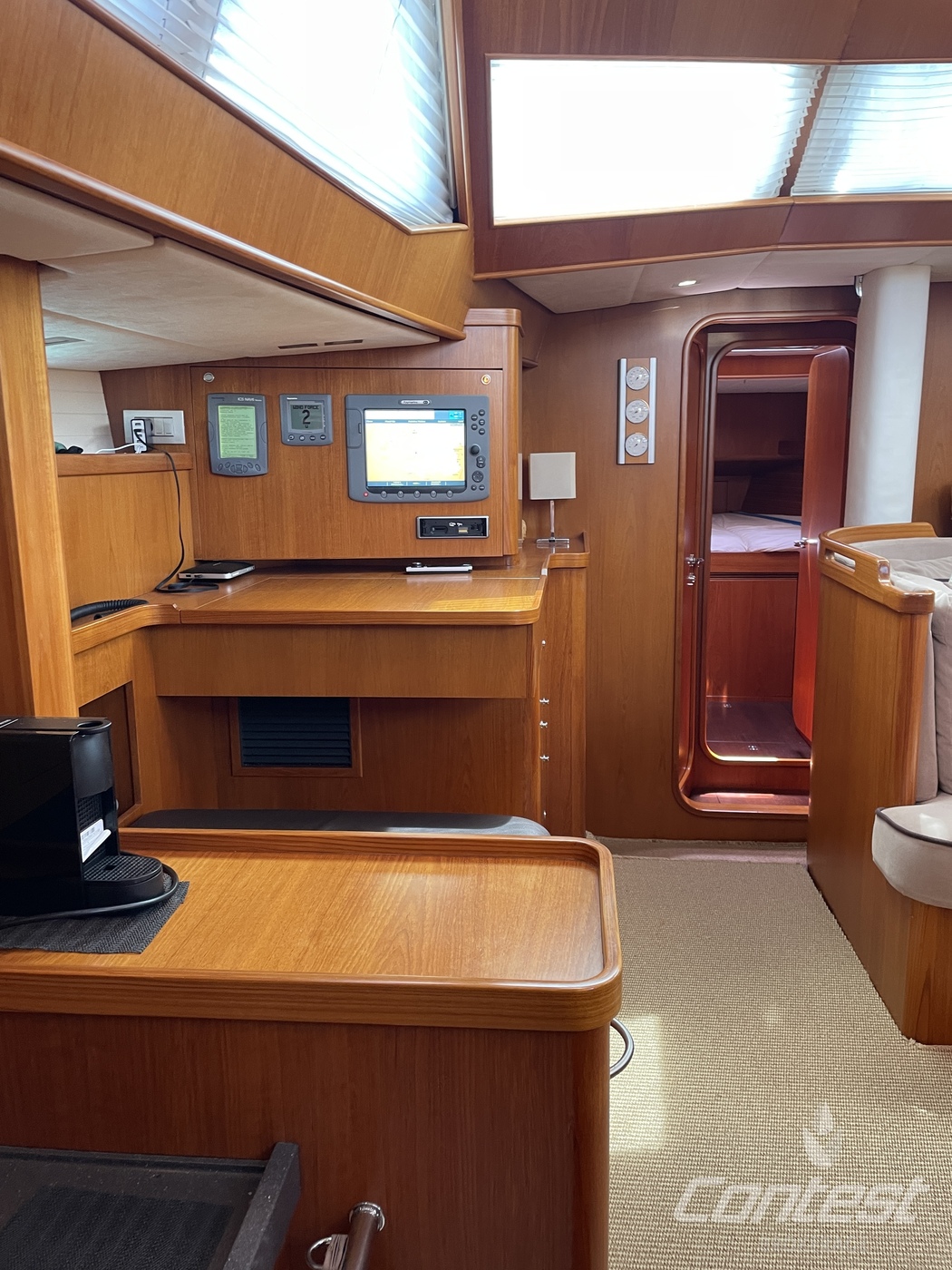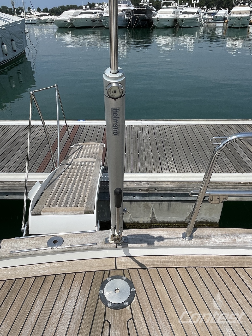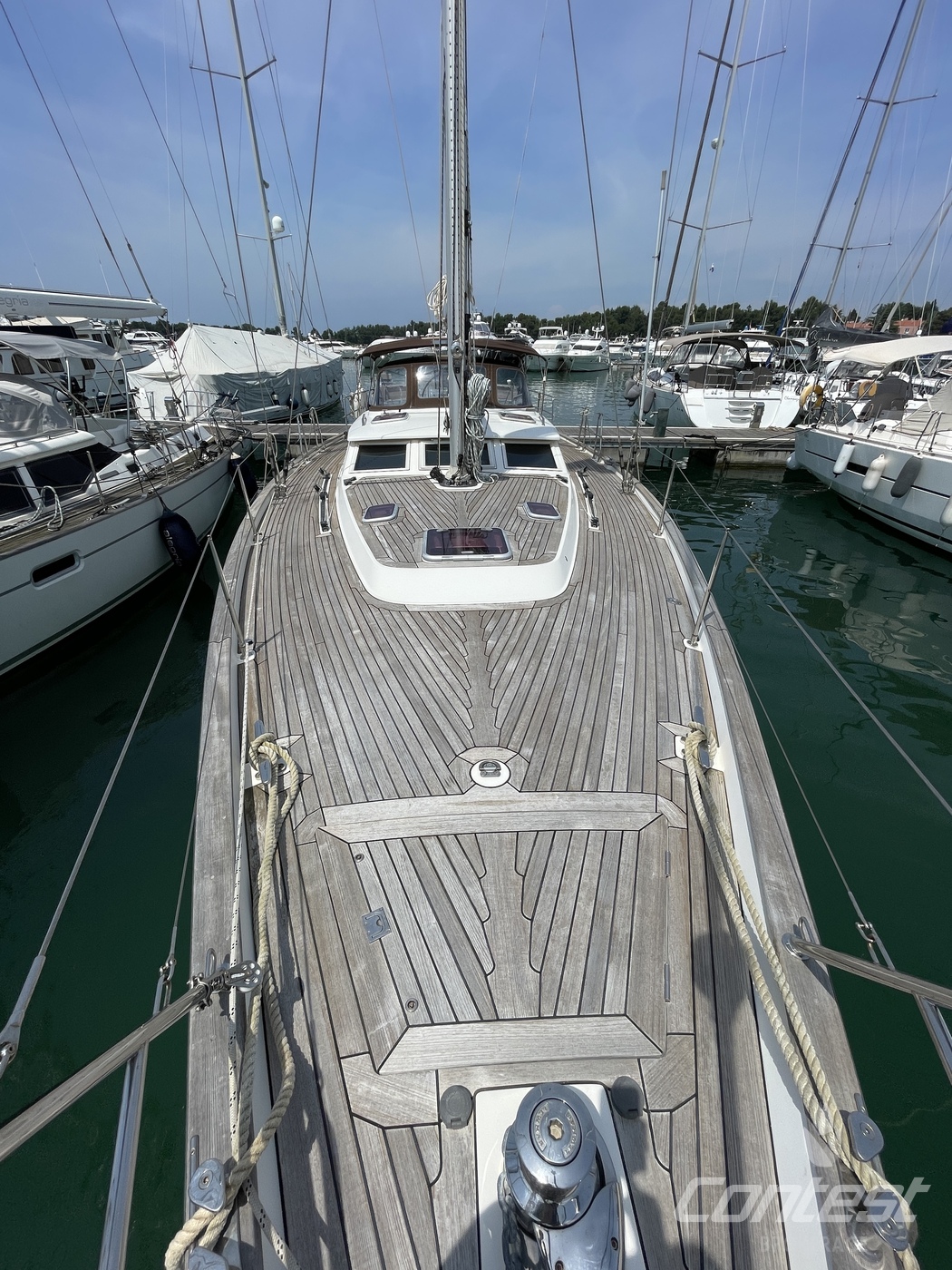 Designed by Georg Nissen her clean lines, simple rig with ample sail area and careful weight saving make the 50CS an extremely easy yacht for a couple to handle while guaranteeing high average speeds on long passages. Discover the Contest 50CS and you?ll be surprised by the beauty, sporty character and finesse of this true performance yacht. This 50CS has a white hull, which is a big advantage in the Med. She will give you all comfort on board due to her climate control, generator, etc. She has a relatively new mainsail (2022), a new genoa on its way, a code0, 5 electric winches, a hydraulic gangway and much more.