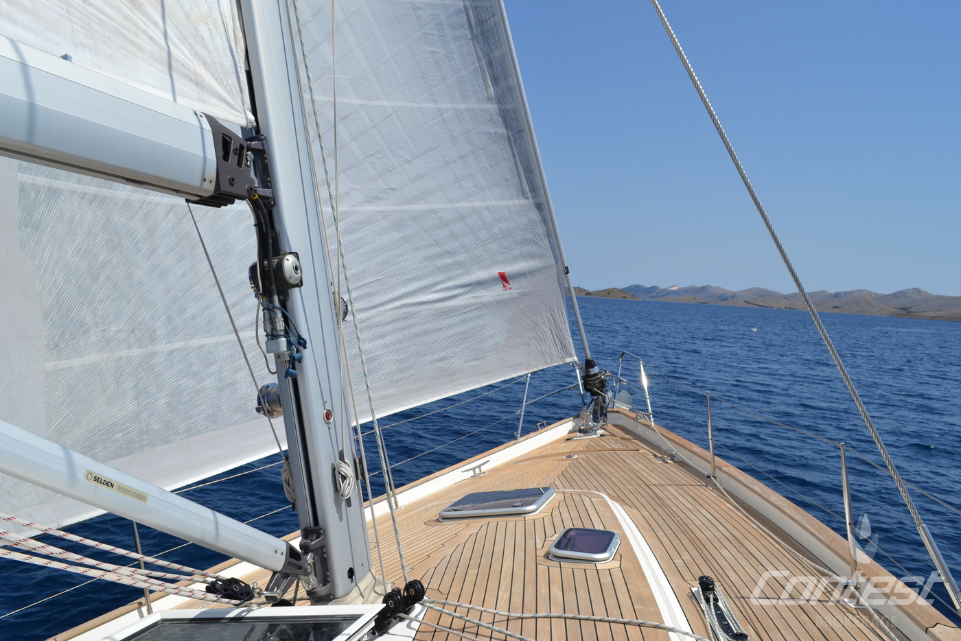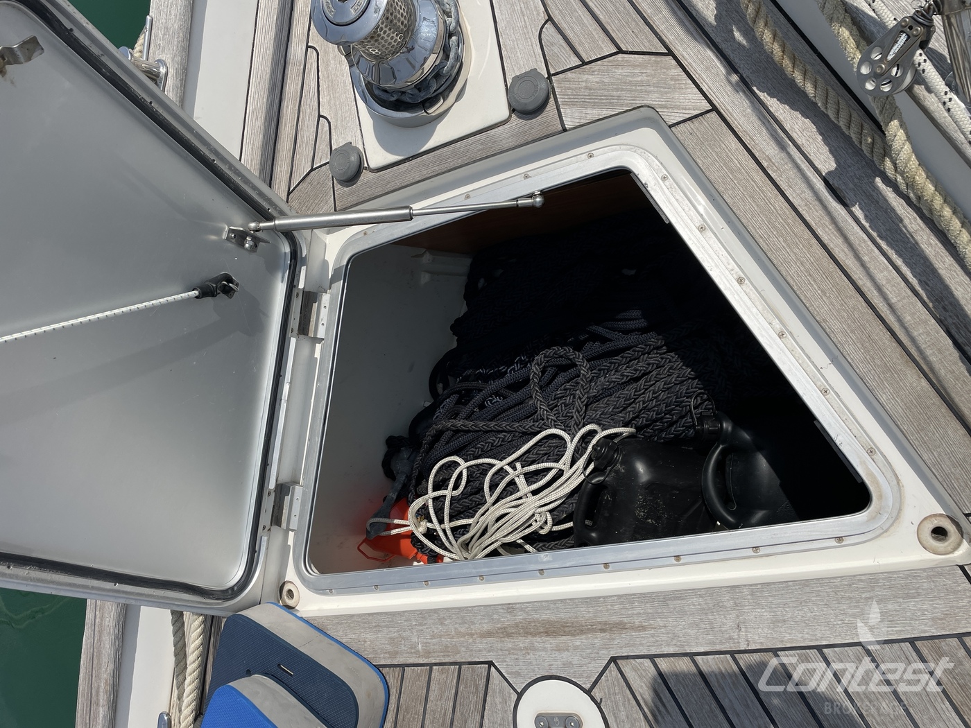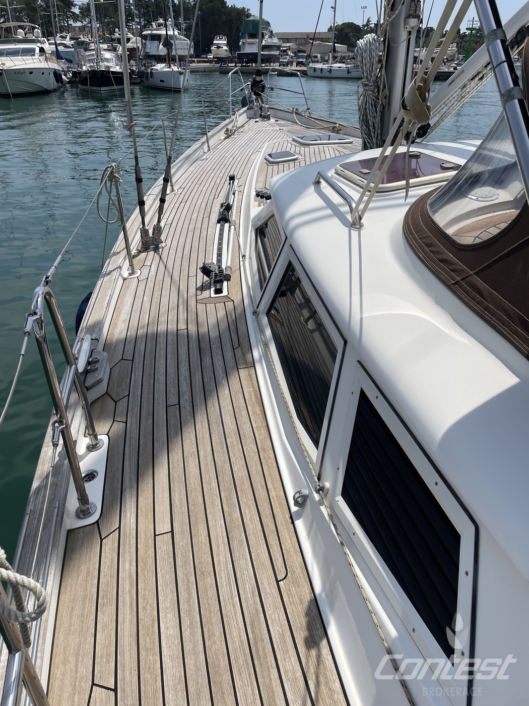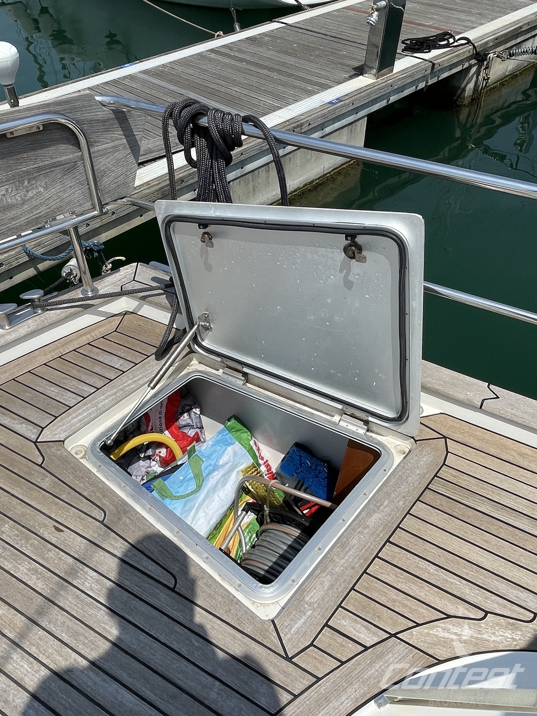 Designed by Georg Nissen her clean lines, simple rig with ample sail area and careful weight saving make the 50CS an extremely easy yacht for a couple to handle while guaranteeing high average speeds on long passages. Discover the Contest 50CS and you?ll be surprised by the beauty, sporty character and finesse of this true performance yacht. This 50CS has a white hull, which is a big advantage in the Med. She will give you all comfort on board due to her climate control, generator, etc. She has a relatively new mainsail (2022), a new genoa on its way, a code0, 5 electric winches, a hydraulic gangway and much more.