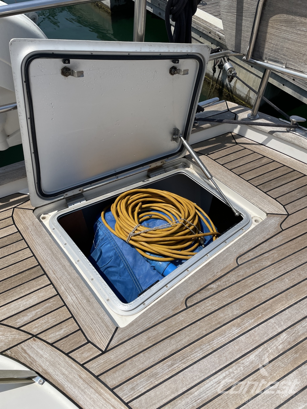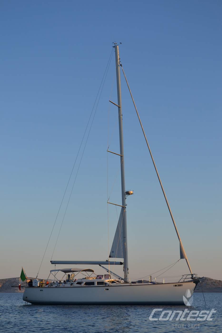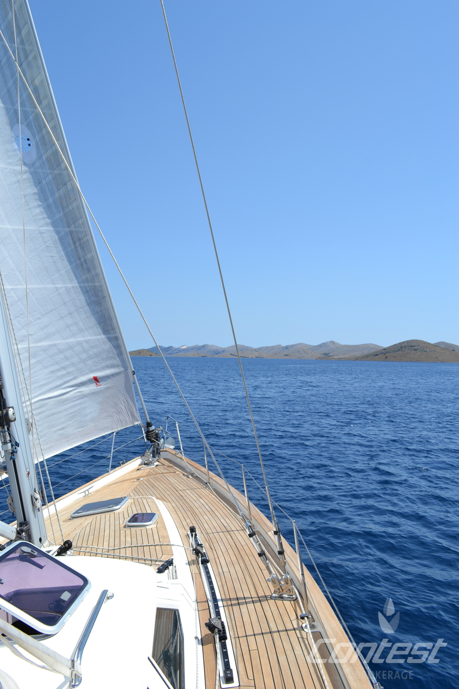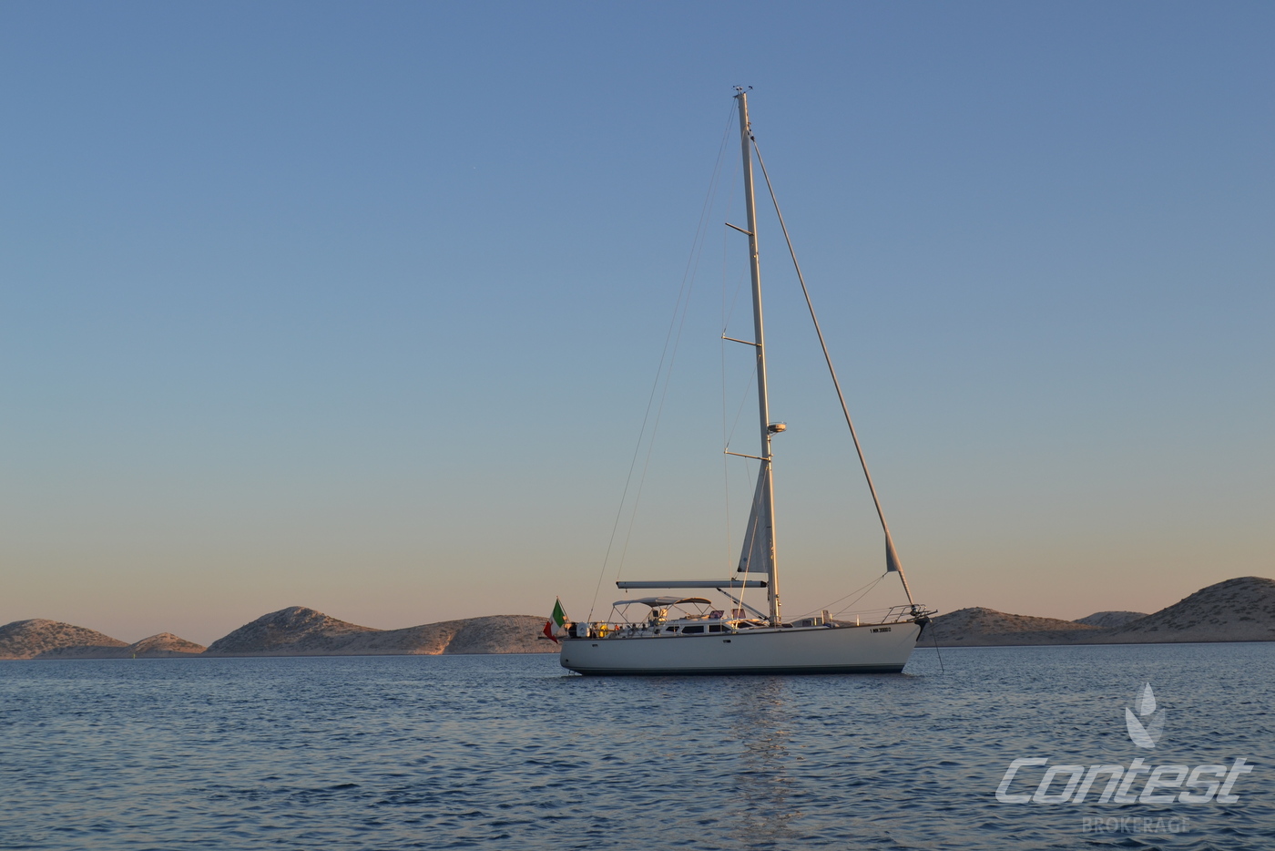 Designed by Georg Nissen her clean lines, simple rig with ample sail area and careful weight saving make the 50CS an extremely easy yacht for a couple to handle while guaranteeing high average speeds on long passages. Discover the Contest 50CS and you?ll be surprised by the beauty, sporty character and finesse of this true performance yacht. This 50CS has a white hull, which is a big advantage in the Med. She will give you all comfort on board due to her climate control, generator, etc. She has a relatively new mainsail (2022), a new genoa on its way, a code0, 5 electric winches, a hydraulic gangway and much more.