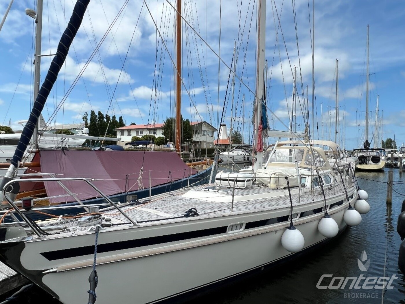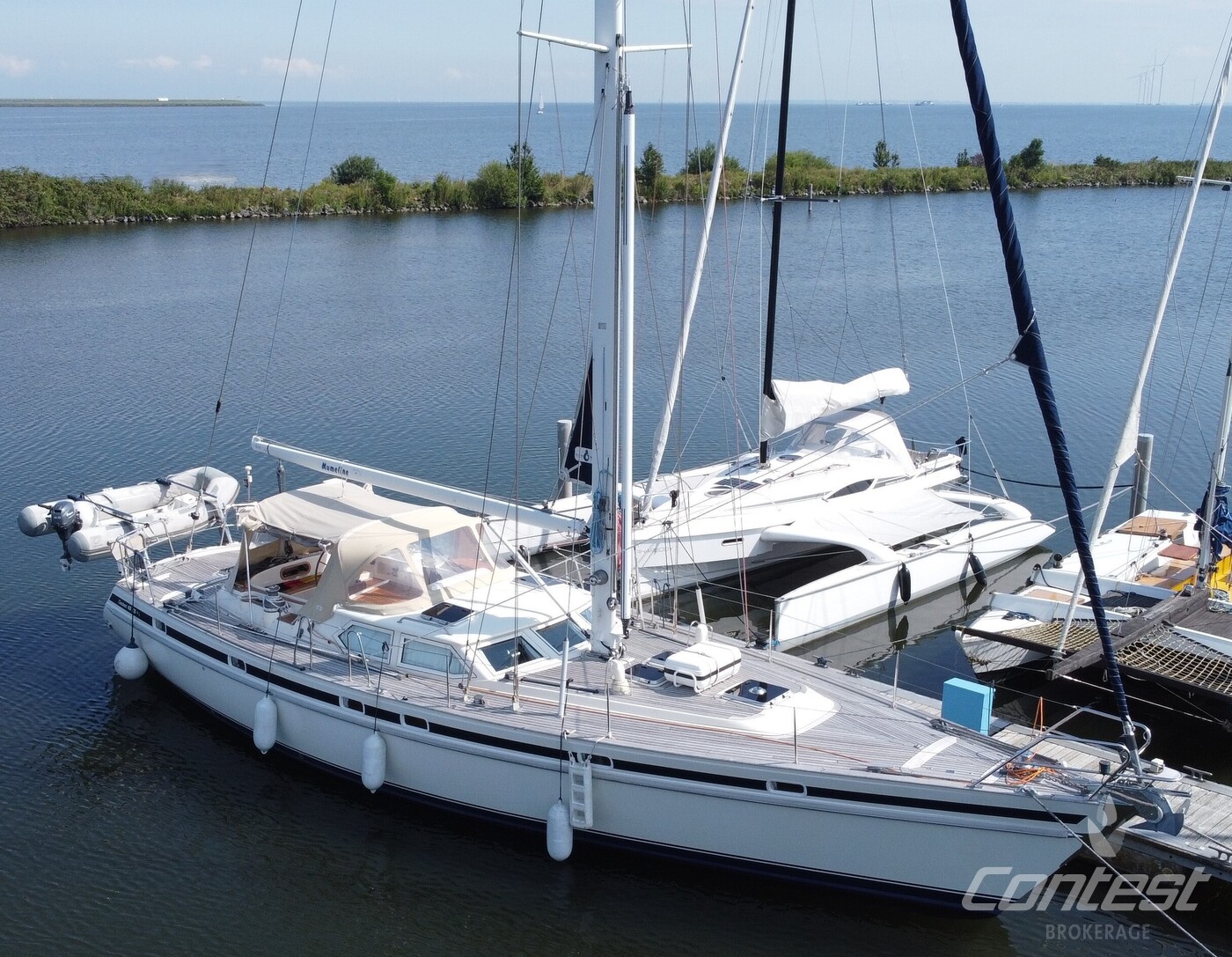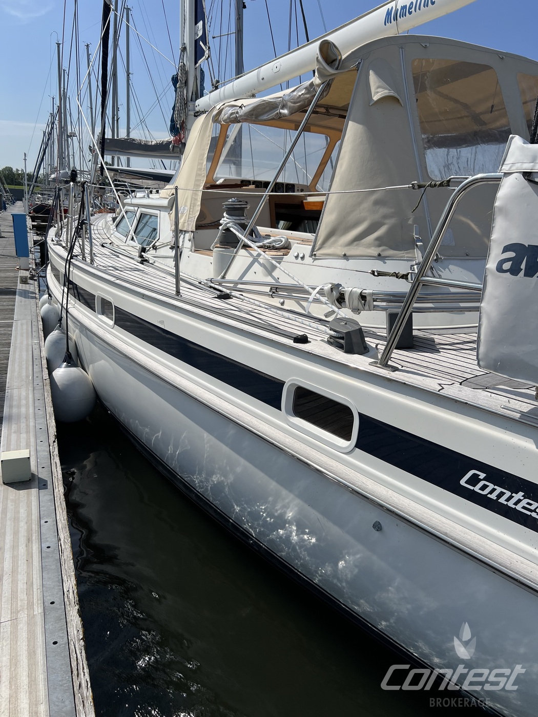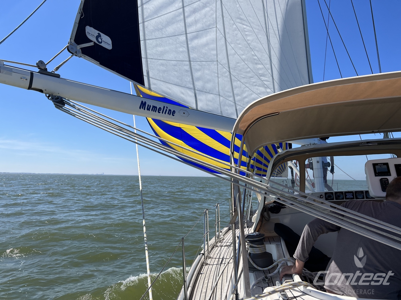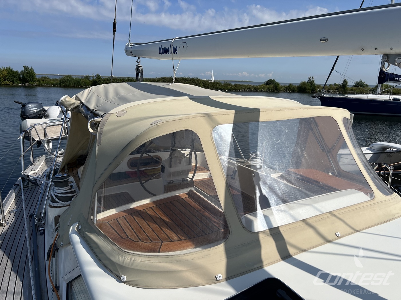 hydraulic furling sails (which includes the outhaul), generator, airconditioning, davits and much more. If you are looking for a yacht with "blue water" capacities, that can sail up to six in great comfort and which is well taken care of, "Mumeline" could be her! Please note that this brochure is preliminary. Feel invited to contact Contest Brokerage for additional information or to arrange a viewing!