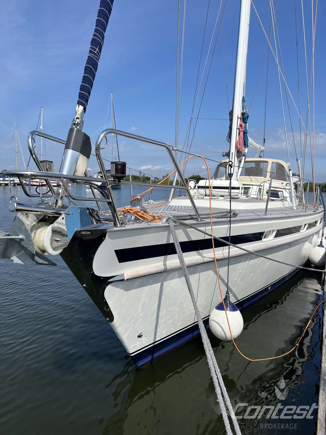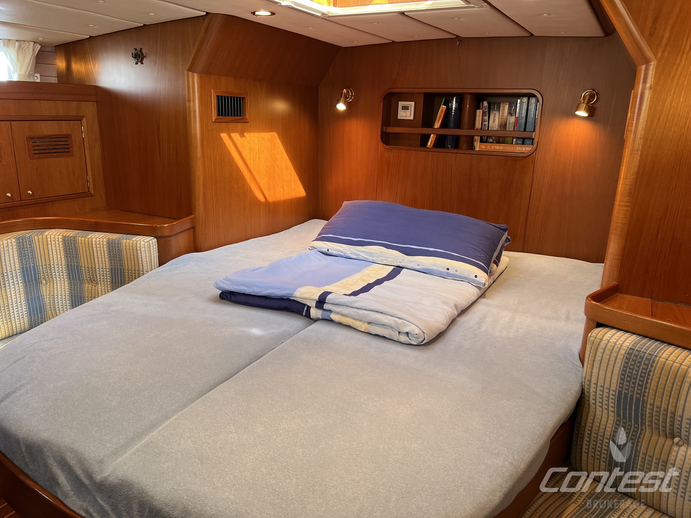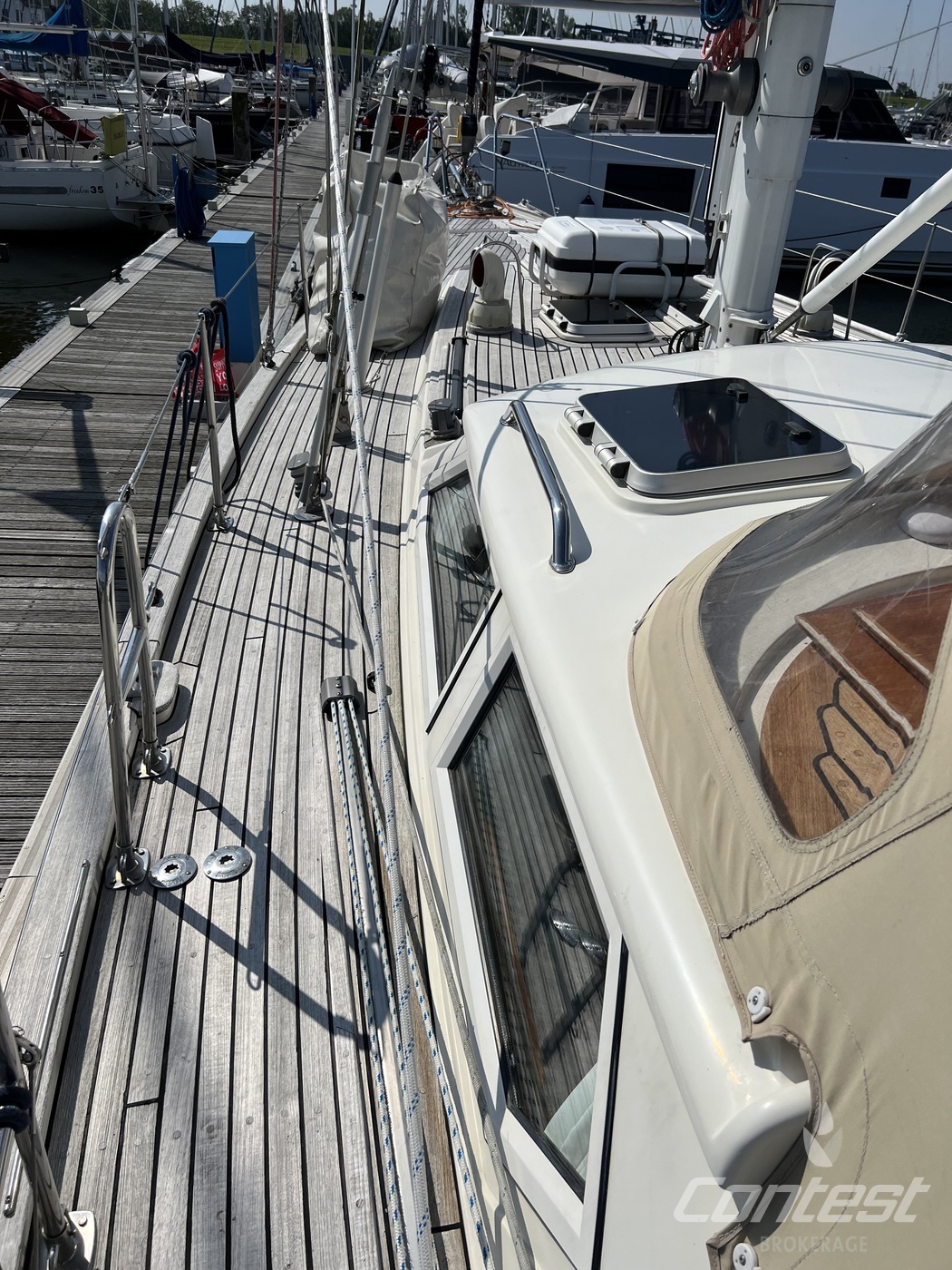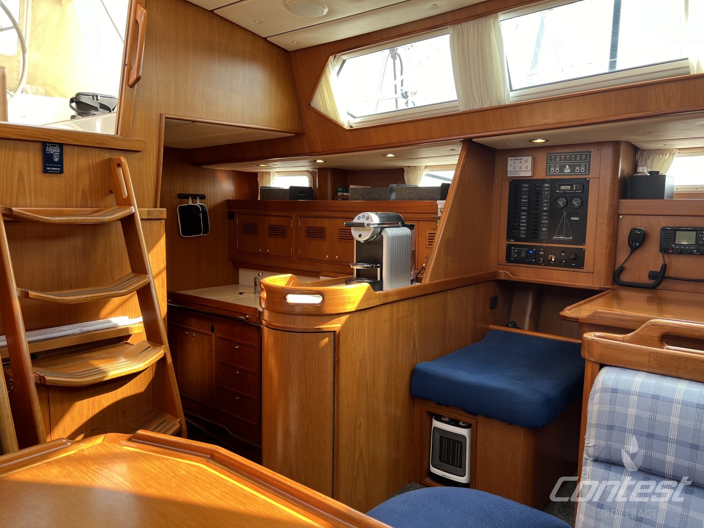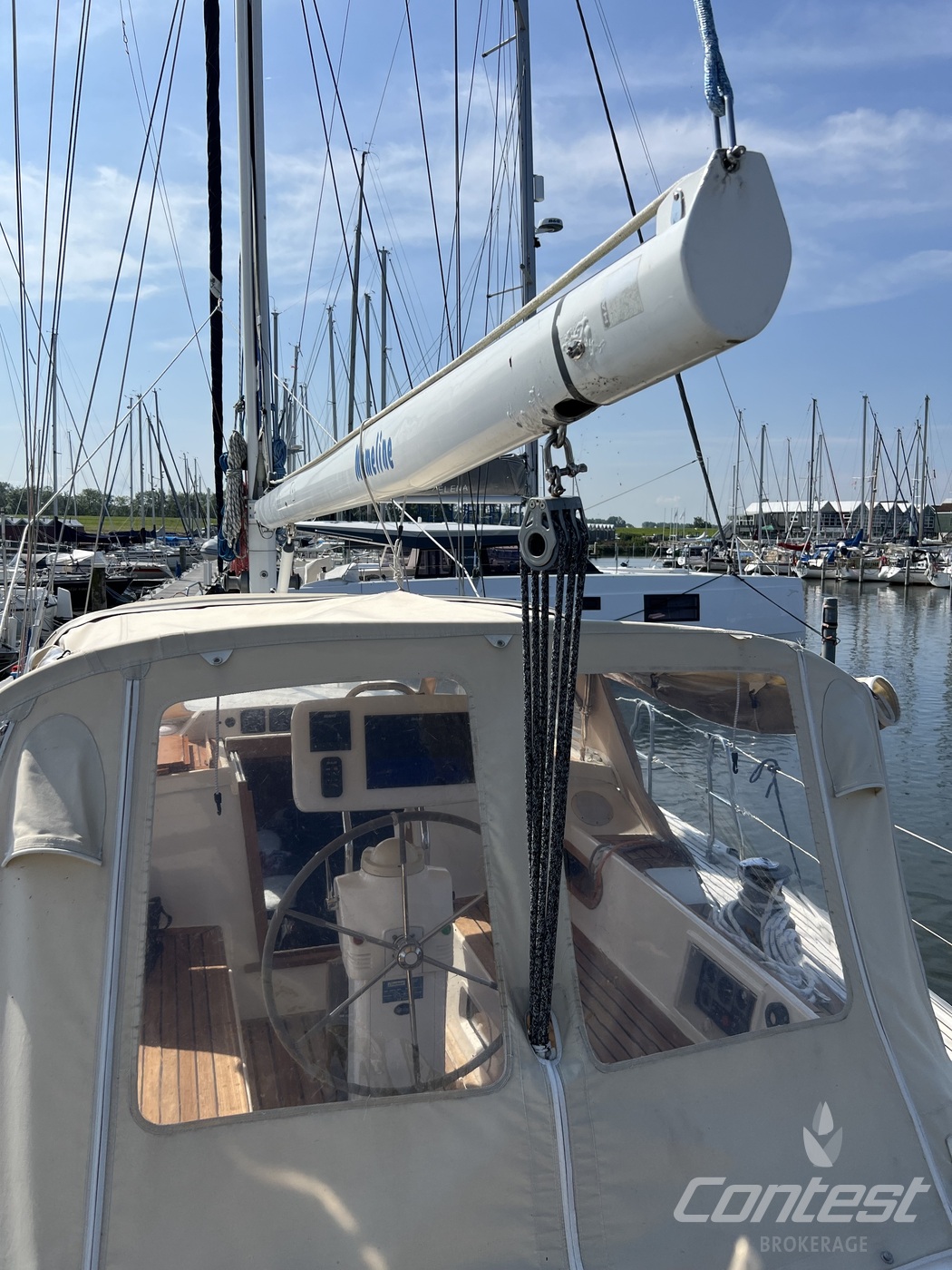 hydraulic furling sails (which includes the outhaul), generator, airconditioning, davits and much more. If you are looking for a yacht with "blue water" capacities, that can sail up to six in great comfort and which is well taken care of, "Mumeline" could be her! Please note that this brochure is preliminary. Feel invited to contact Contest Brokerage for additional information or to arrange a viewing!