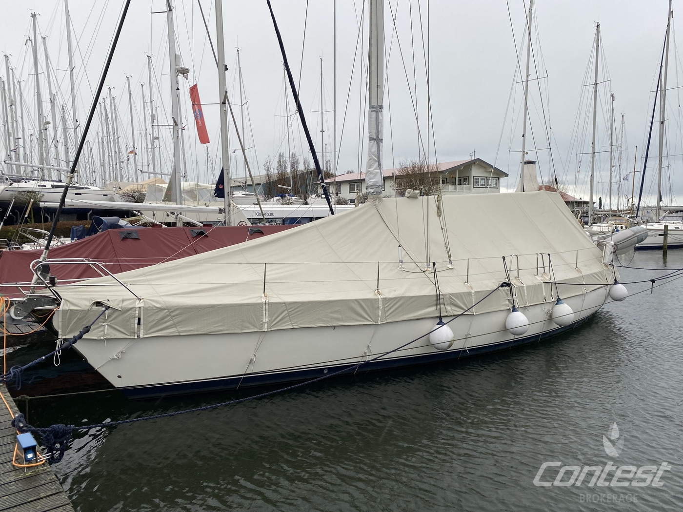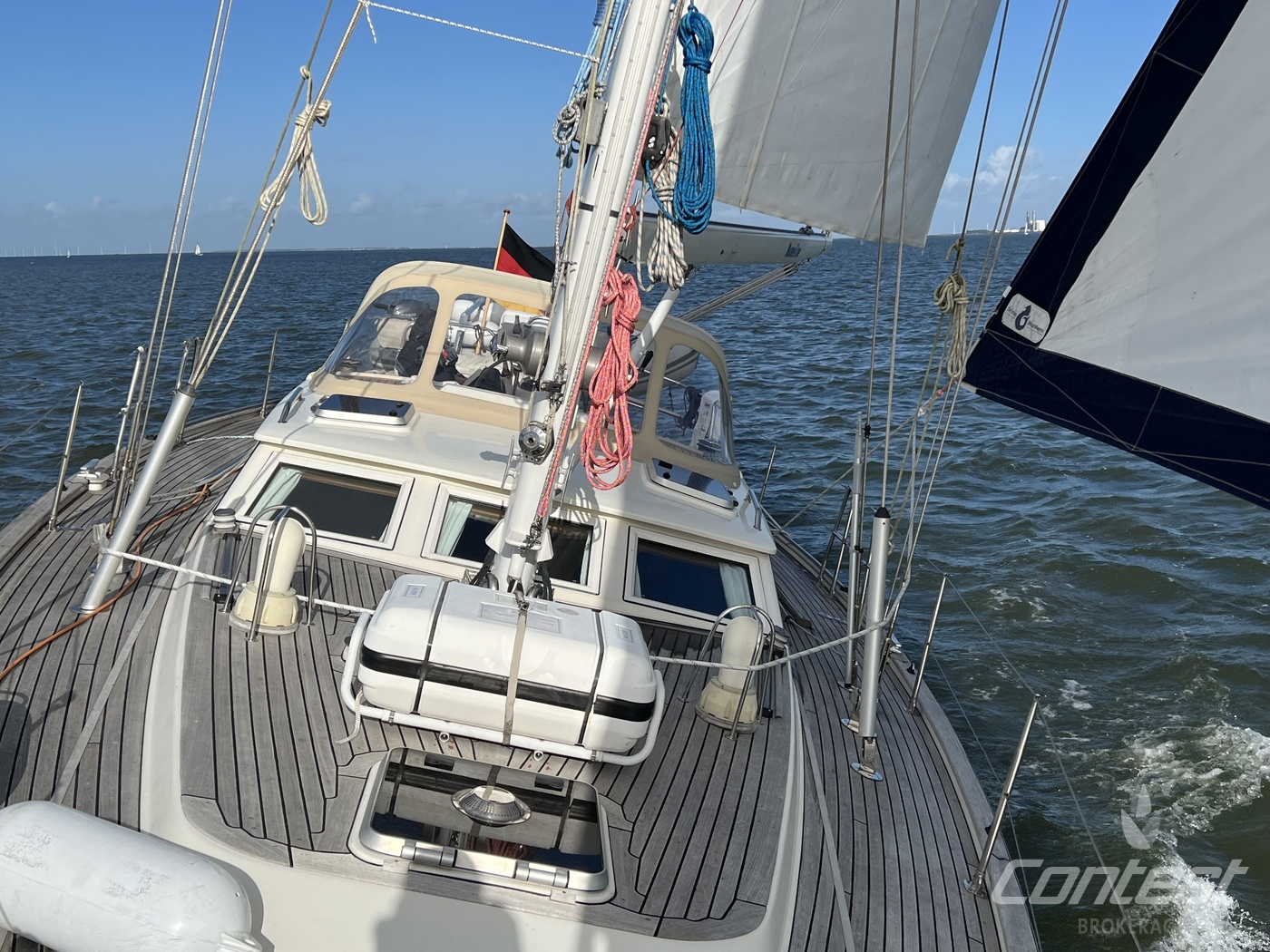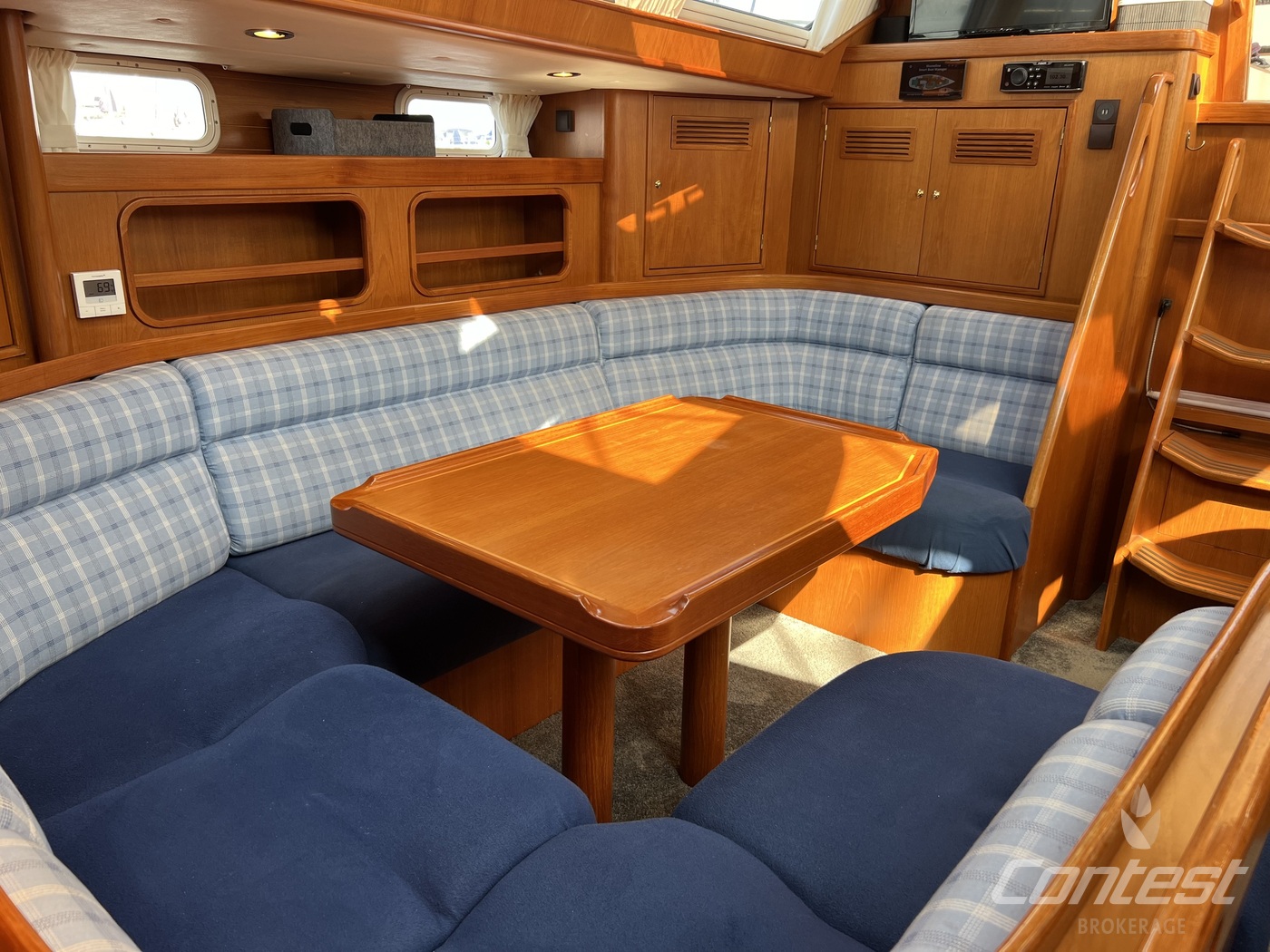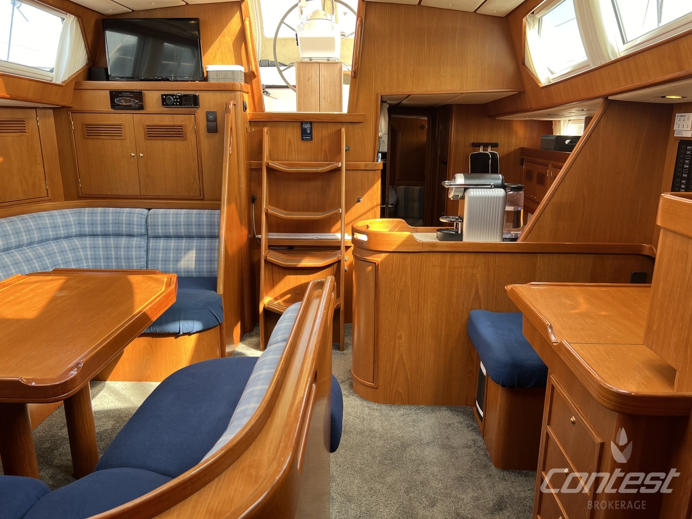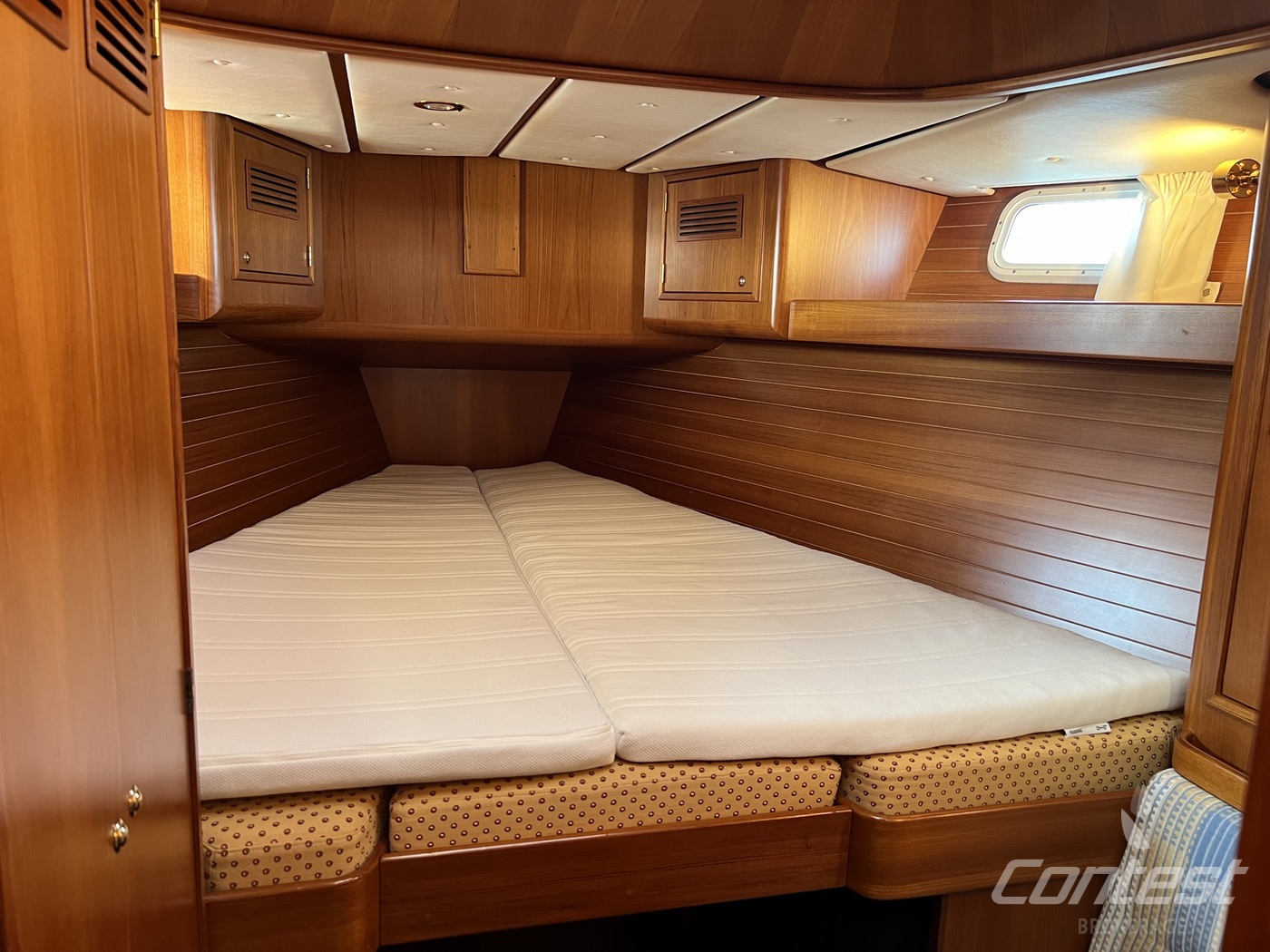 hydraulic furling sails (which includes the outhaul), generator, airconditioning, davits and much more. If you are looking for a yacht with "blue water" capacities, that can sail up to six in great comfort and which is well taken care of, "Mumeline" could be her! Please note that this brochure is preliminary. Feel invited to contact Contest Brokerage for additional information or to arrange a viewing!
